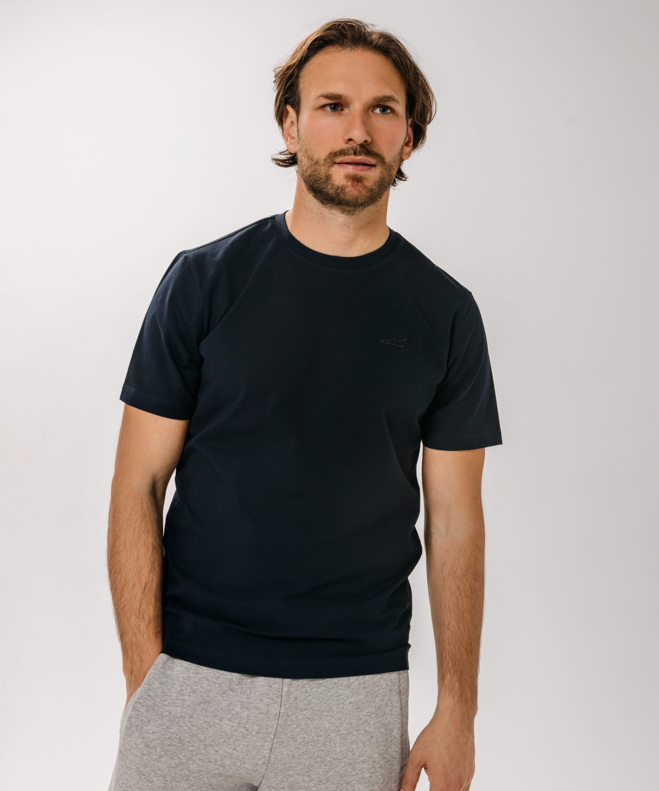 Мужская футболка классического силуэта Regular. Выполнена из материала, в составе которого 90% хлопка и 10% эластана, за счет чего футболка лучше держит форму. На груди расположена стильная вышивка-логотип. Модель представлена в 3 цветах - базовый белый, темно-синий и серый меланж. Легко сочетается как со спортивной так и с повседневной одеждой как база для ваших образов.