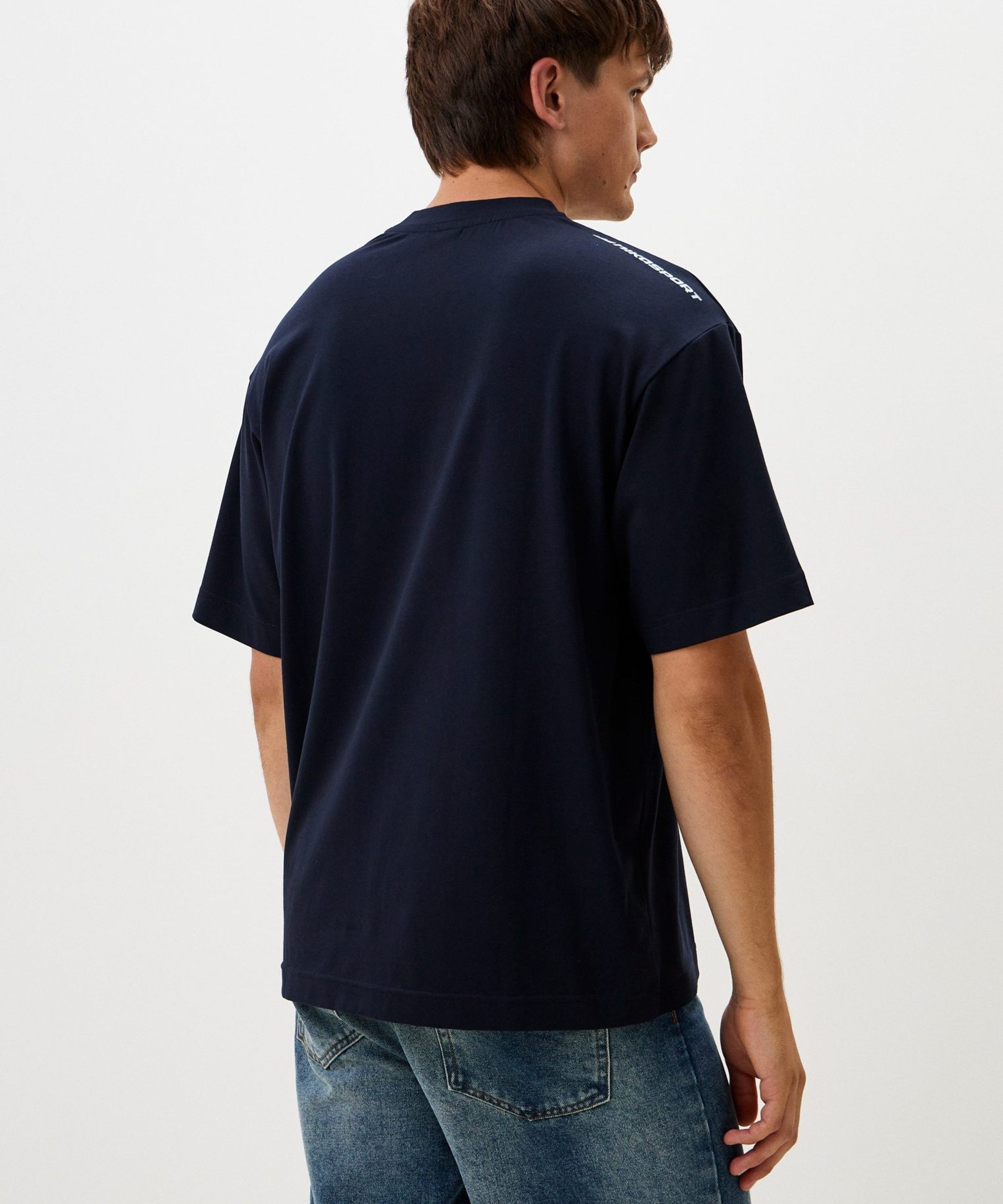 Мужская футболка oversize силуэта. Сделана из плотного хлопка, который держит форму и обеспечивает отличную посадку. У футболки прямой крой, спущенная линия плеча, широкие рукава и тональный логотип-вышивка на передней части изделия слева. Базовая вещь, которая дополнит ваш гардероб и будет прекрасно сочетаться как со спортивной одеждой, так и с классикой, джинсами и другими предметами гардероба.