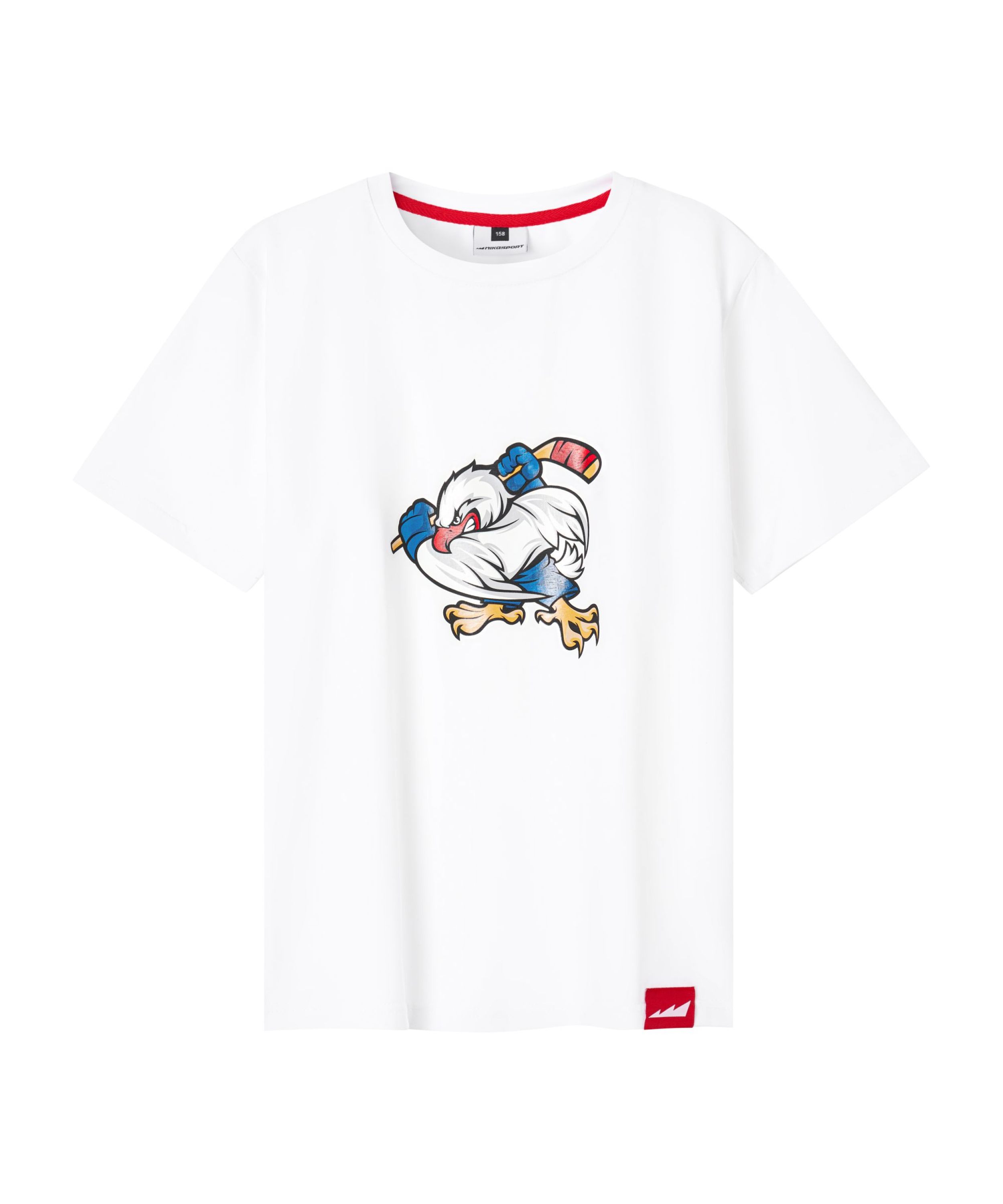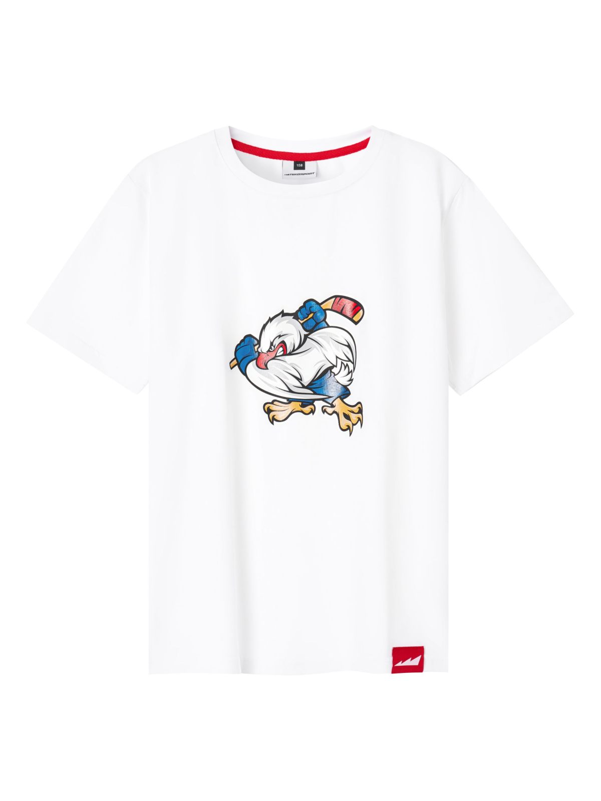 Детская футболка прямого силуэта Regular лимитированной коллекции "Крылья Советов". Выполнена из материала, в составе которого 90% хлопка и 10% эластана, за счет чего футболка лучше держит форму. На груди расположен стильный принт - эмблема легендарного хоккейного клуба. Модель представлена в 2 базовых цветах - белый и синий. Качество и стиль для настоящих фанатов!