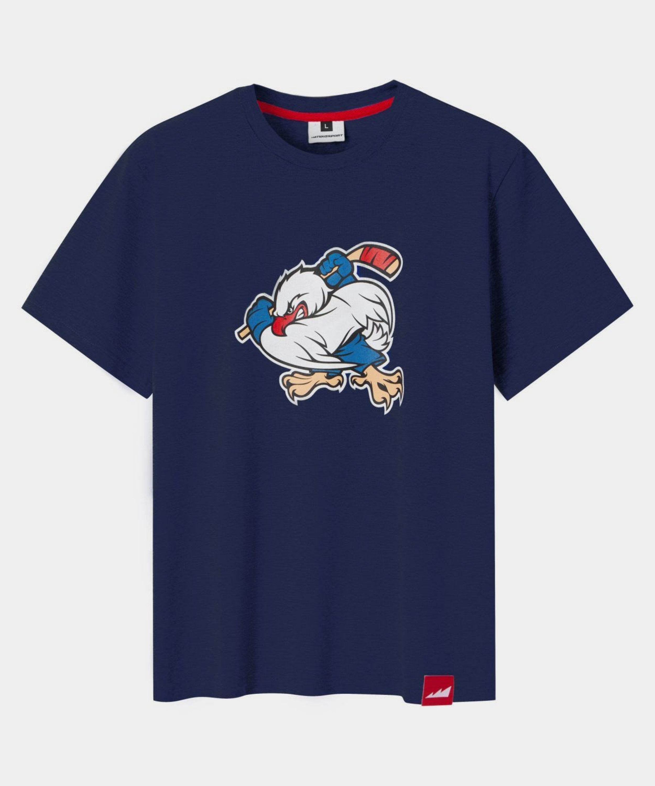 Мужская футболка классического силуэта Regular лимитированной коллекции "Крылья Советов". Выполнена из материала, в составе которого 95% хлопка и 5% эластана, за счет чего футболка лучше держит форму. На груди расположен стильный принт-эмблема легендарного хоккейного клуба. Модель представлена в 3 базовых цветах - белый, серый и темно-синий. Качество и стиль для настоящих фанатов!