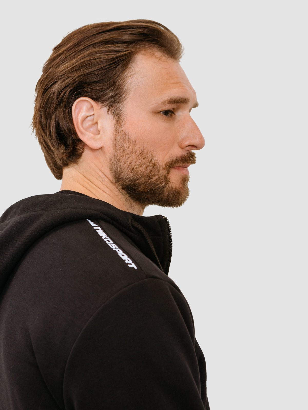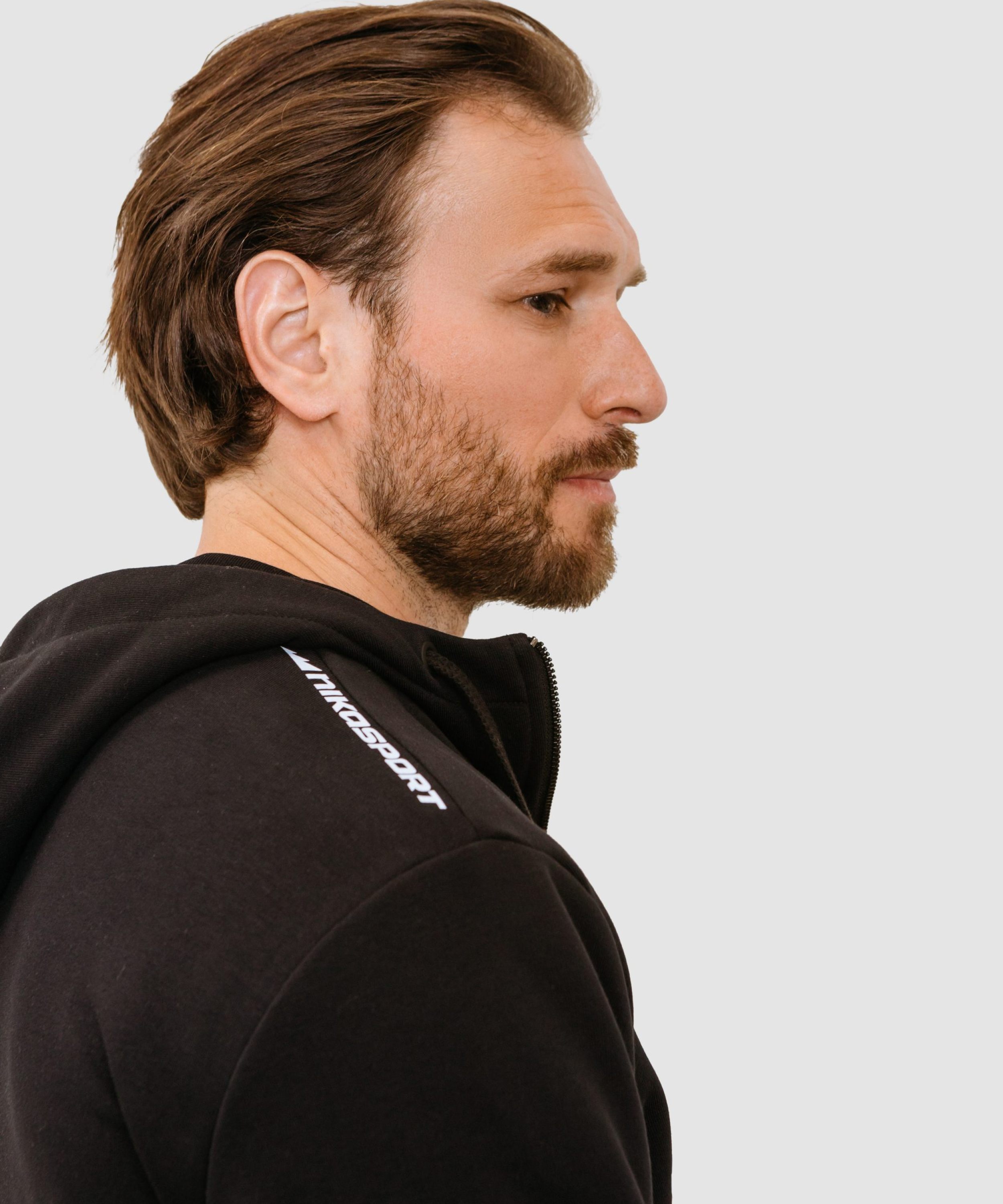 Мужское худи прямого кроя выполнен из материала, в составе которого 80% хлопка и 20% полиэстера, что обеспечивает отличную посадку и долговечность изделия. На груди и на плече расположен принт с логотипом бренда. Вместительные карманы в боковых швах для хранения личных вещей. Представлен в классическом черном цвете. Прекрасное дополнение как к спортивному, так и к повседневному образу.