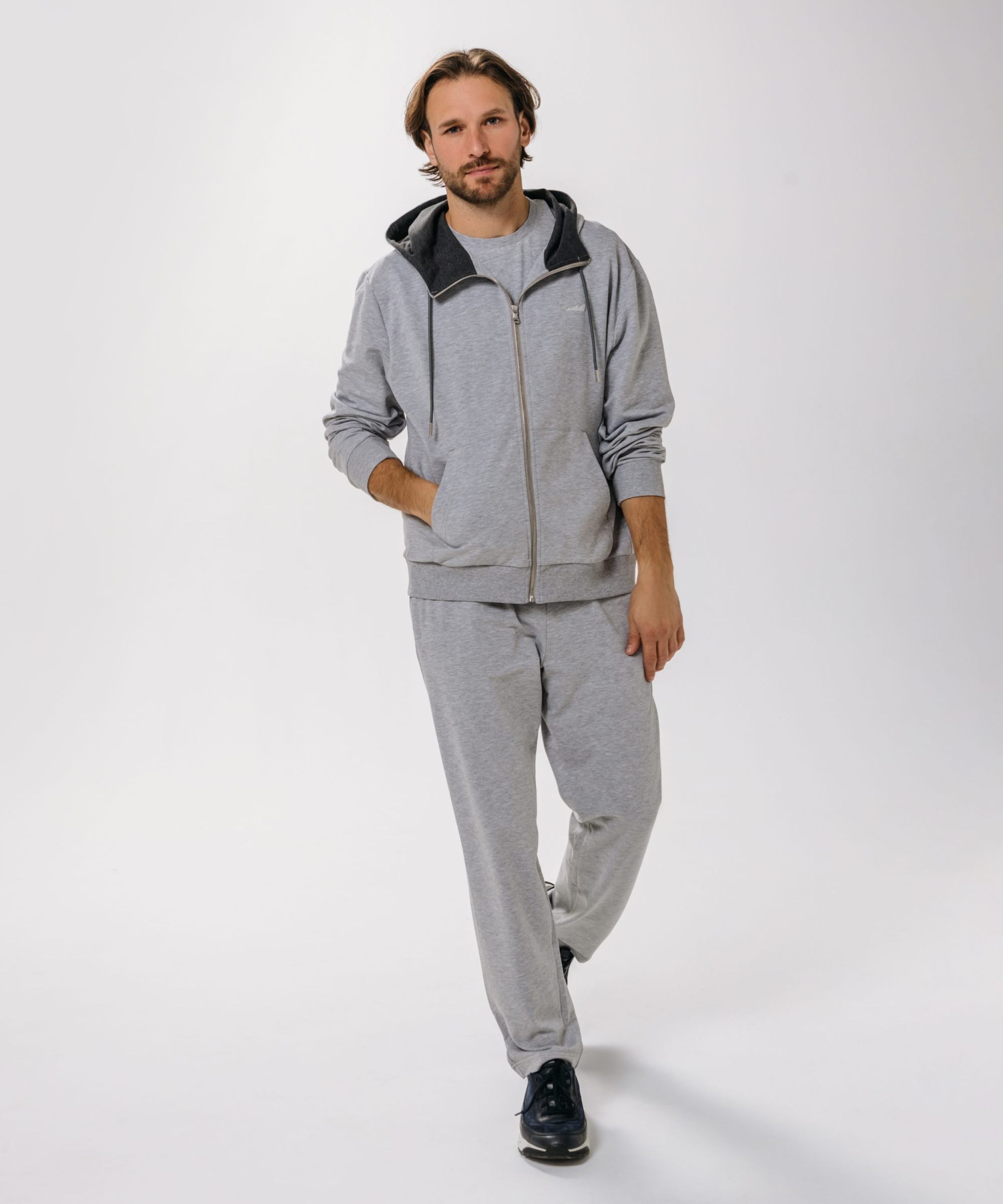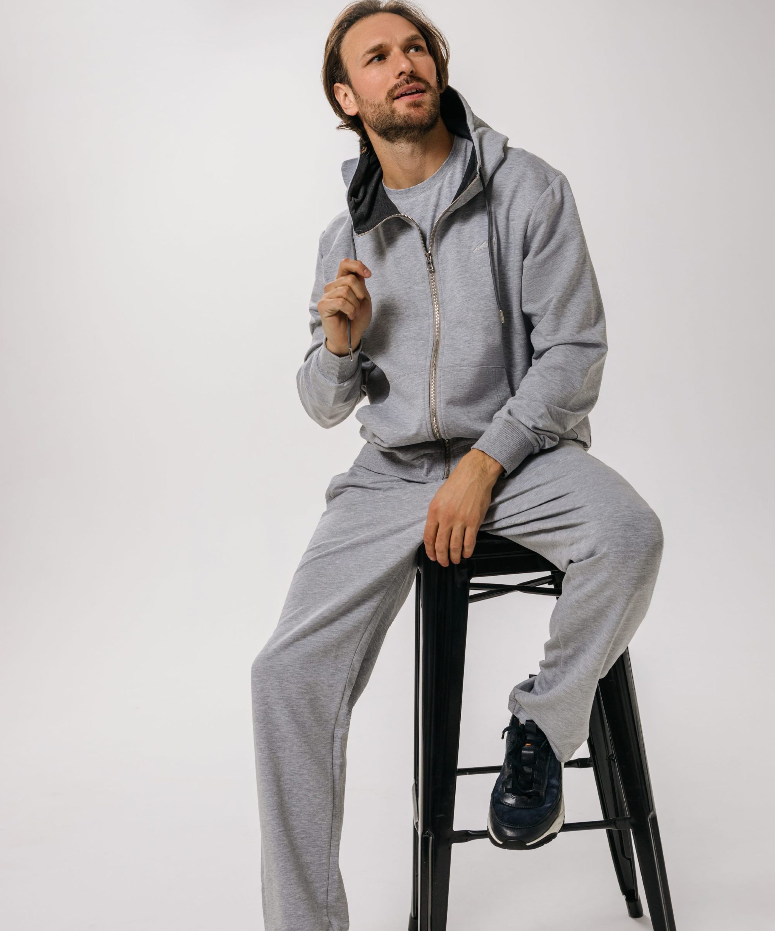 Мужские легкие классические брюки прямого силуэта. Выполнены из тонкой ткани, в составе которой 80% хлопка и 20% полиэстера, за счет чего изделие отлично держит форму. Брюки имеют два боковых кармана для хранения личных вещей. Представлены в универсальном цвете серый меланж. Эластичный шнур в поясе помогает регулировать посадку. Модель создана для занятий спортом или повседневных образов.