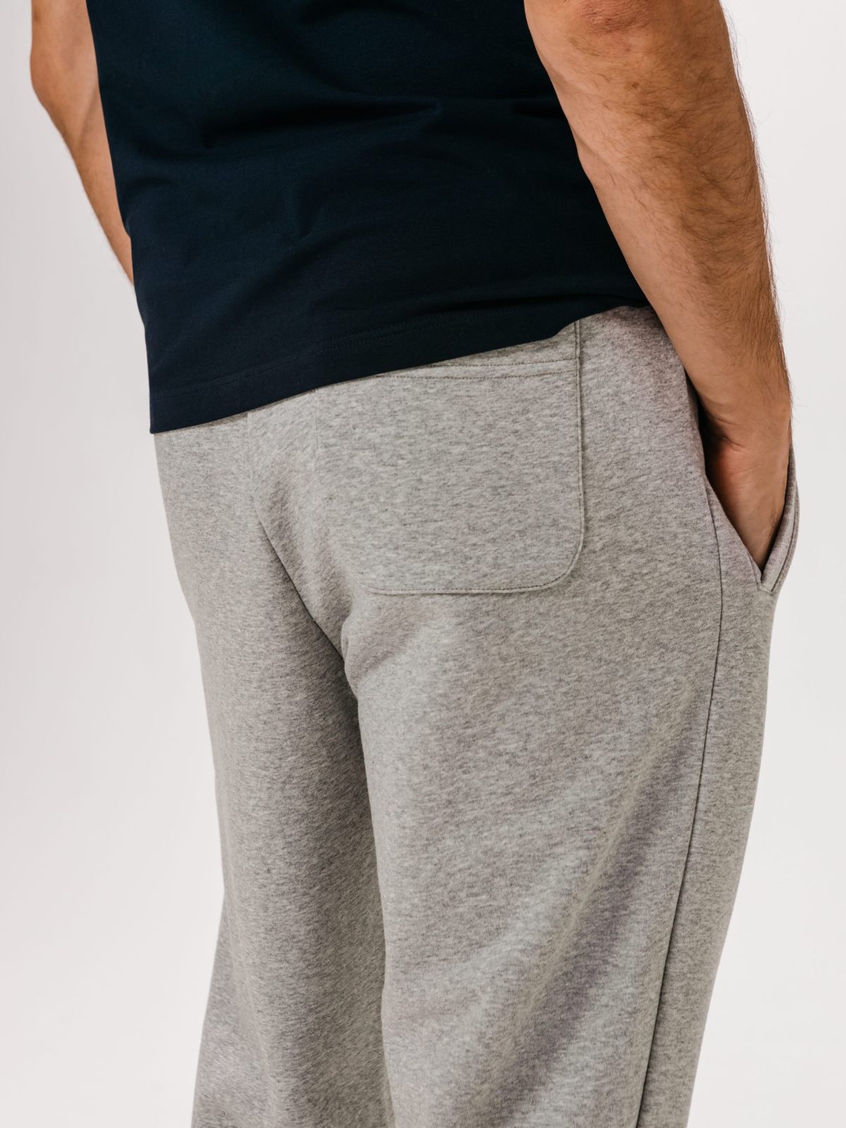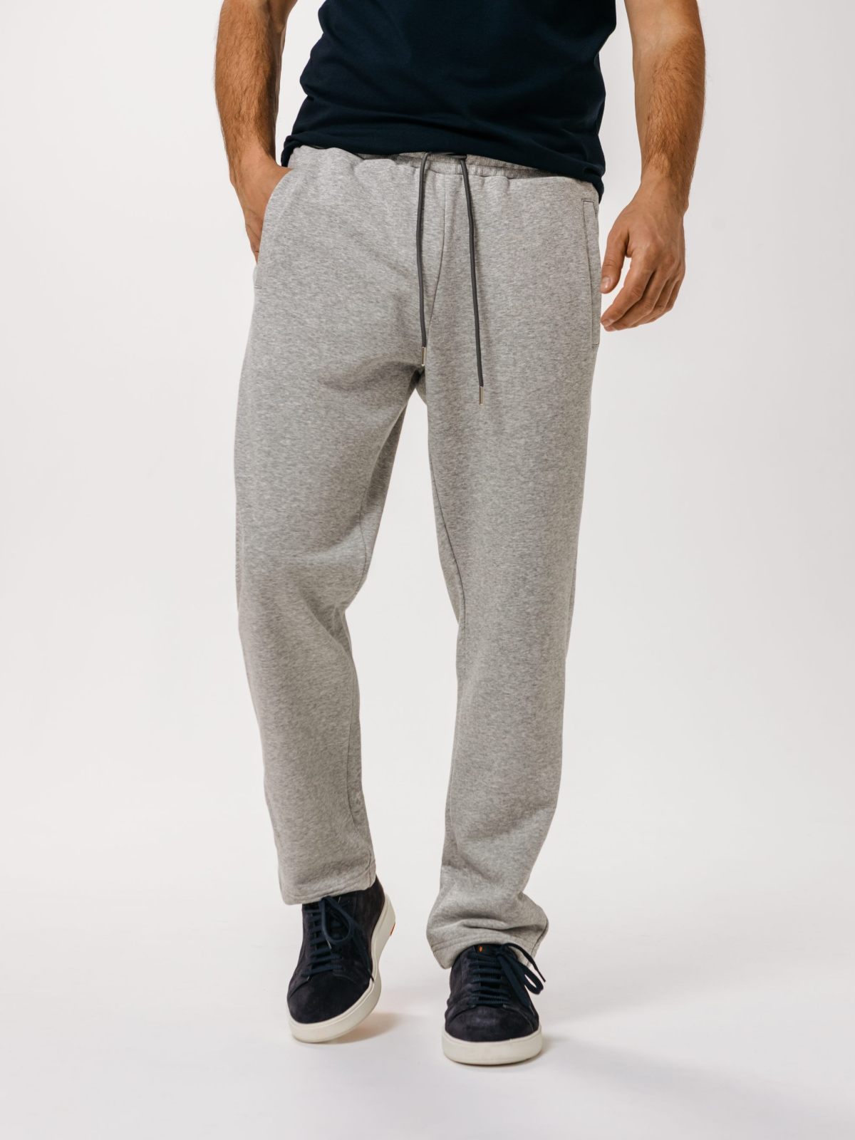 Мужские классические брюки прямого силуэта. Выполнены из материала, в составе которого 80% хлопка и 20% полиэстера, что обеспечивает отличную посадку и долговечность изделия. Брюки имеют задний и два боковых кармана для хранения личных вещей. Эластичный шнур в поясе помогает регулировать посадку. Представлены в универсальном цвете серый меланж. Модель создана для занятий спортом или повседневных образов.