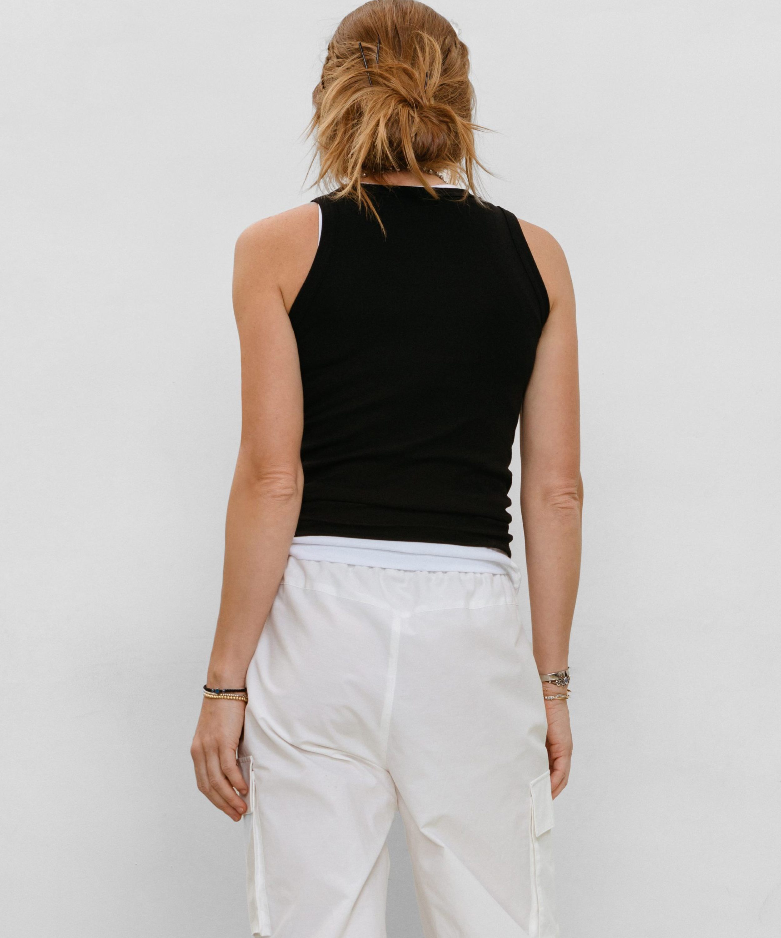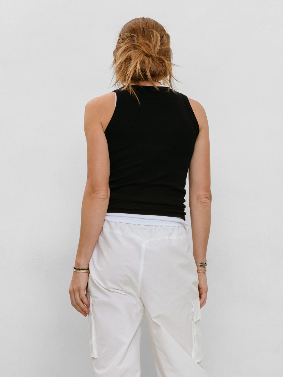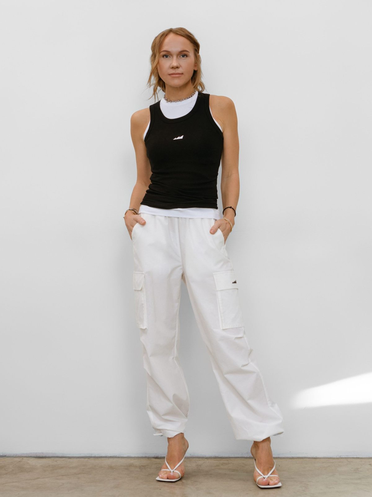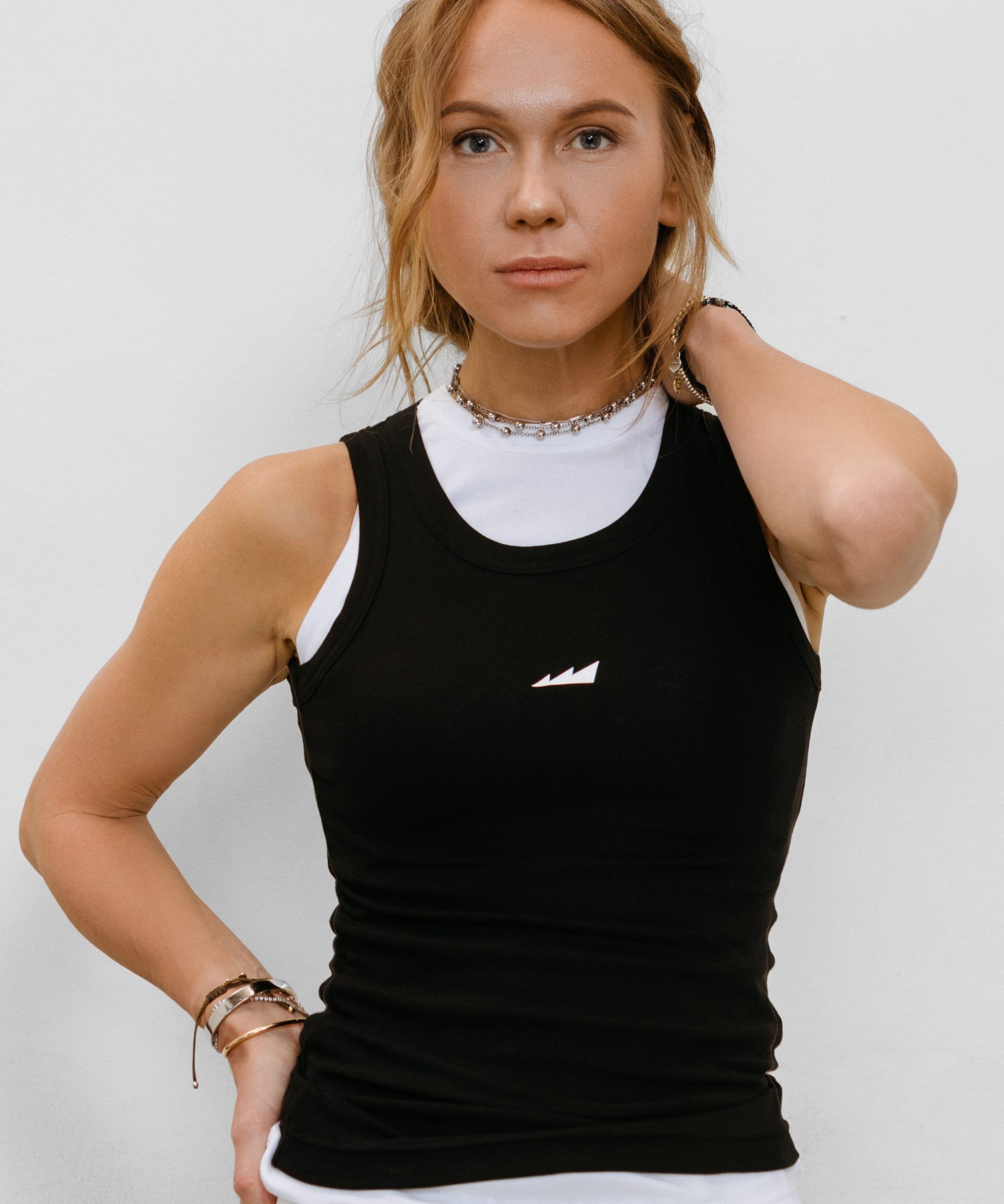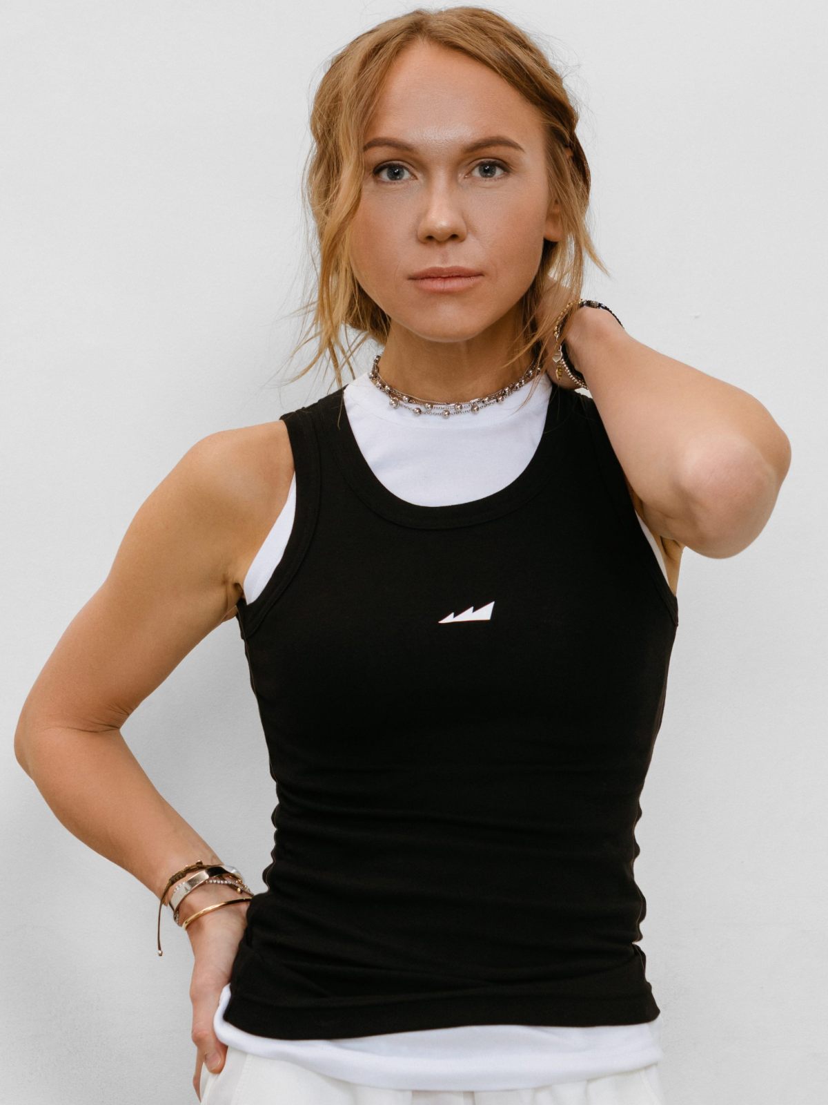 Классическая женская майка выполнена из материала, 95% хлопка и 5% эластана. Классическая длина, облегающий силуэт, контрастный принт-логотип на груди. Представлена в 2 классических цветах: белом и черном. Отличная базовая модель для занятий спортом или для повседневного гардероба.