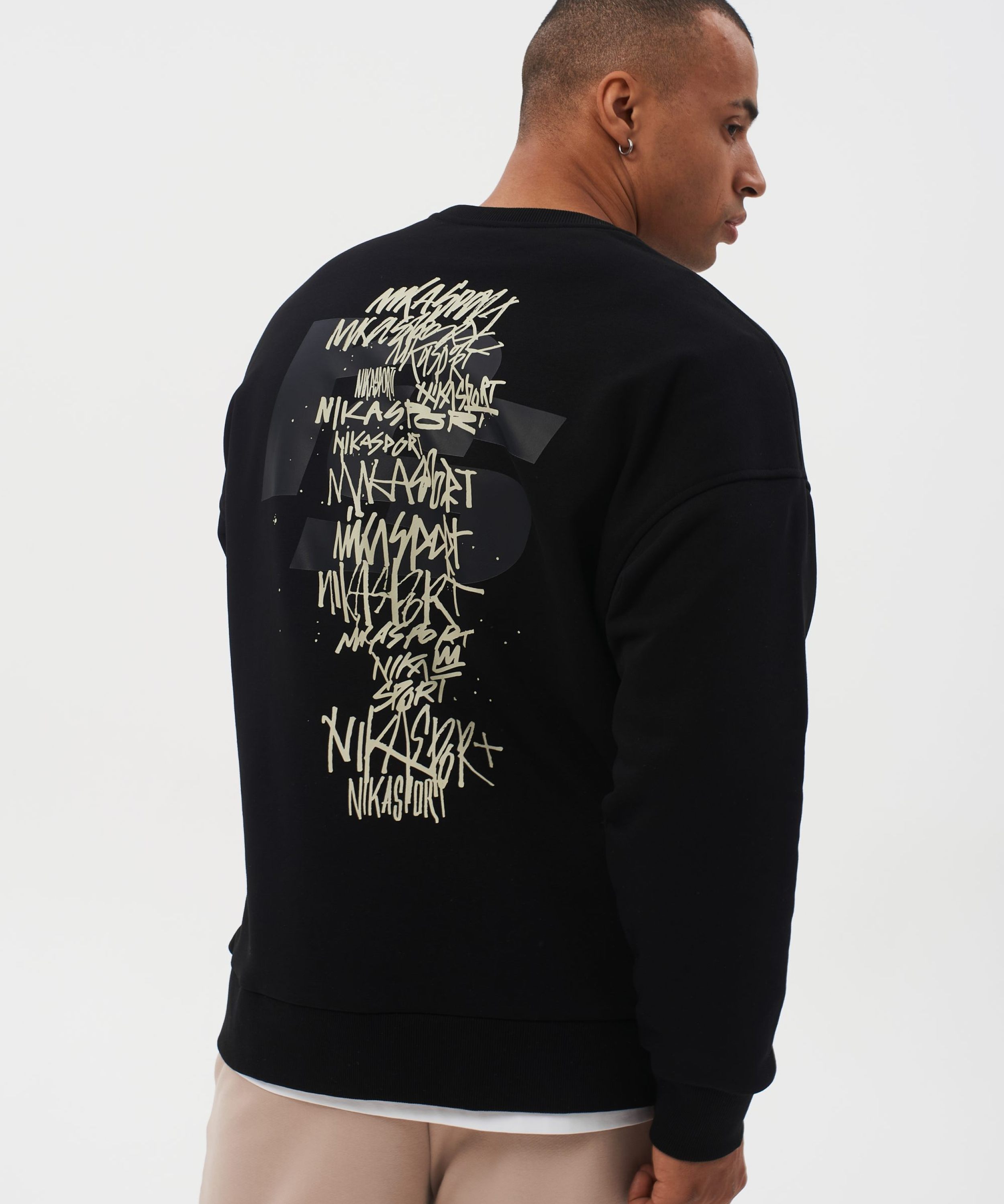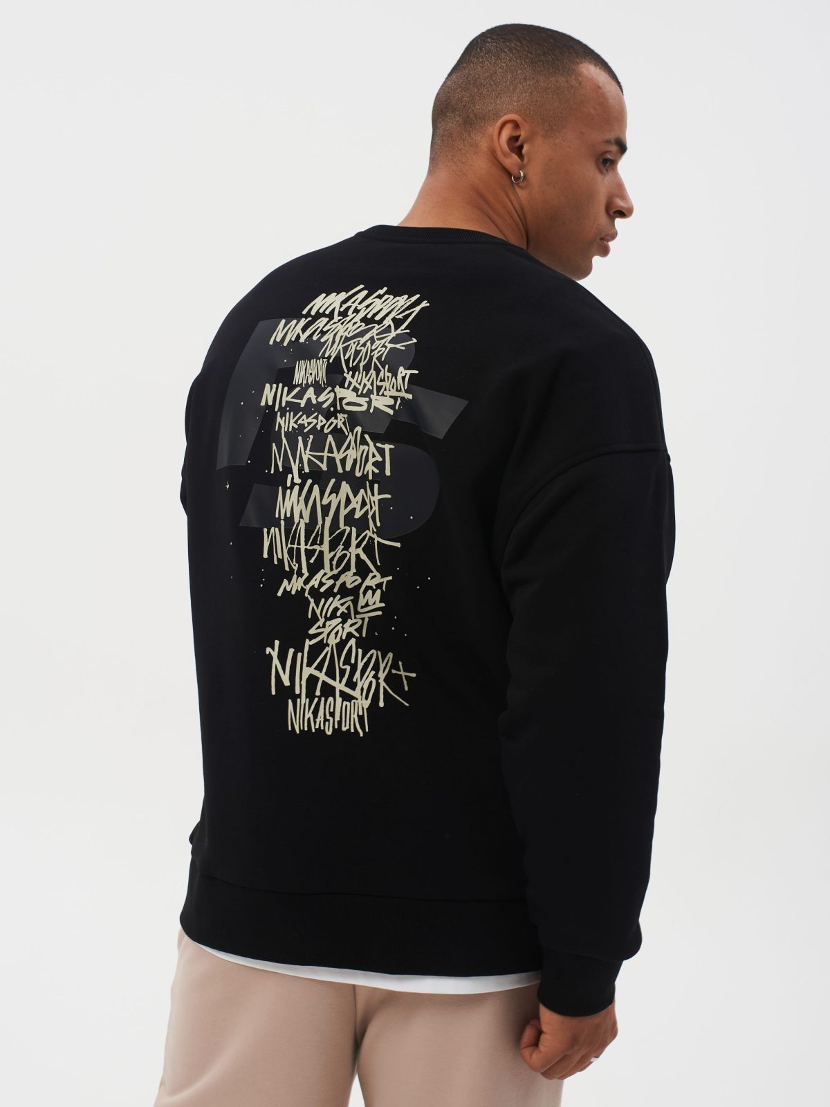 Мужской свитшот свободного силуэта. Выполнен из материала, в составе которого 90% хлопка и 10% полиэстера, что обеспечивает отличную посадку и долговечность изделия. Спущенная линия плеча и стильный графити-принт во всю спину делают свитшот заметным и молодежным. Представлен в классическом черном, а также в актуальных летних цветах - мята и ваниль. Прекрасное дополнение как к спортивному, так и к повседневному образу