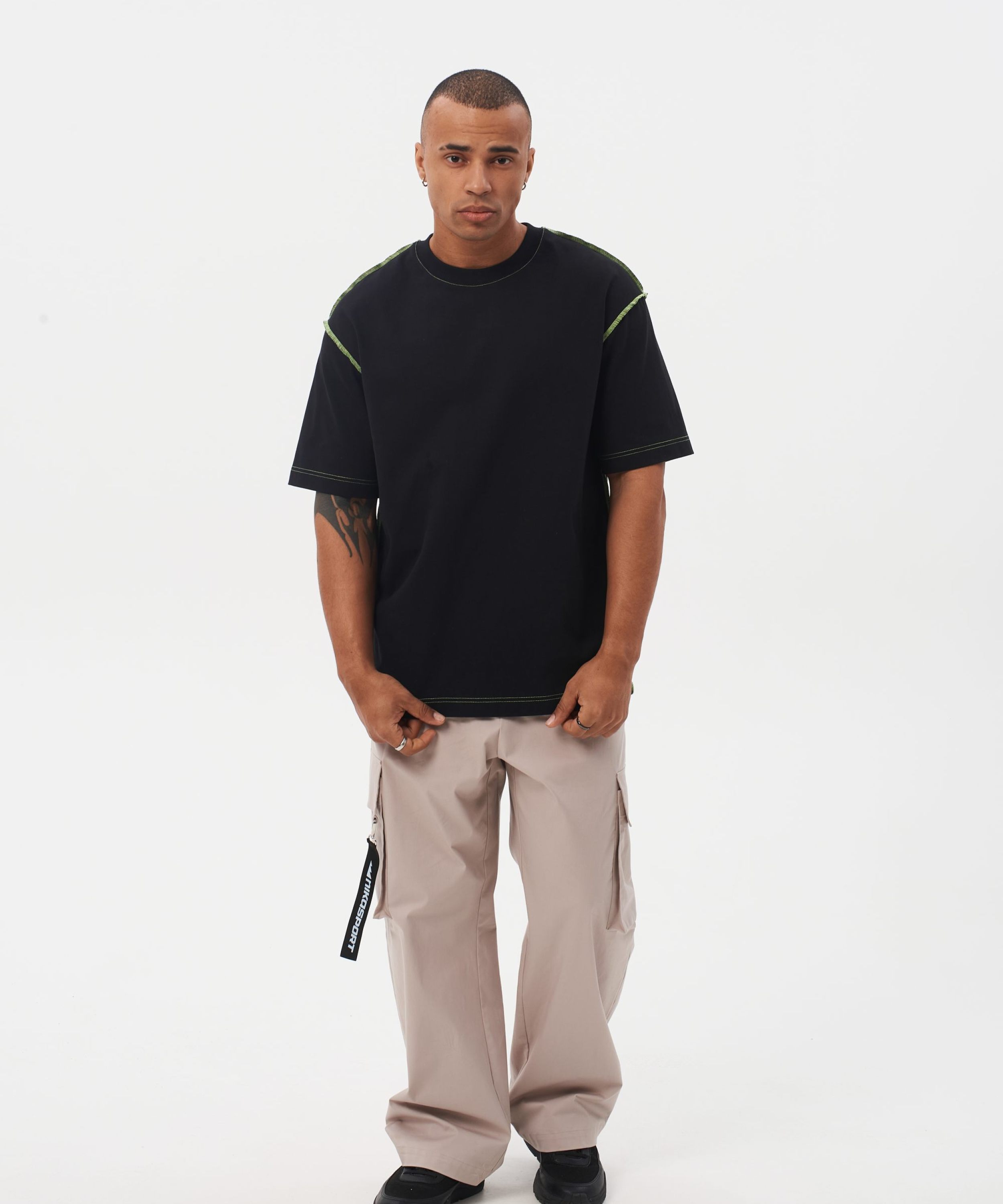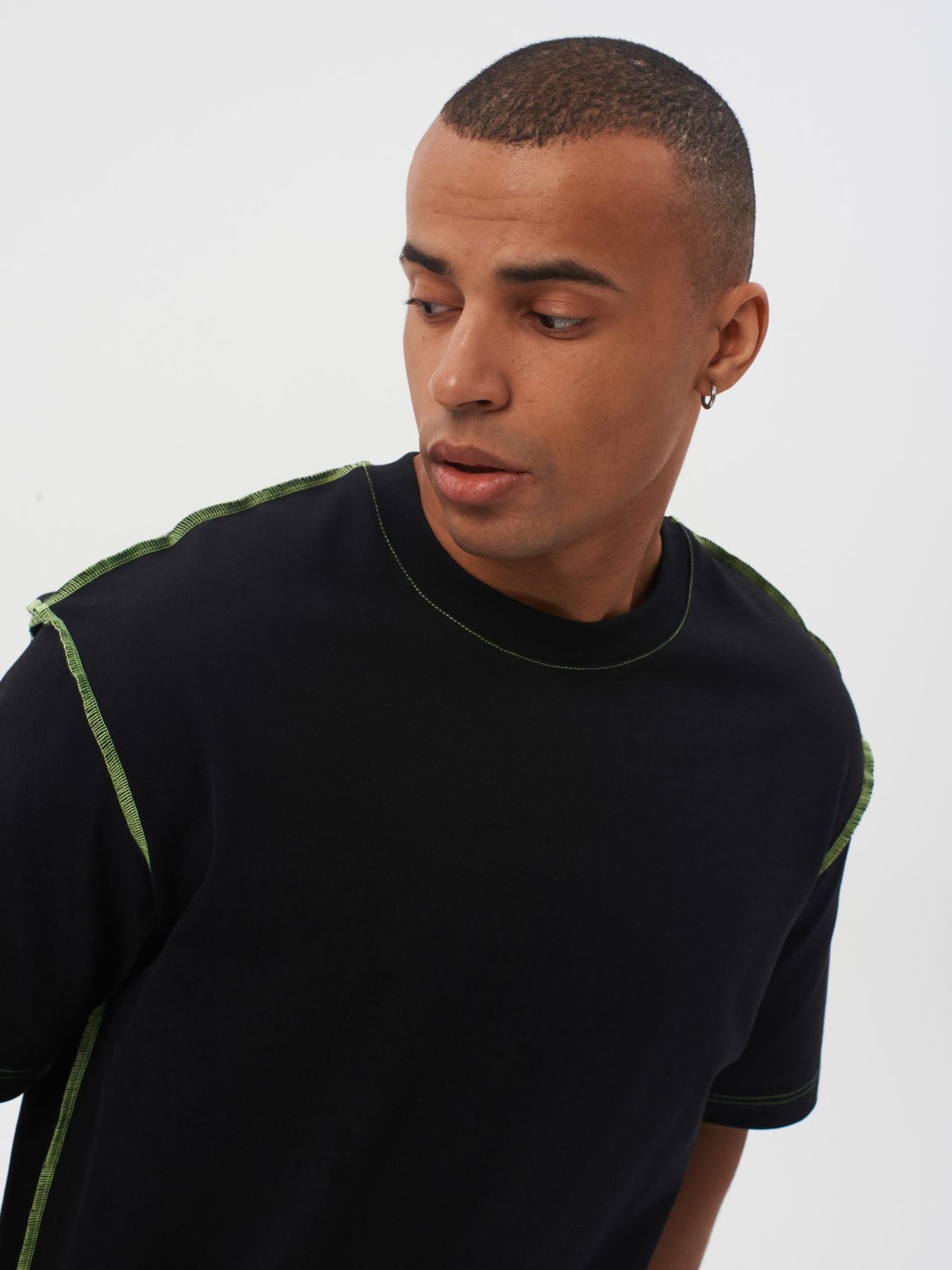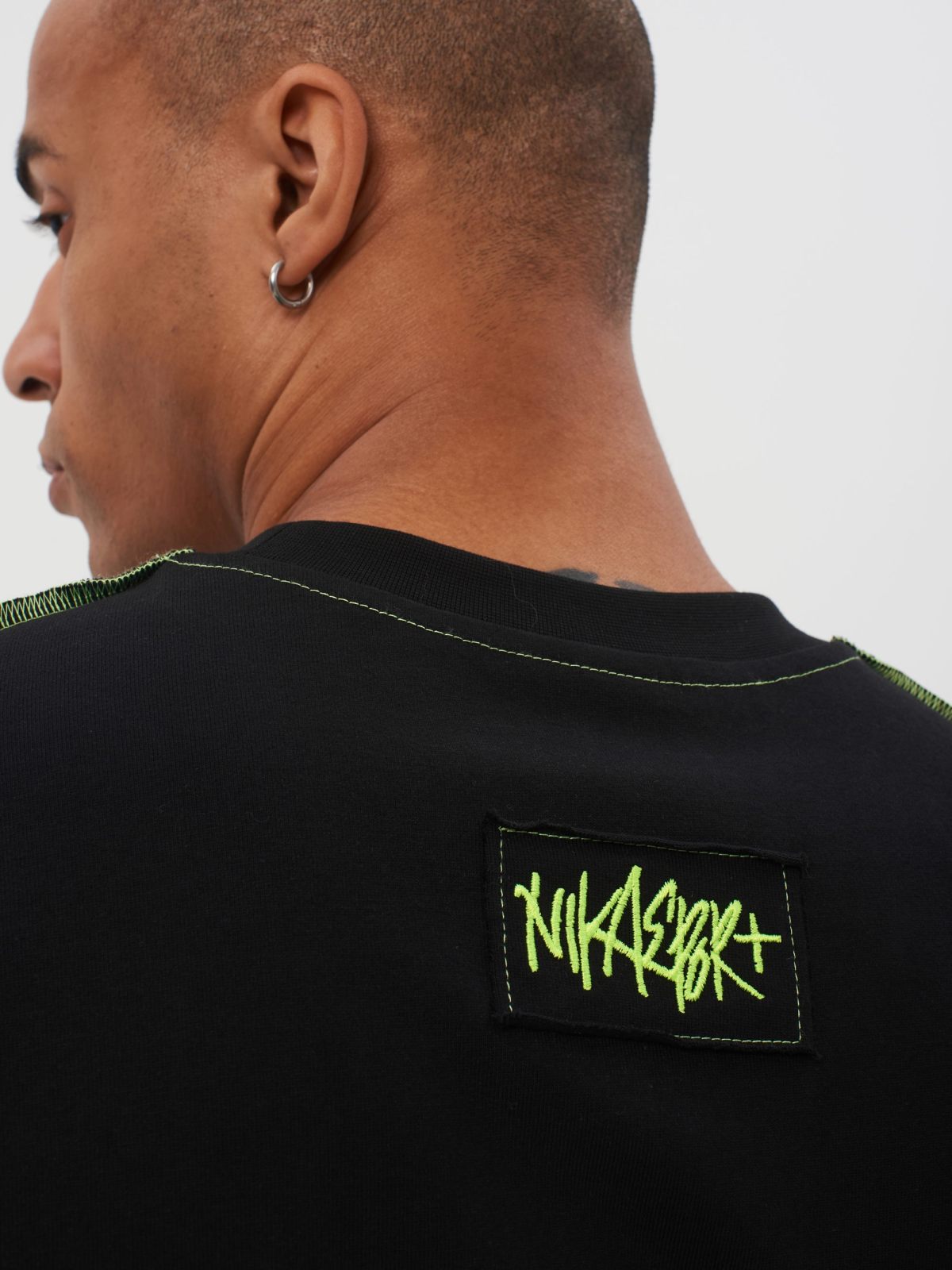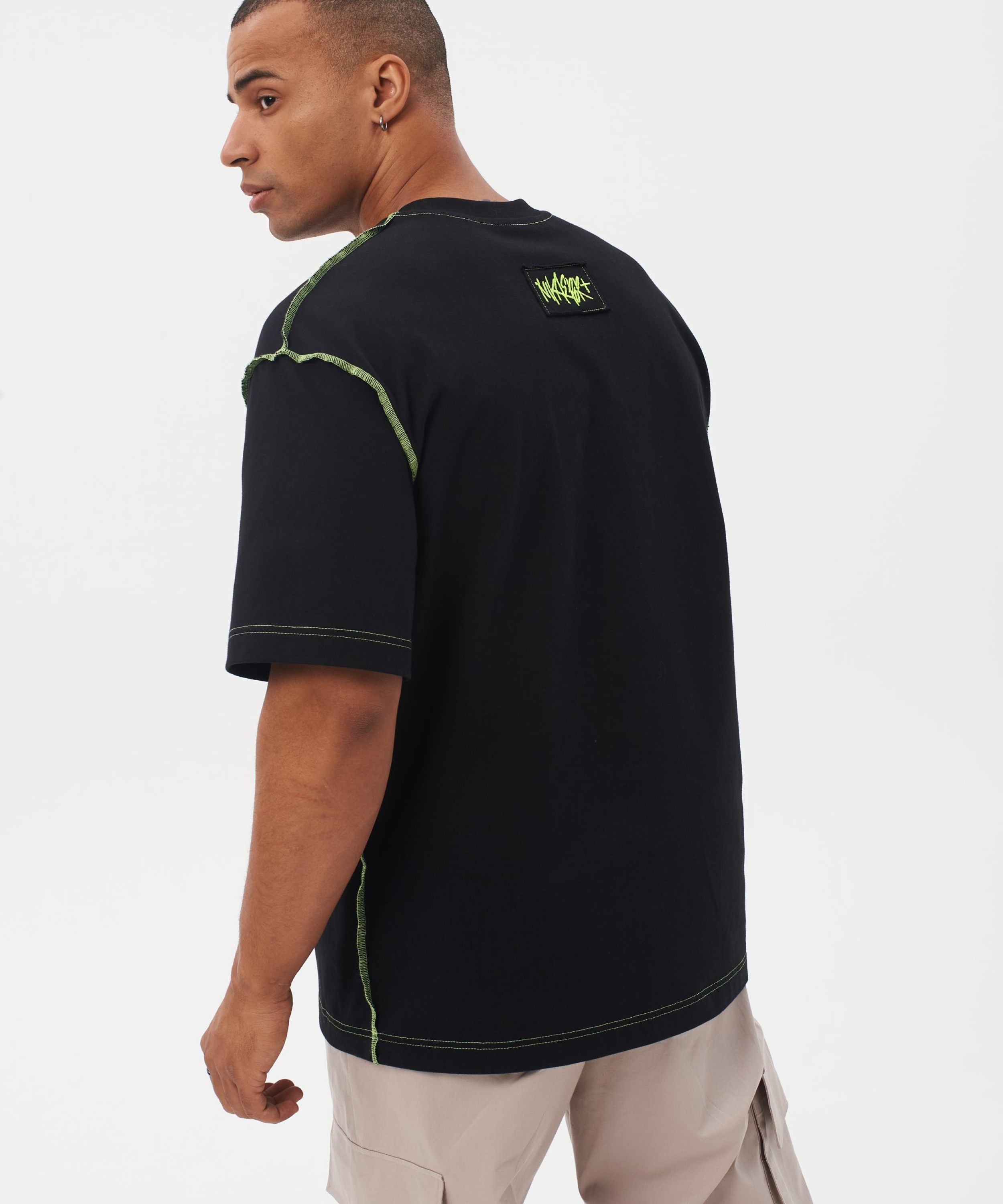 Футболка oversize силуэта. Сделана из 100% плотного хлопка - гипоаллергенного материала, отлично пропускающего воздух. Спущенная линия плеча, яркие контрастные швы и граффити-вышивка на спине создают дерзкий и молодежный образ. Прекрасный выбор как для спортивного, так и для повседневного стиля