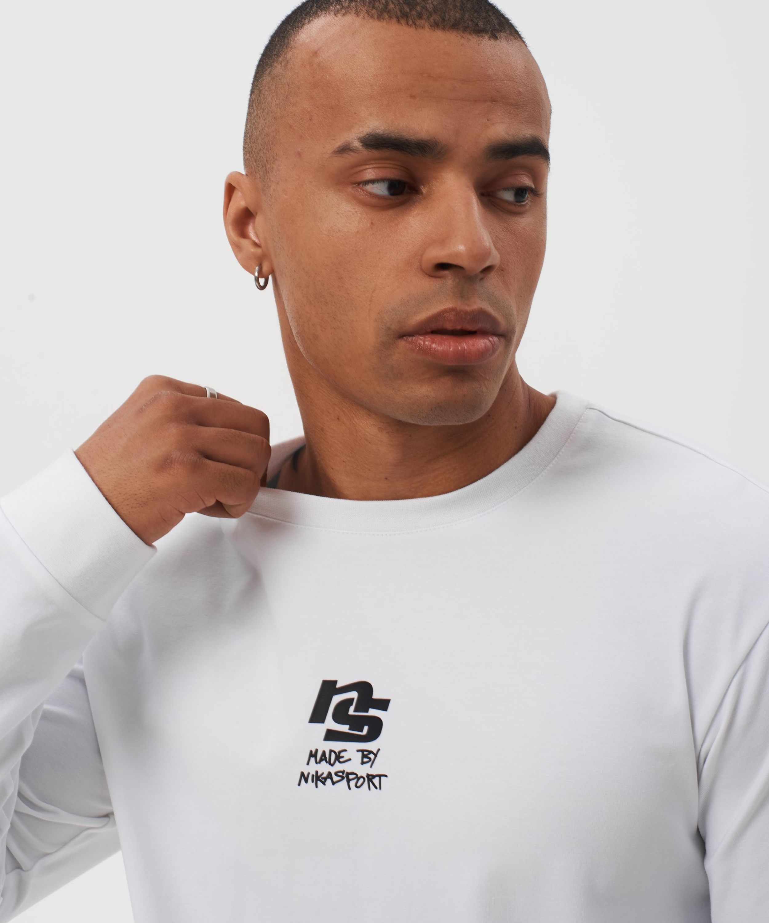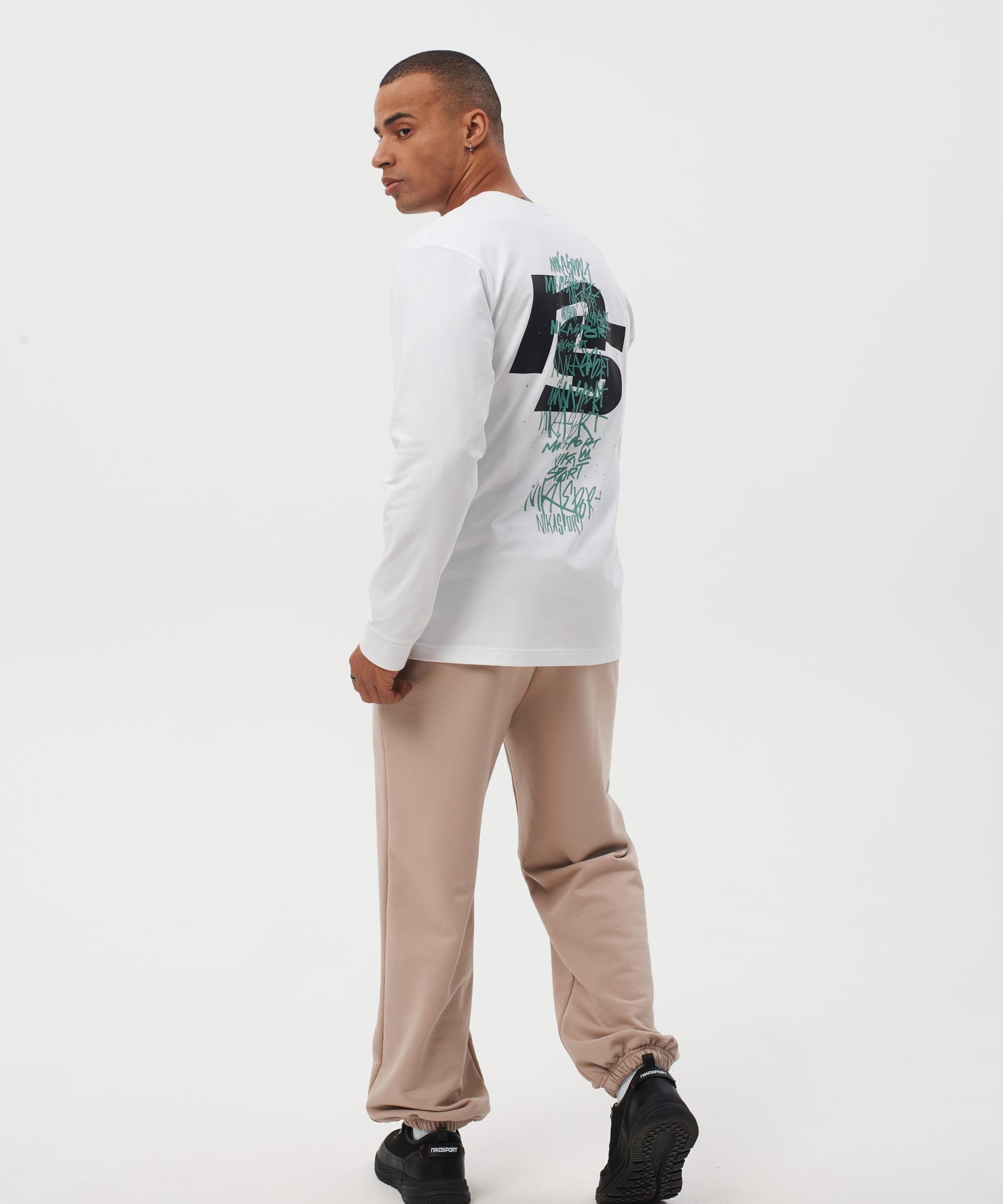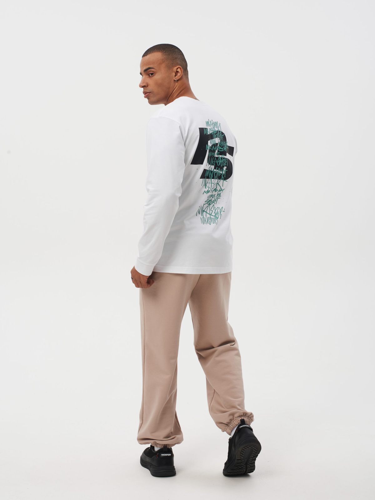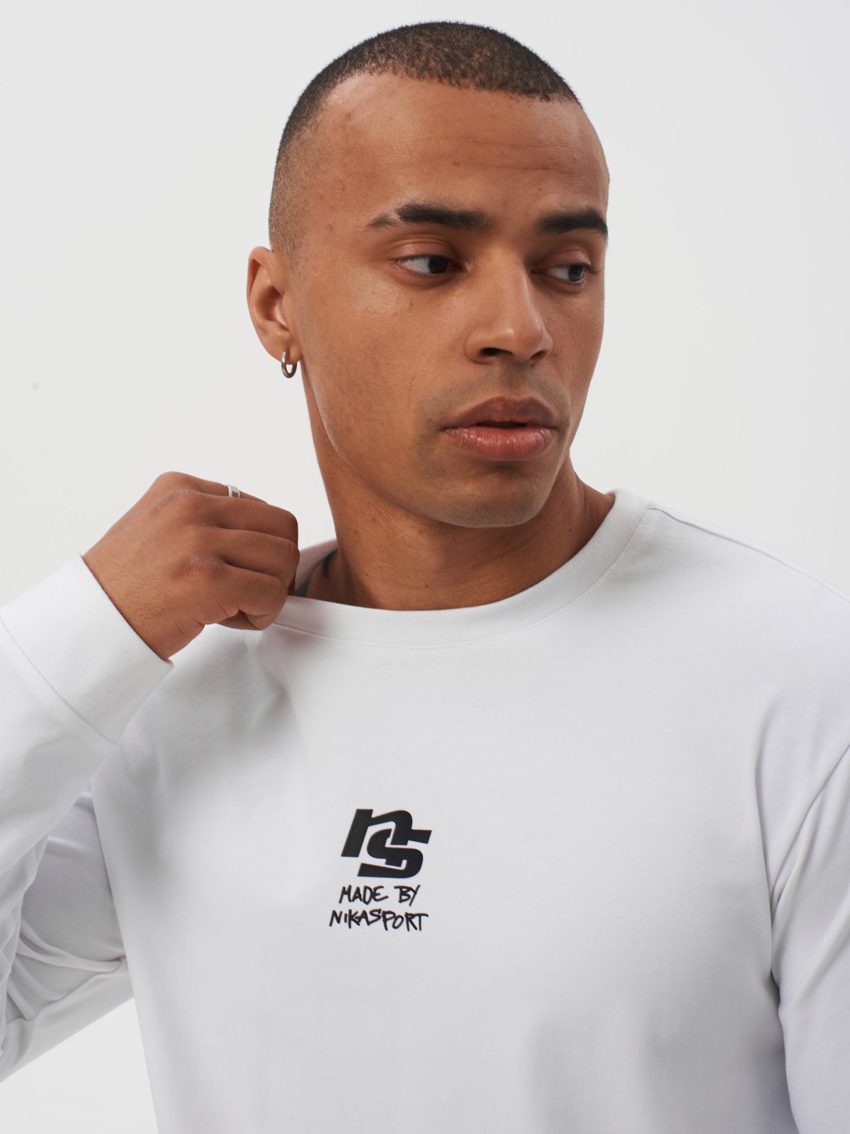 Лонгслив мужской свободного силуэта. В составе 92% хлопка и 8% эластана, что обеспечивает отличную посадку и долговечность изделия. Прямой крой, на спине расположен стильный графити-принт. Представлен в классических цветах - черном и белом. Лонгслив прекрасно дополнит ваш спортивный образ, легко может сочетаться с джинсами и брюками.