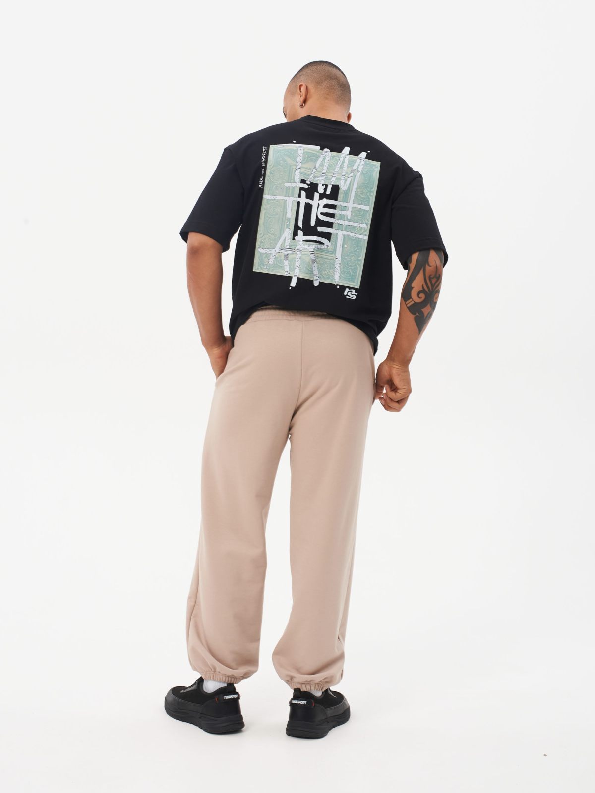 Мужские брюки-джоггеры свободного силуэта. Выполнены из материала, в составе которого 90% хлопка и 10% полиэстера, что обеспечивает отличную посадку и долговечность изделия. Брюки имеют два боковых кармана для хранения личных вещей и лаконичный фирменный лого-принт на левой ноге. Эластичный шнур в поясе помогает регулировать посадку. Представлены в универсальных цветах - черный и капучино. Модель создана для повседневных образов в спортивном стиле.