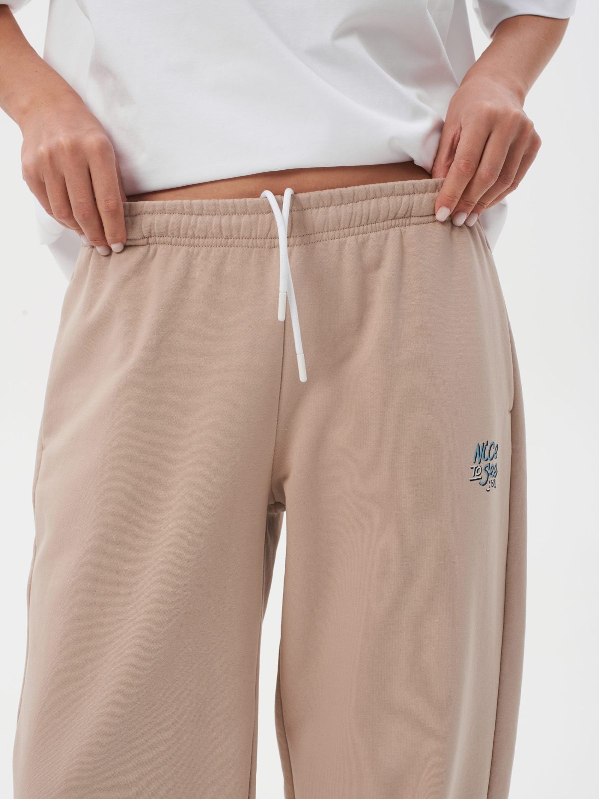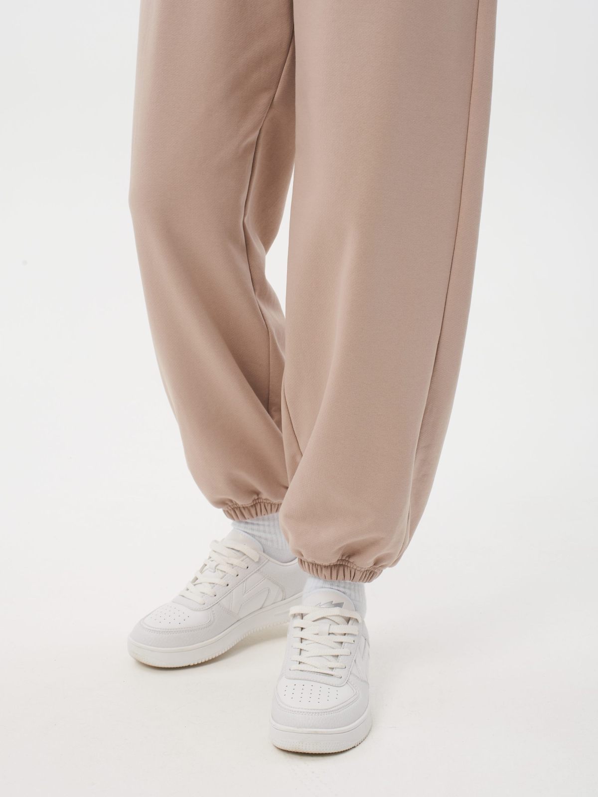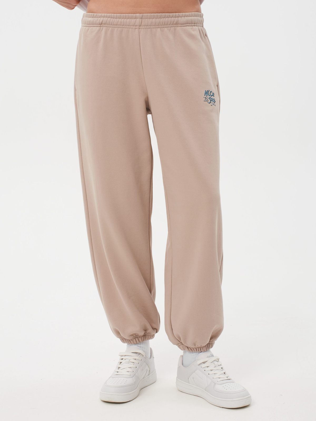 Женские брюки-джоггеры свободного силуэта. Выполнены из материала, в составе которого 90% хлопка и 10% полиэстера, что обеспечивает отличную посадку и долговечность изделия. Брюки имеет два боковых кармана для хранения личных вещей и фирменный принт коллекции Nature Sweet на левой ноге. Эластичный шнур в поясе помогает регулировать посадку. Модель создана для повседневных образов в спортивном стиле. Представлены в двух трендовых летних цветах: снежная мята и капучино, что позволяет создавать крутые летние комплекты с любой вещью в вашем гардеробе