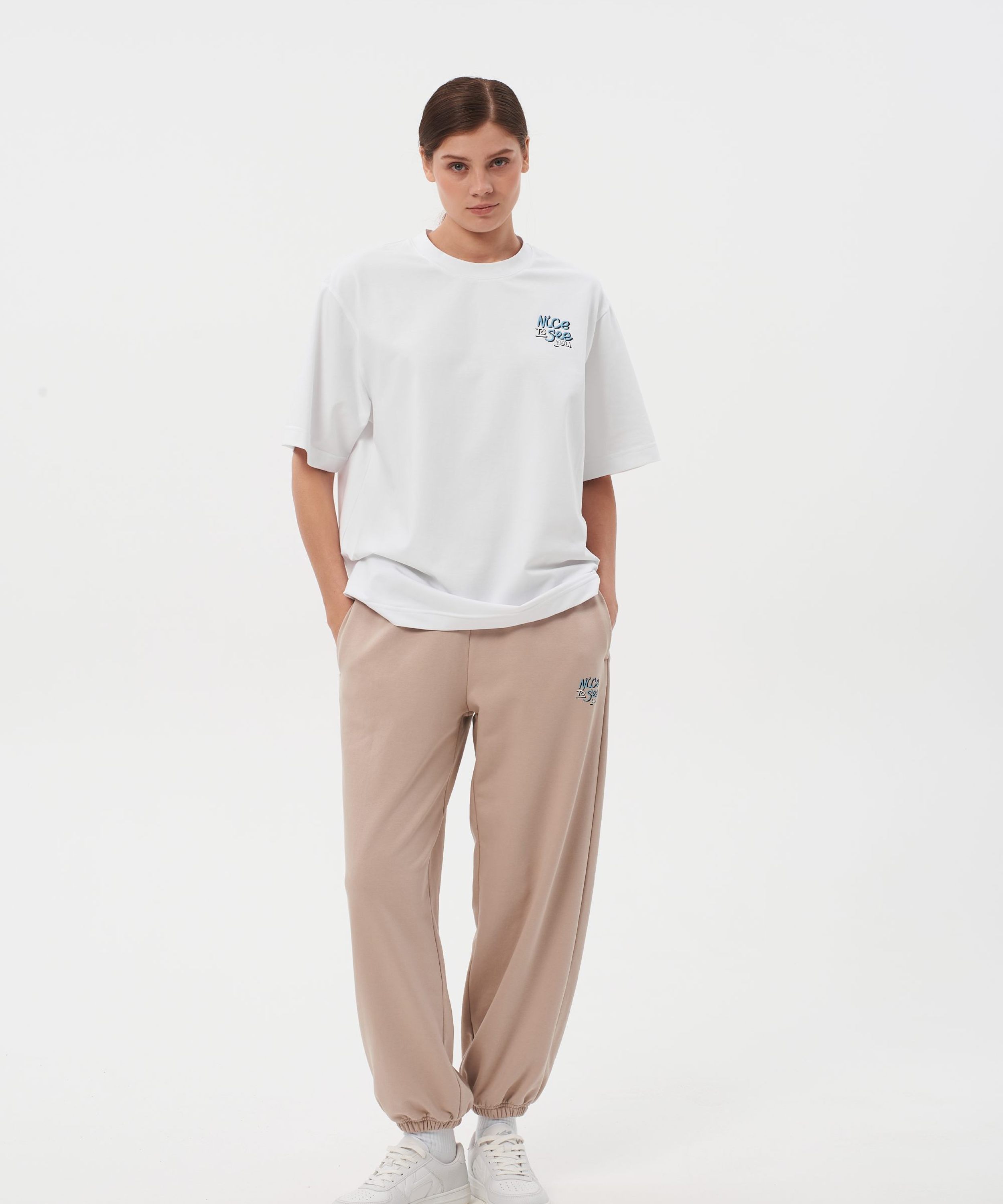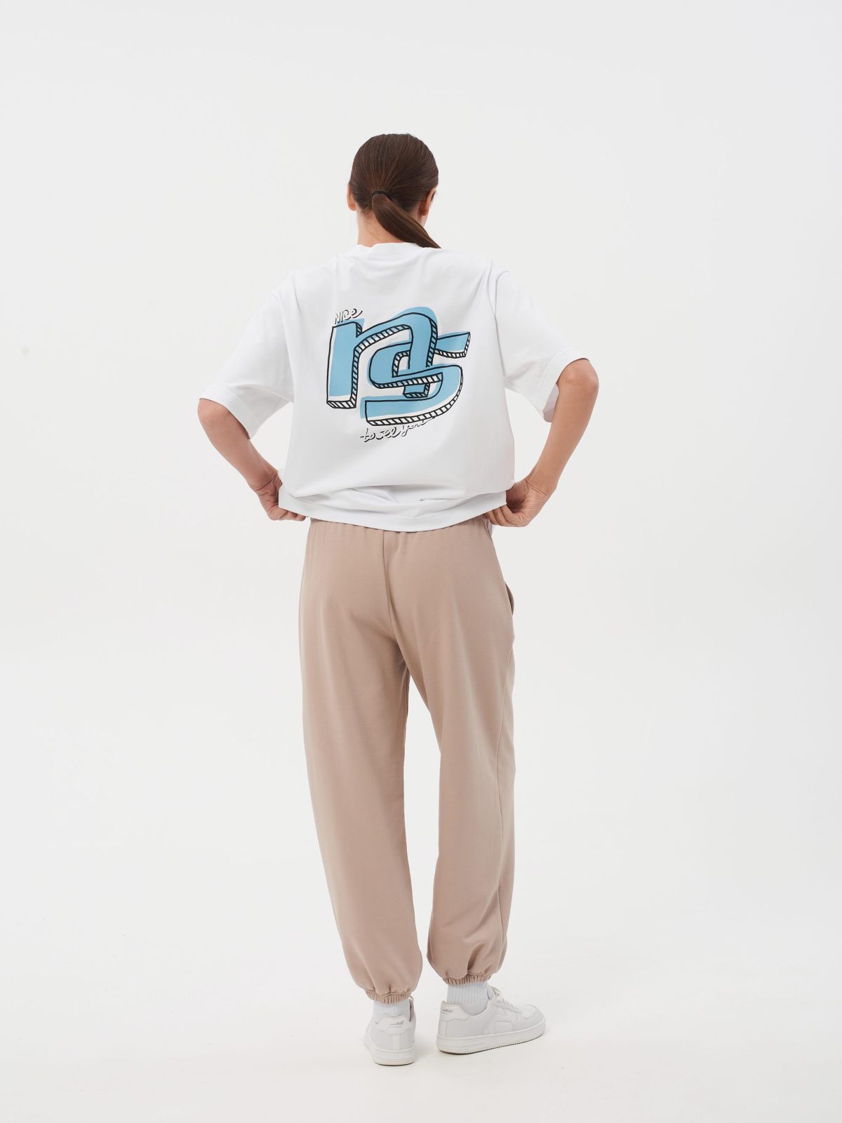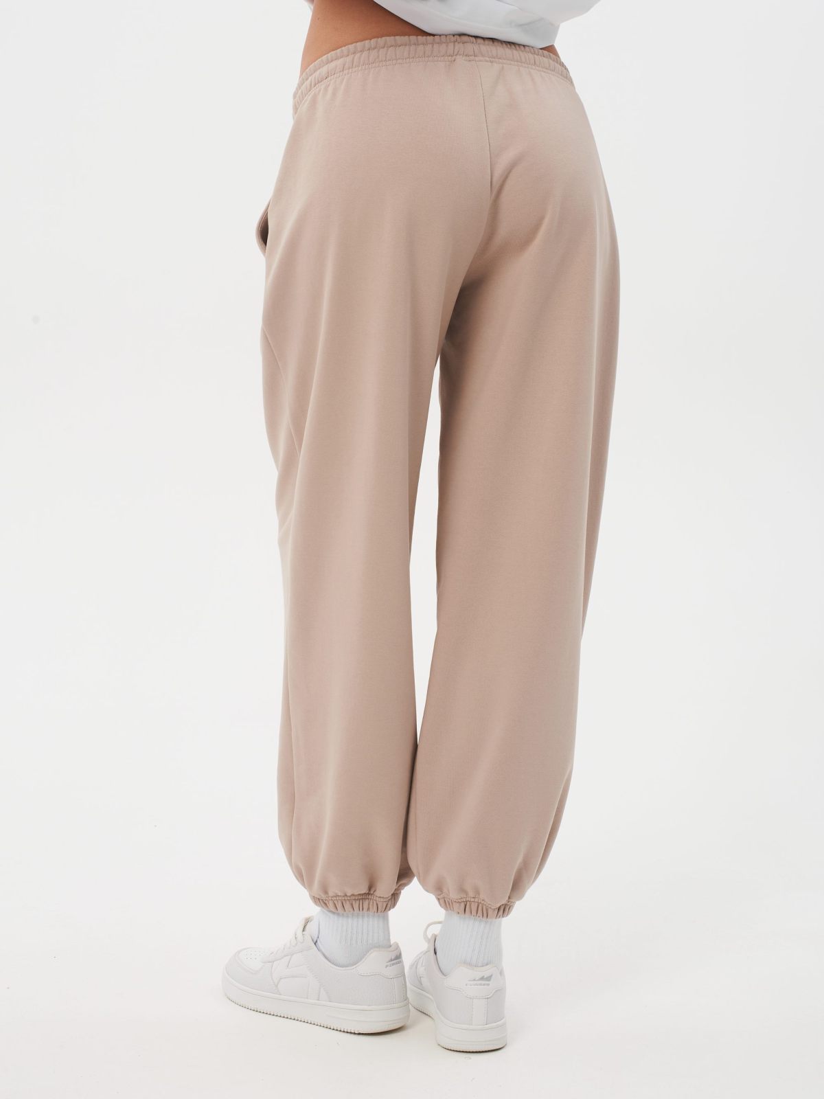 Женские брюки-джоггеры свободного силуэта. Выполнены из материала, в составе которого 90% хлопка и 10% полиэстера, что обеспечивает отличную посадку и долговечность изделия. Брюки имеет два боковых кармана для хранения личных вещей и фирменный принт коллекции Nature Sweet на левой ноге. Эластичный шнур в поясе помогает регулировать посадку. Модель создана для повседневных образов в спортивном стиле. Представлены в двух трендовых летних цветах: снежная мята и капучино, что позволяет создавать крутые летние комплекты с любой вещью в вашем гардеробе