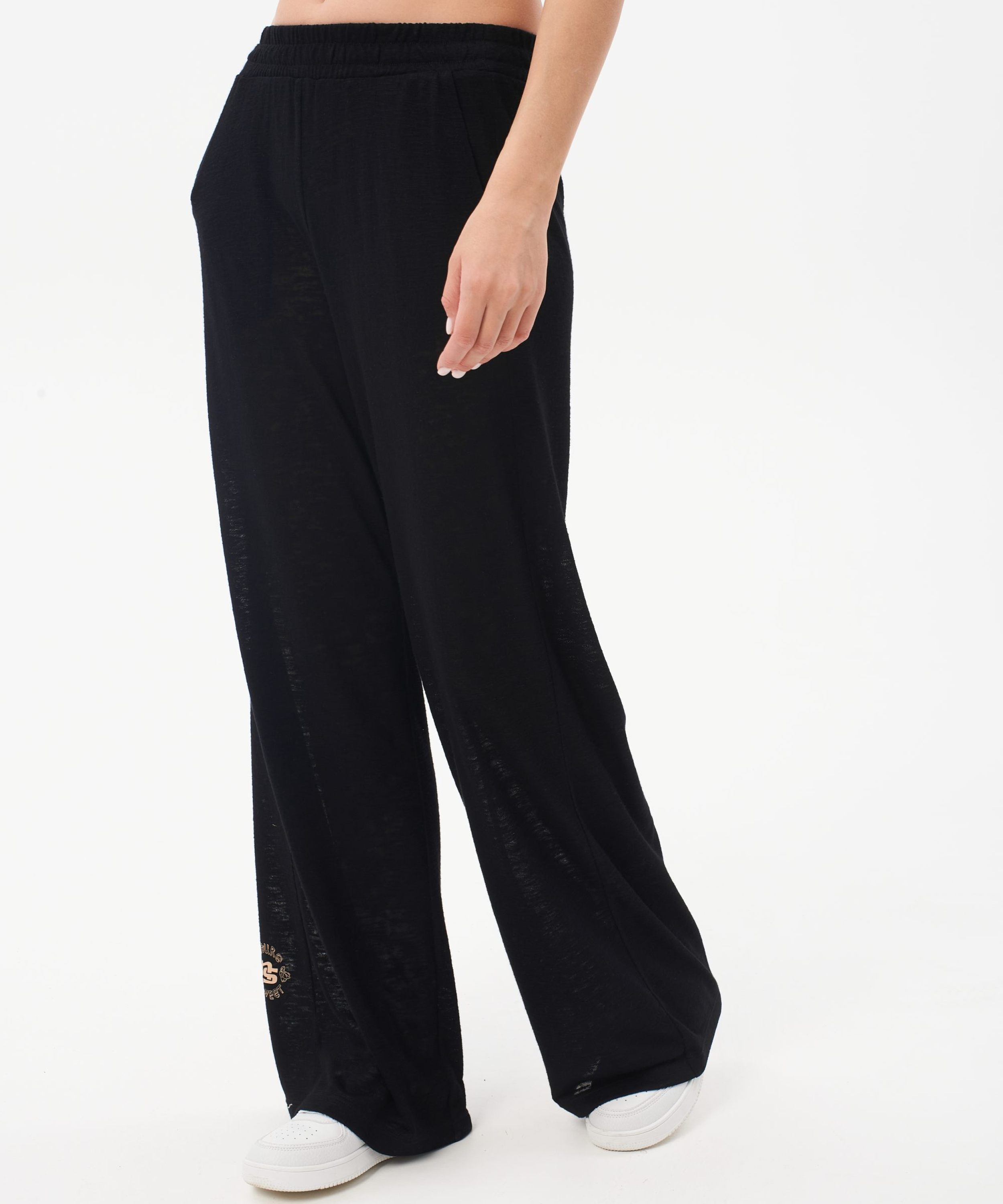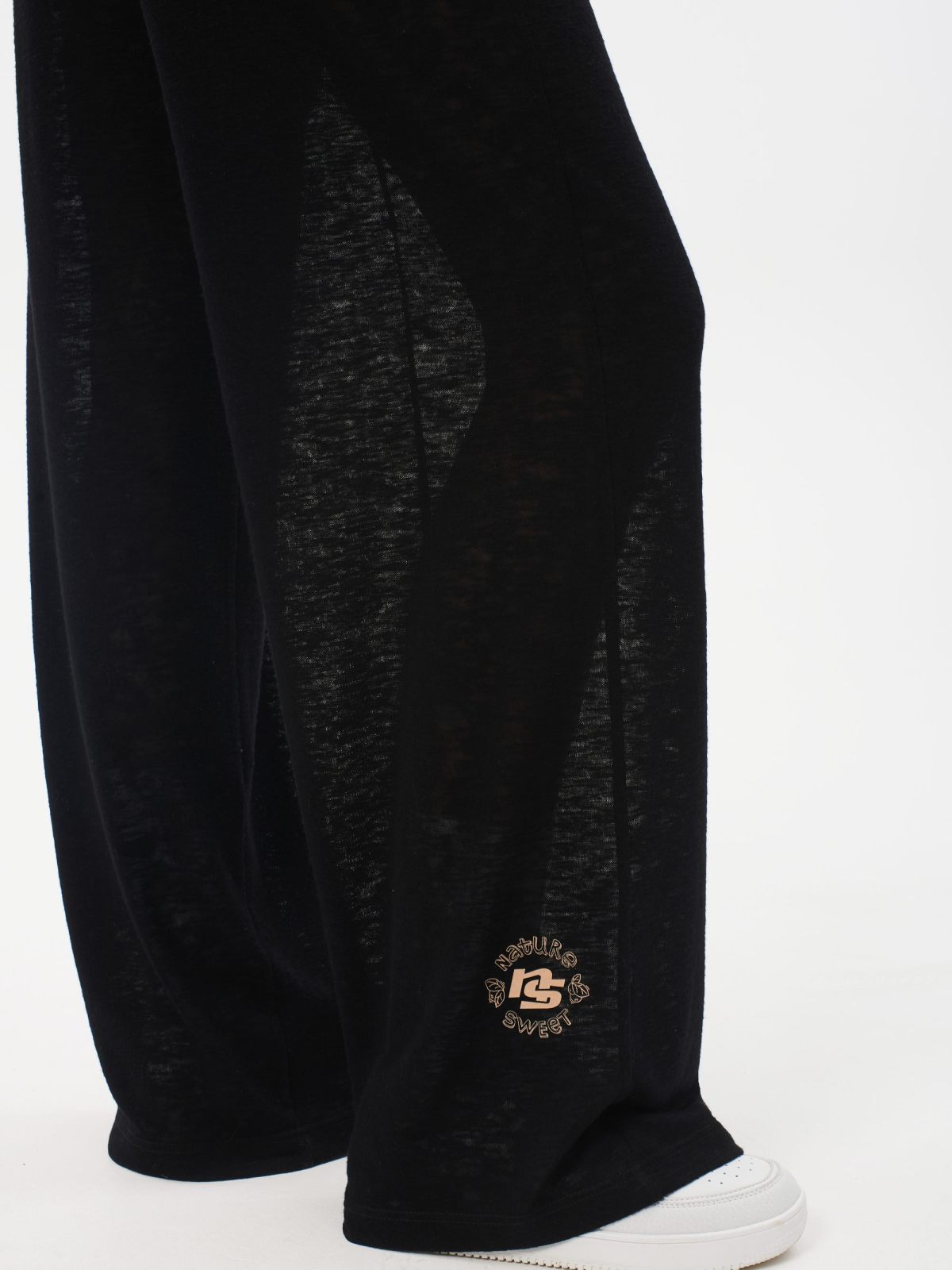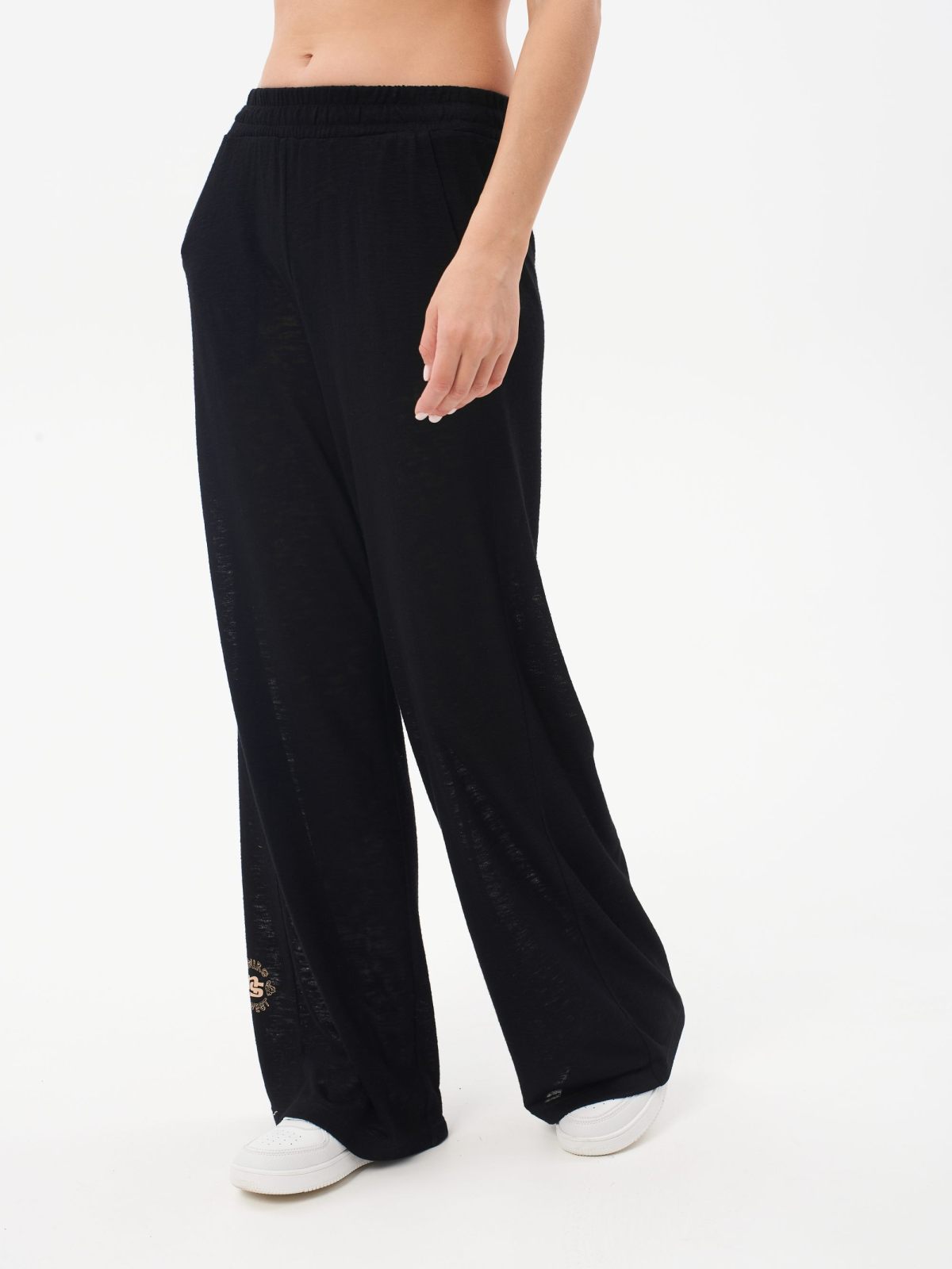 Женские прямые широкие брюки oversize силуэта. В составе 65% вискозы и 35% полиэстера. Материал является главным преимуществом этой модели - брюки легкие, мягкие, практически не ощущаются на теле. Выполнены в классическом черном цвете и отлично подходят для летних образов.