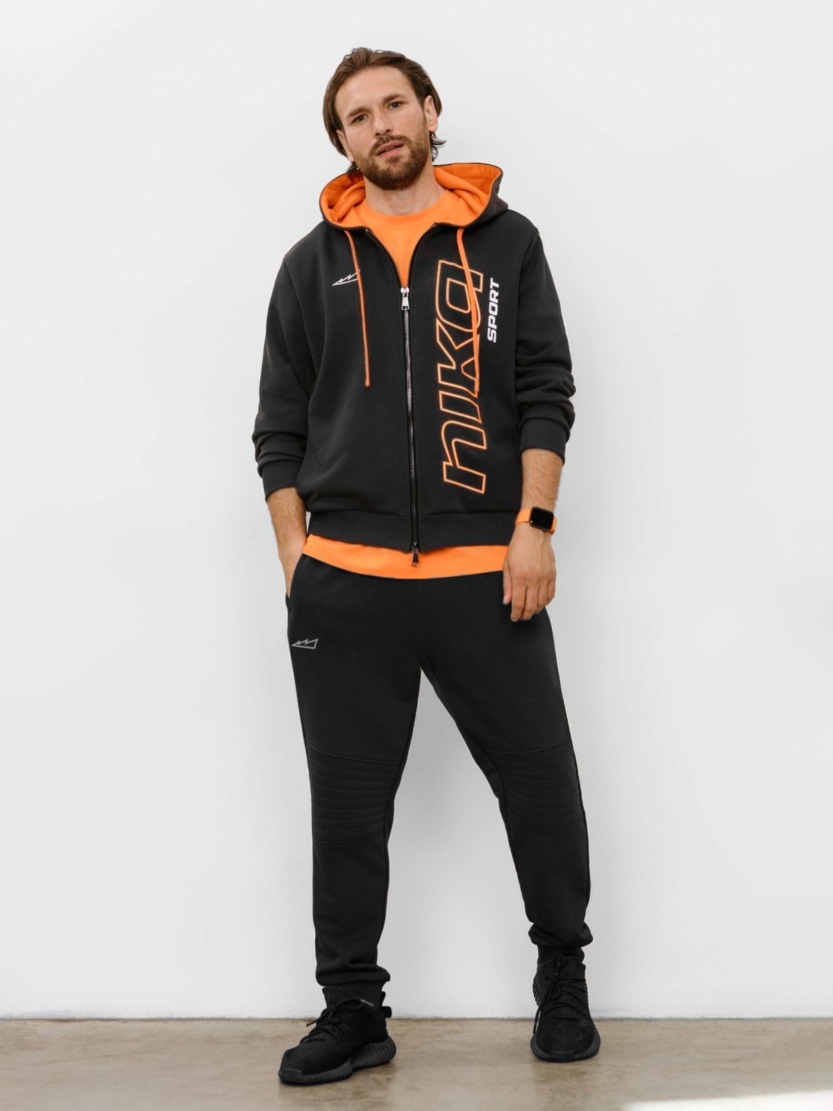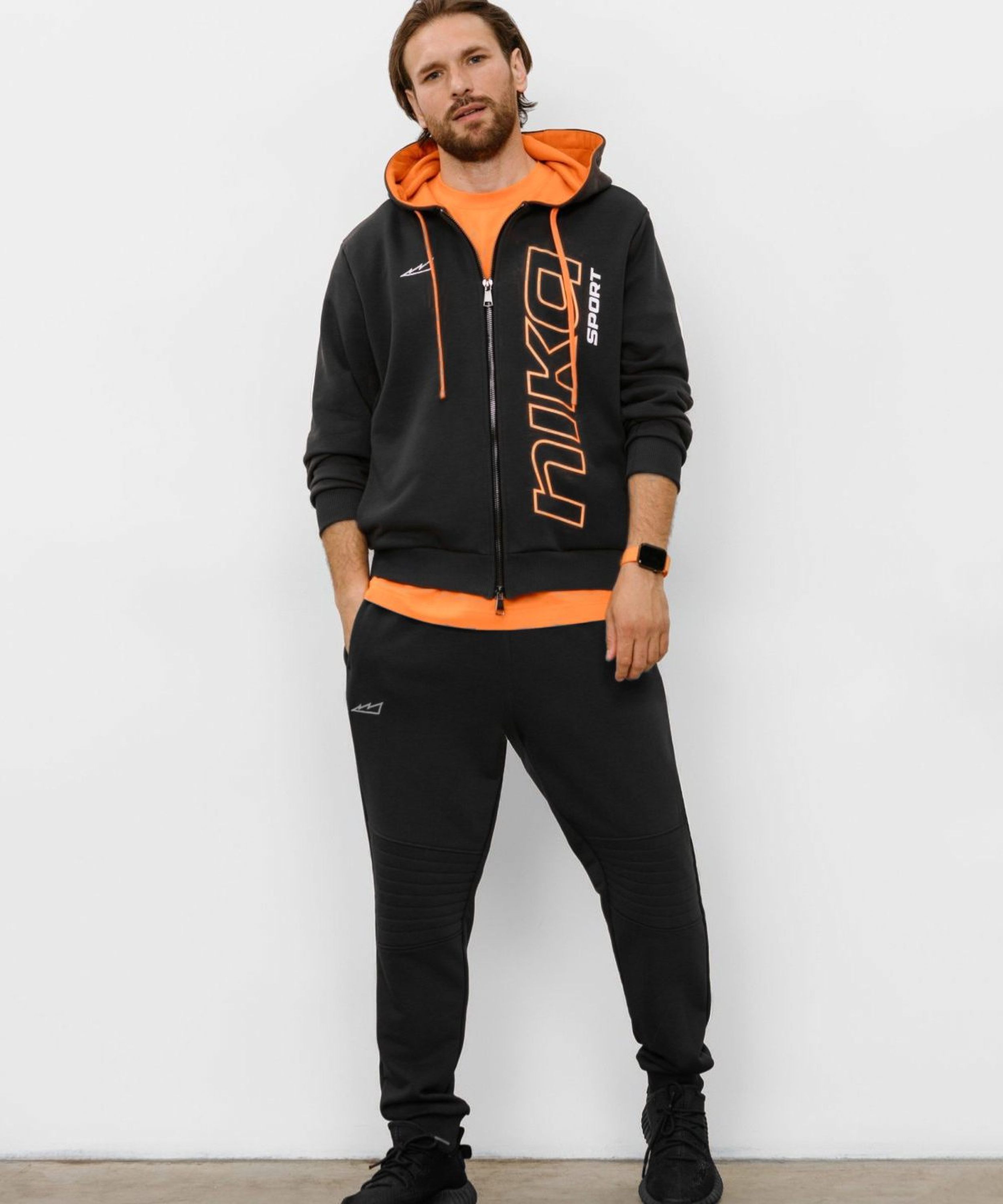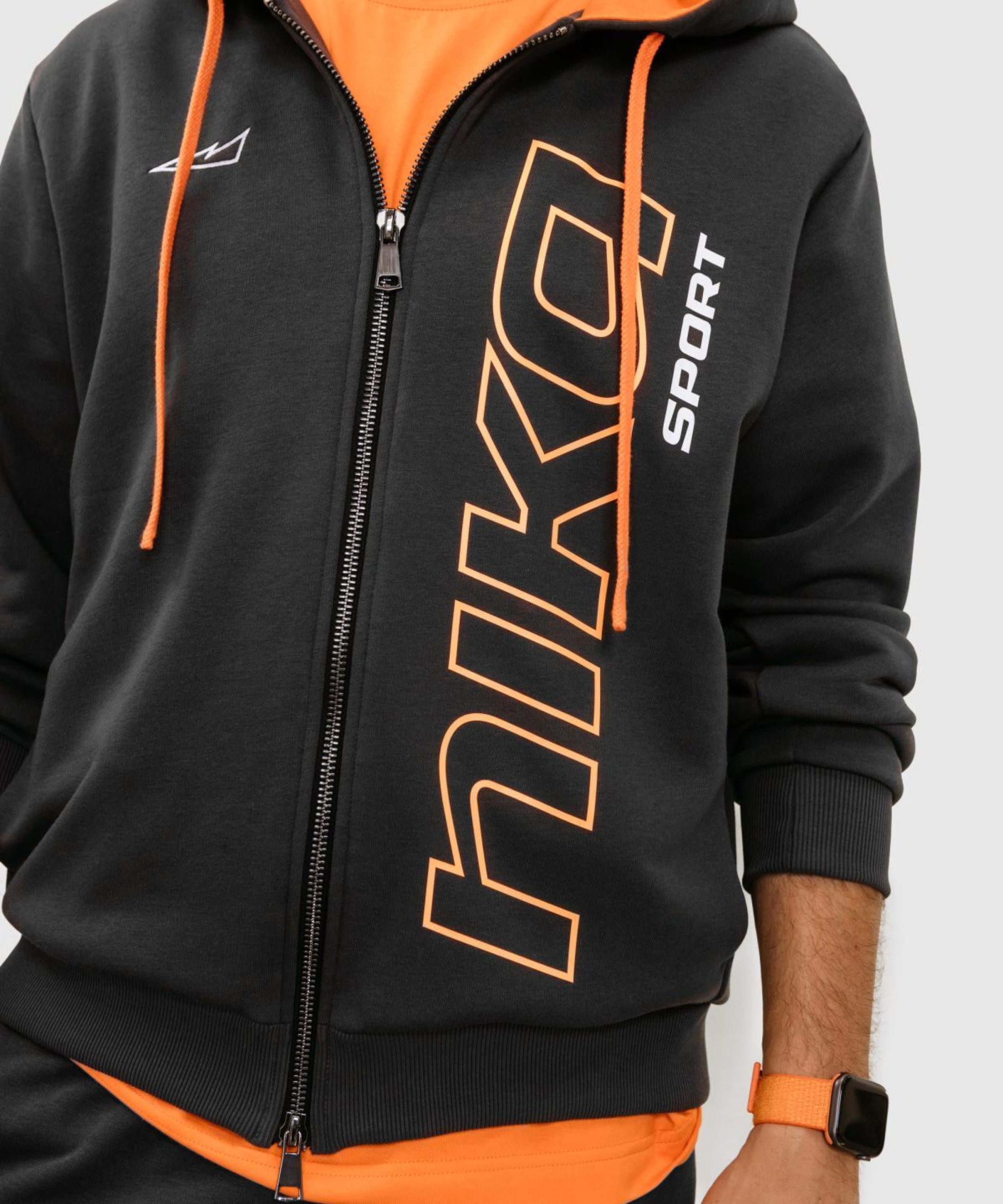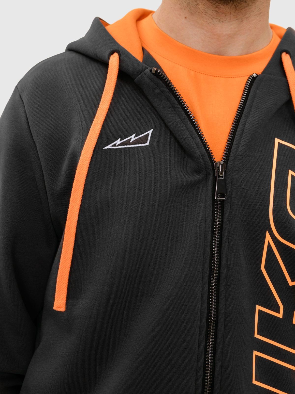 Мужское худи силуэта Regular из лимитированной коллекции B&G. В составе 80% хлопка и 20% полиэстера, что обеспечивает отличную посадку и долговечность изделия. Представлен в 2 цветах: спокойный бежевый и дерзкий темно-серый с оранжевыми акцентами. Дизайнерский лого-принт на груди, капюшон для защиты от непогоды с контрастной подкладкой и два глубоких кармана делают худи незаменимой и стильной вещью вашего повседневного гардероба.