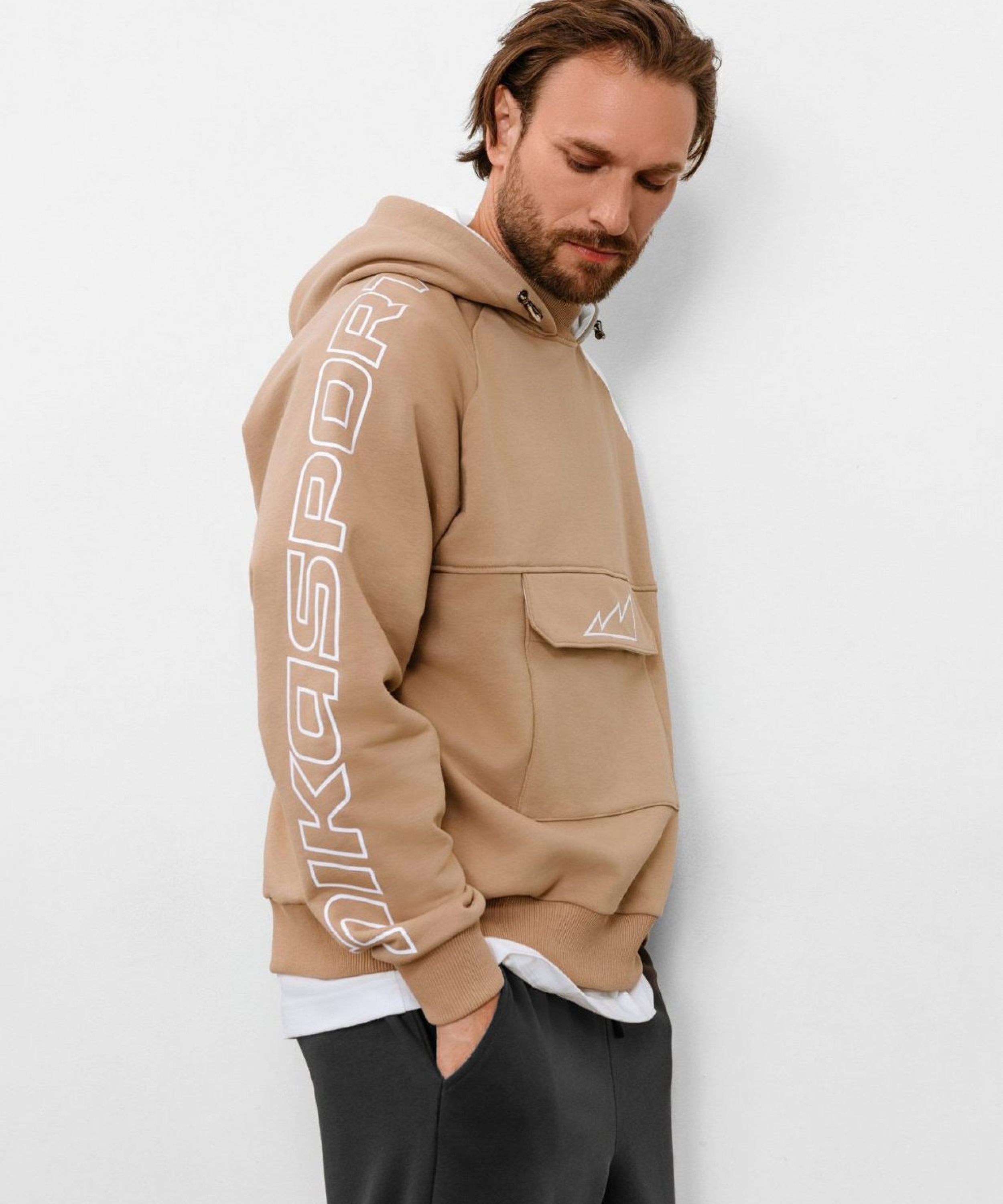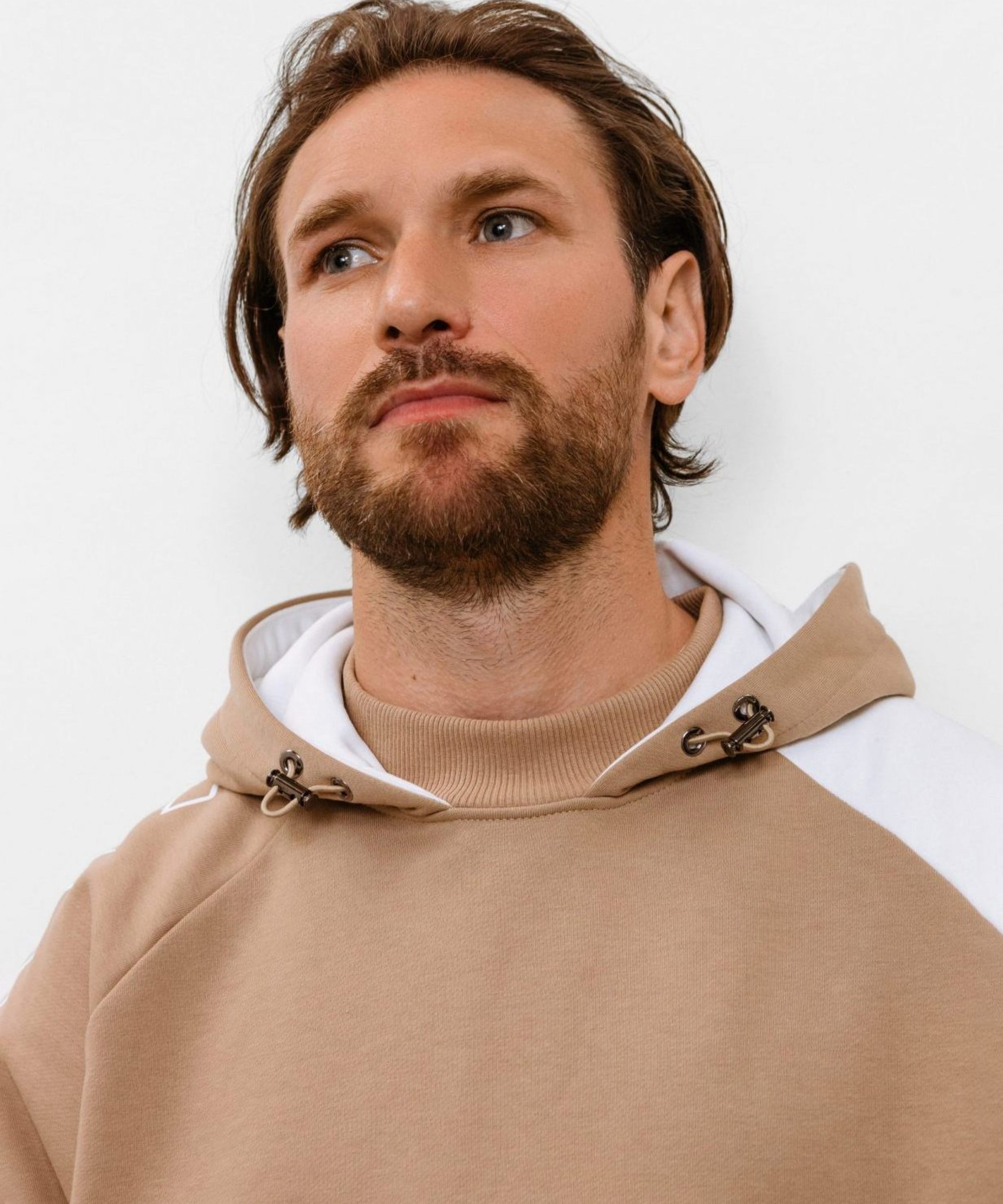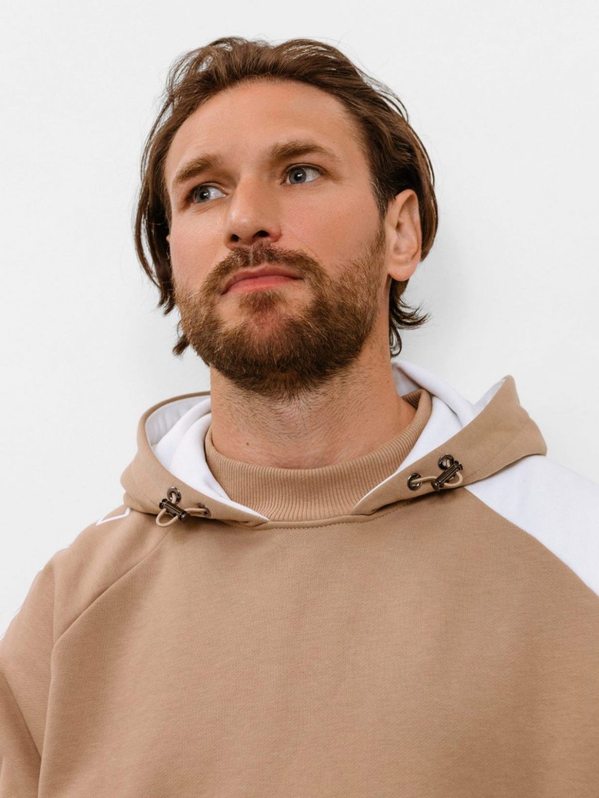 Мужское худи свободного силуэта Loose из лимитированной коллекции B&G. В составе 80% хлопка и 20% полиэстера, что обеспечивает отличную посадку и долговечность изделия. Контрастные рукав и подкладка, стильные дизайнерские лого-принты на правом рукаве и нагрудном кармане, удобный крой капюшона с воротником-стойкой делают худи незаменимой вещью вашего гардероба на каждый день и создают запоминающийся спортивный образ.
