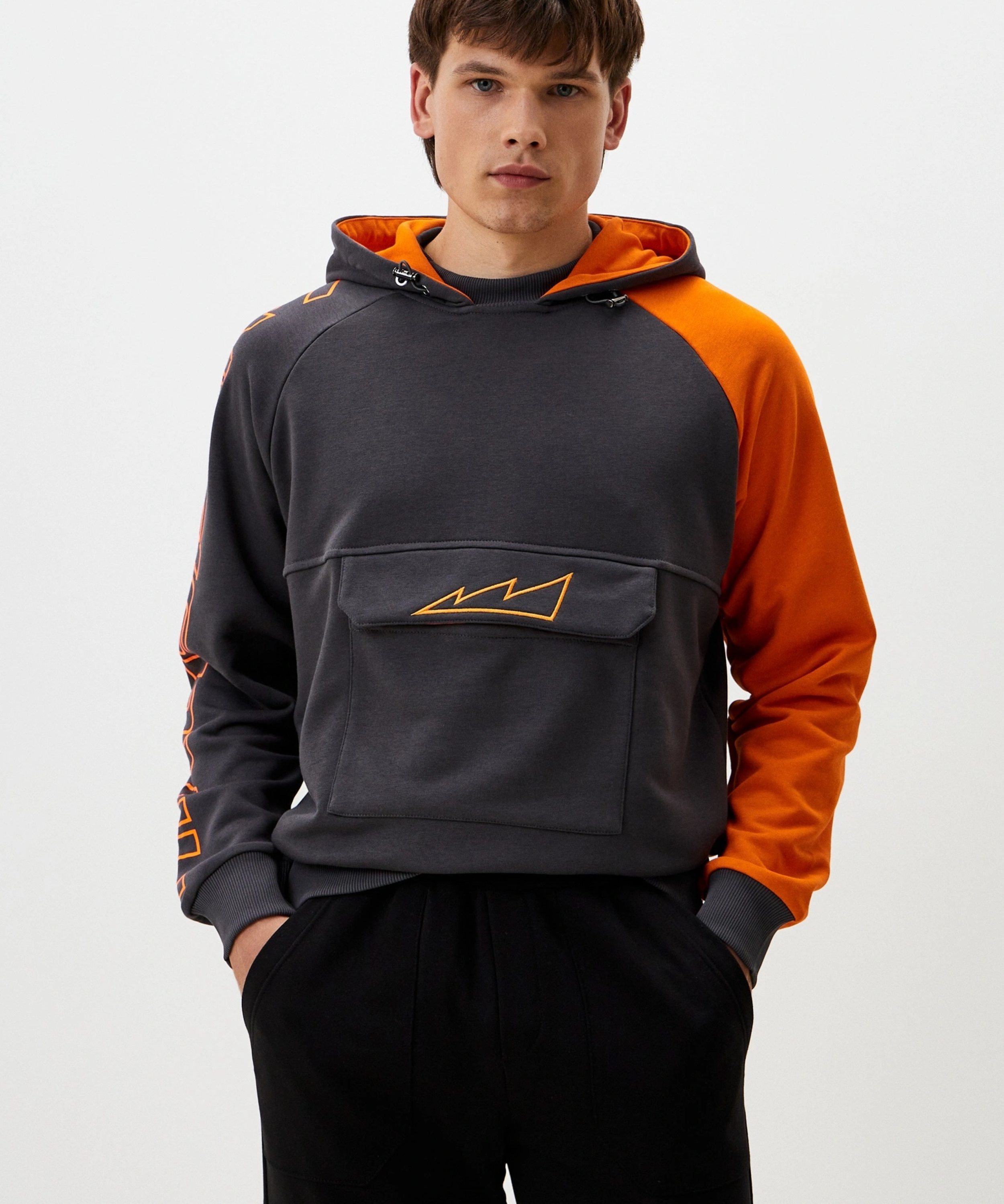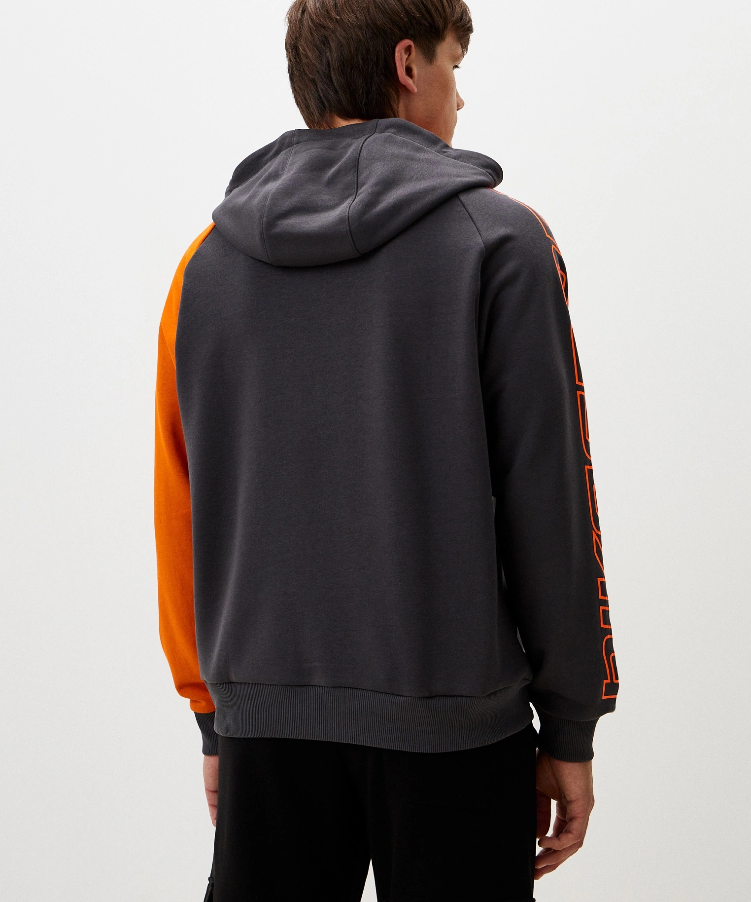 Мужское худи свободного силуэта Loose из лимитированной коллекции B&G. В составе 80% хлопка и 20% полиэстера, что обеспечивает отличную посадку и долговечность изделия. Контрастные рукав и подкладка, стильные дизайнерские лого-принты на правом рукаве и нагрудном кармане, удобный крой капюшона с воротником-стойкой делают худи незаменимой вещью вашего гардероба на каждый день и создают запоминающийся спортивный образ.