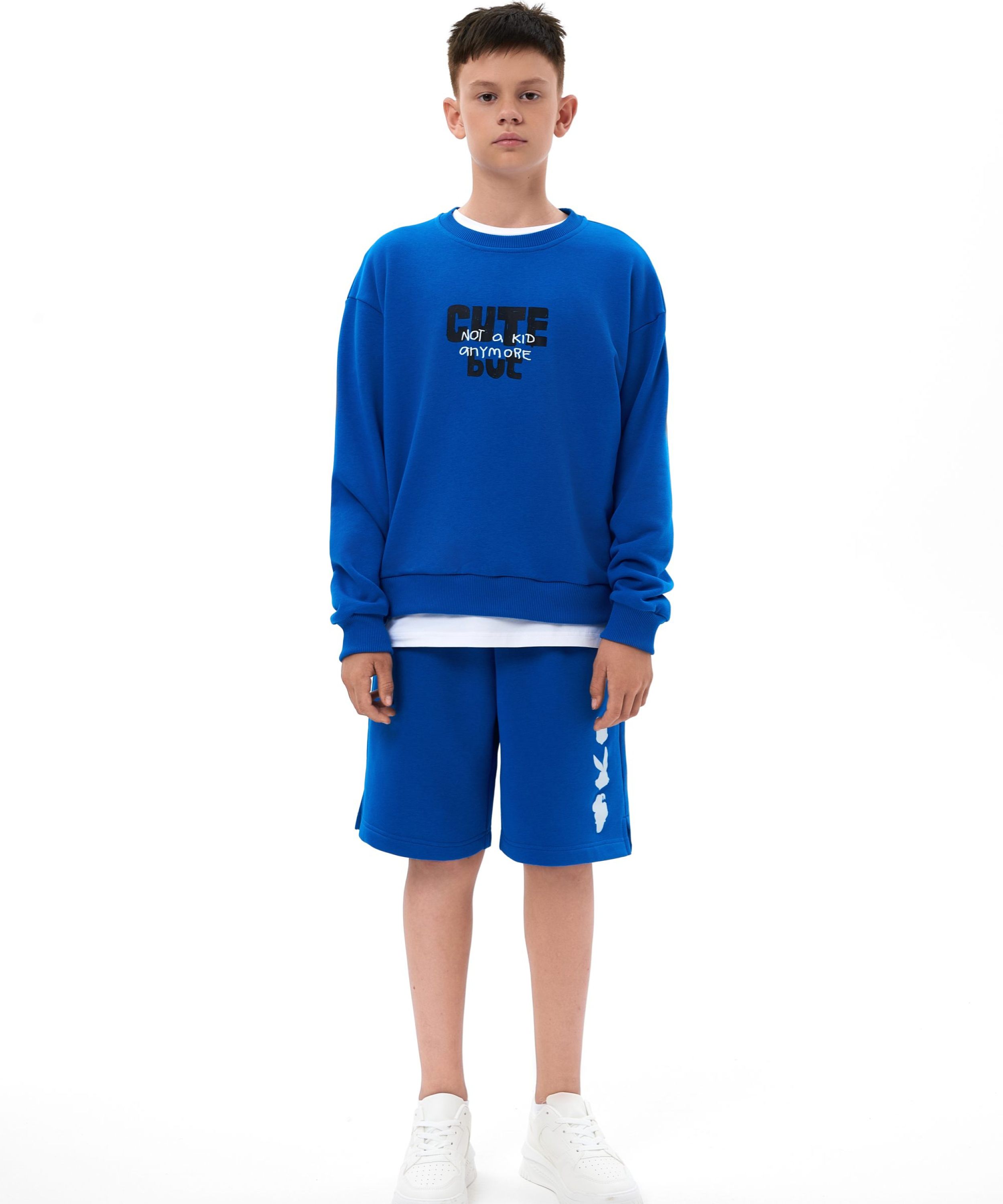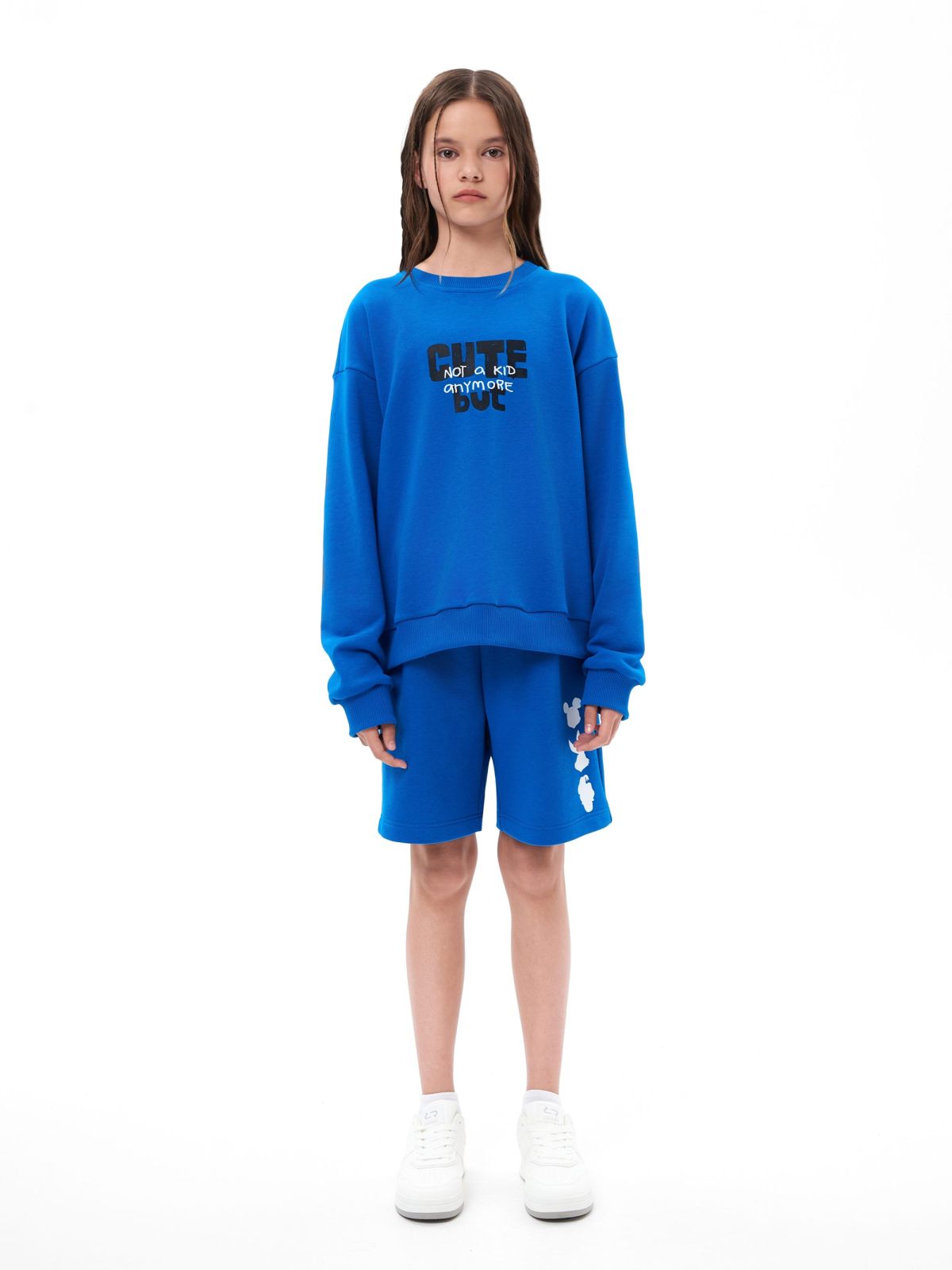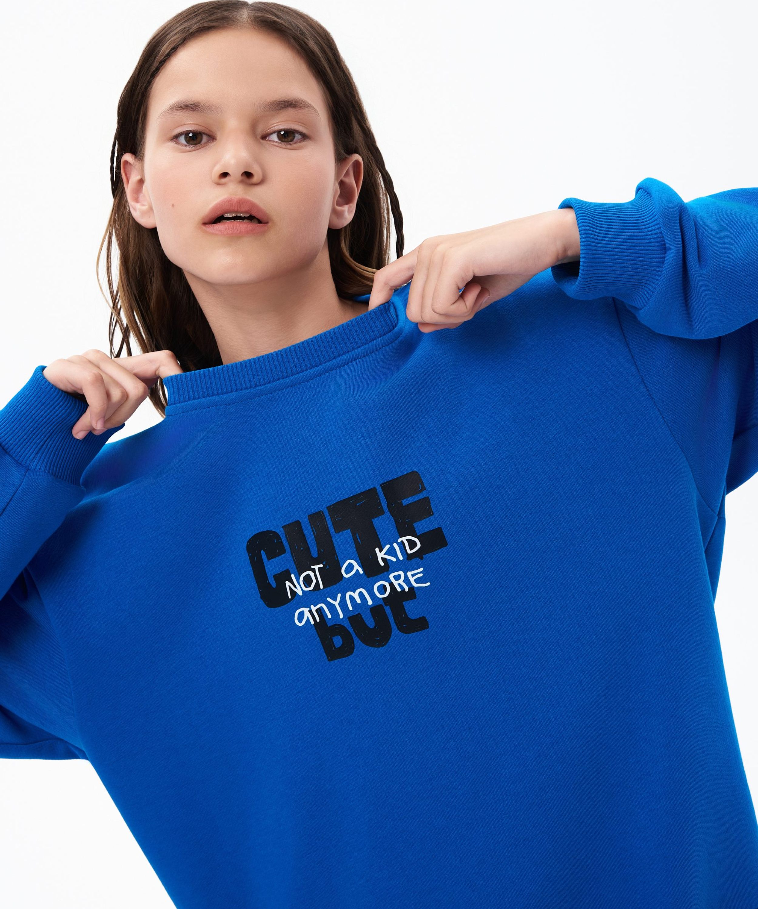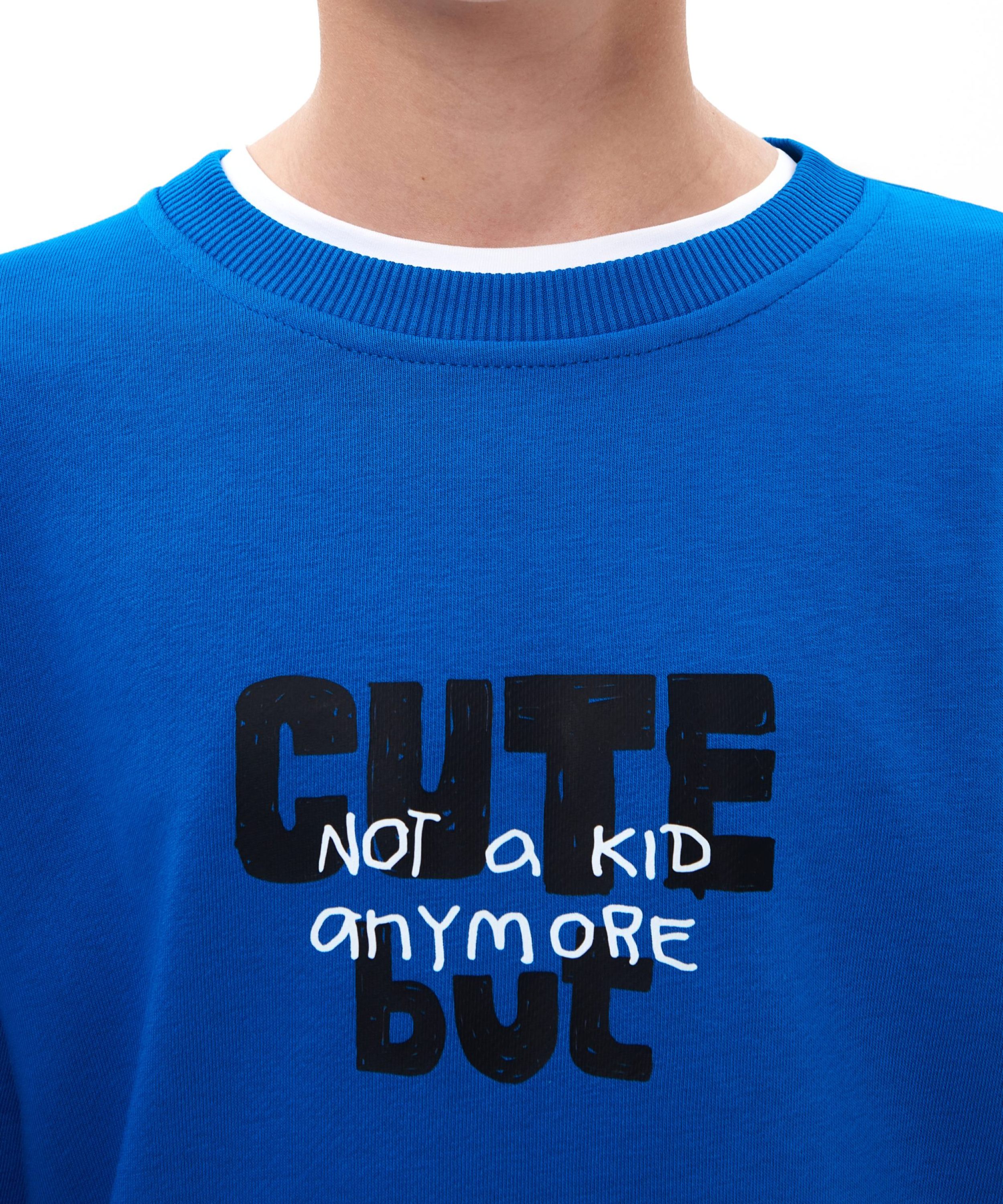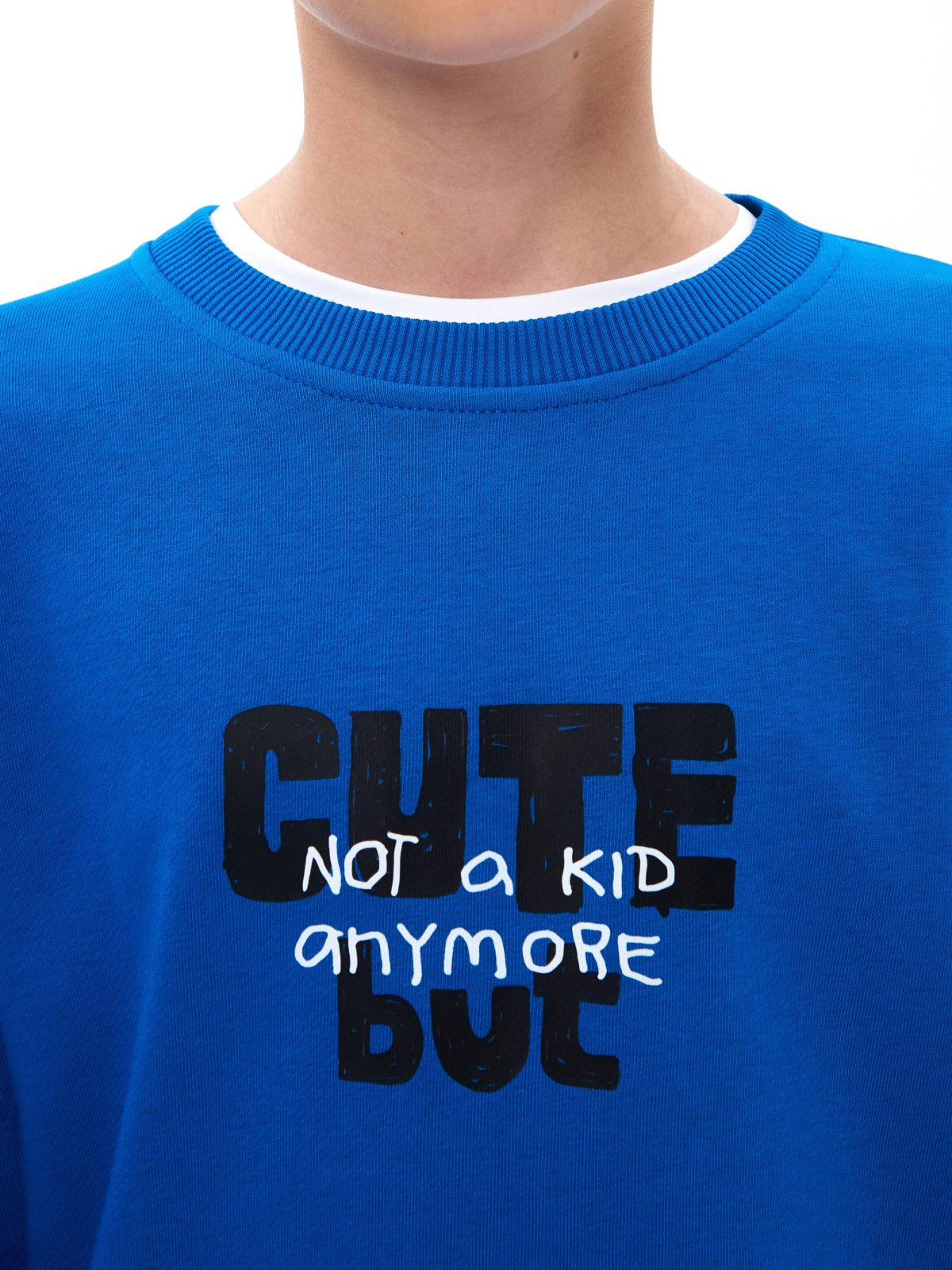 Детский свишот прямого силуэта из коллекции Naka. Выполнен из футера 3х-нитки, в составе которого 90% хлопка и 10% полиэстера - гипоаллергенного, пропускающего воздух, мягкого и плотного материала. На груди и спине расположены большие принты с дизайнерскими слоганами и символами капсулы "Not A Kid Anymore" - любимыми детскими персонажами для тех, кто уже не ребенок! Создай свой стильный образ в ярком синем или глубоком графитовом цвете!
