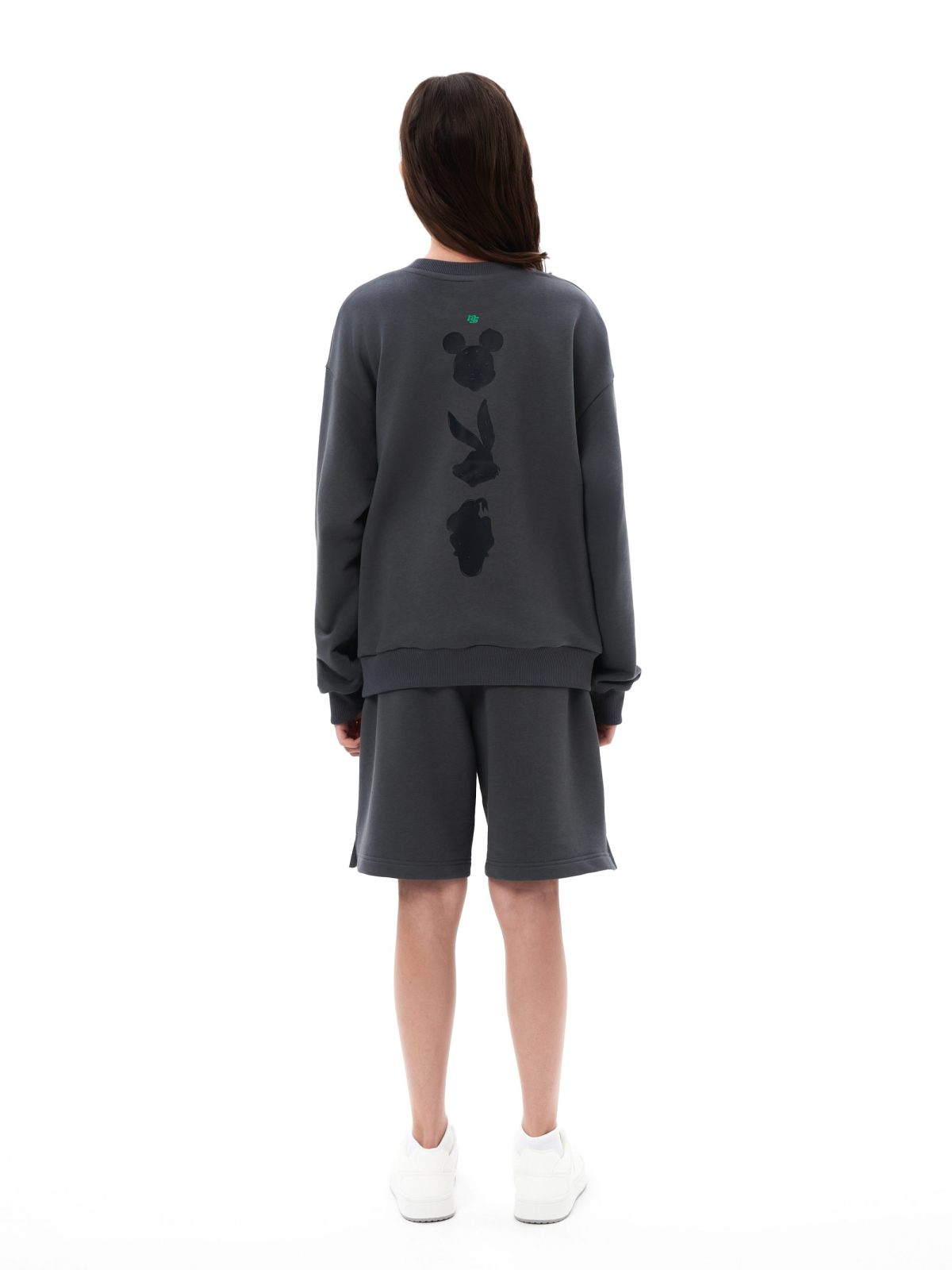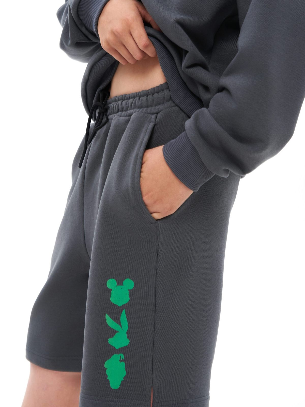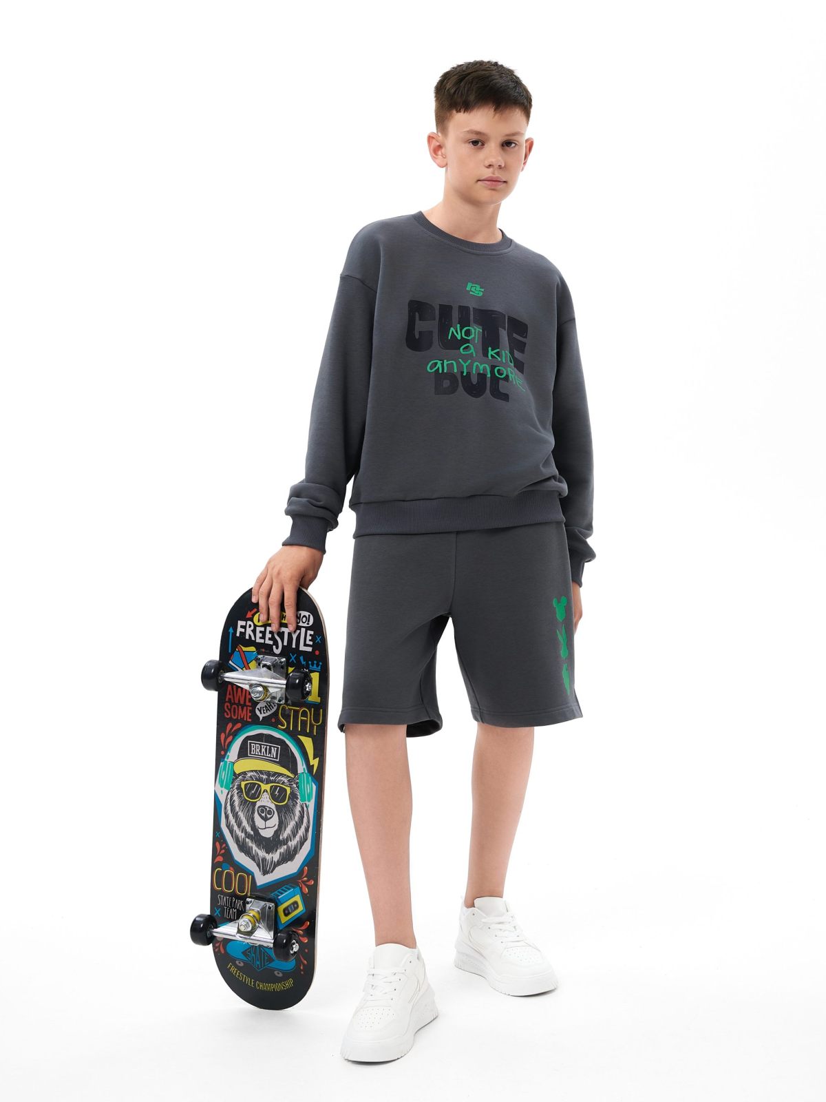 Детские шорты прямого силуэта из коллекции Naka. Выполнены из футера 3х-нитки, в составе которого 92% хлопка и 8% эластана - гипоаллергенного, пропускающего воздух, мягкого и плотного материала. На левой ноге расположен принт с дизайнерскими символами капсулы "Not A Kid Anymore" - любимыми детскими персонажами для тех, кто уже не ребенок! Представлены в 2 цветах: ярком синем и глубоком графитовом. Модель создана для комфортного и запоминающегося образа на каждый день.