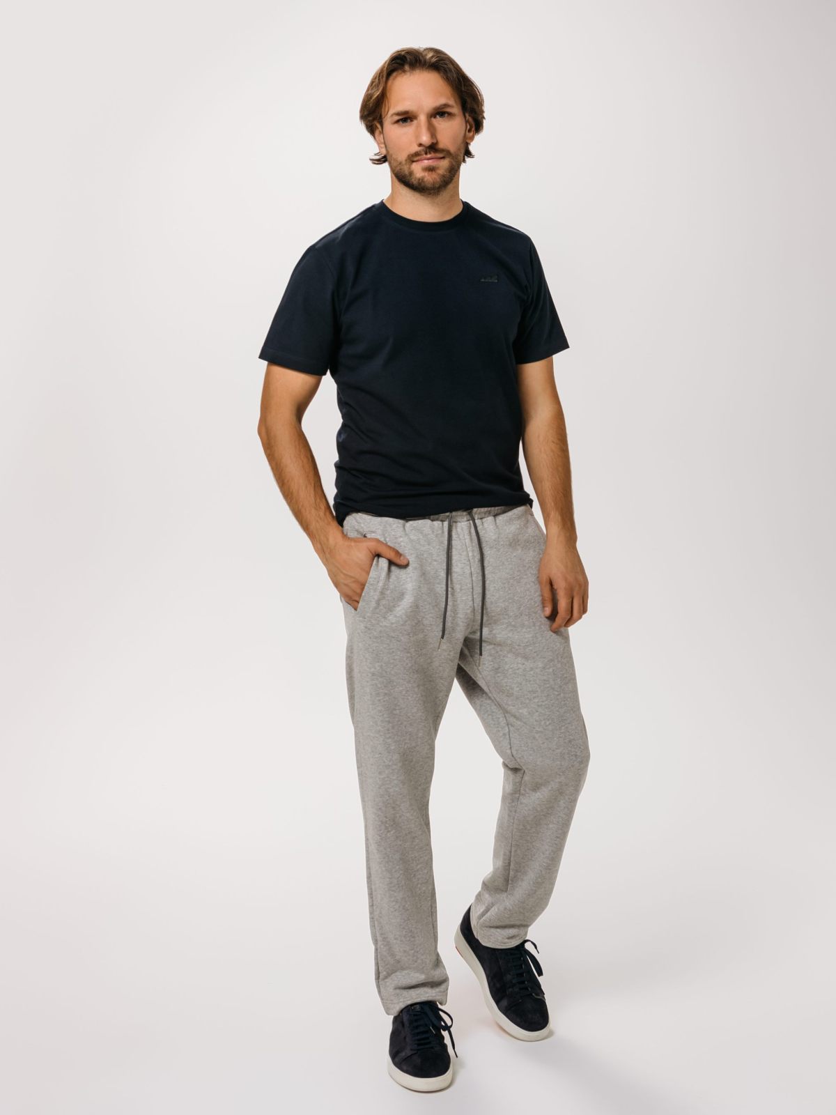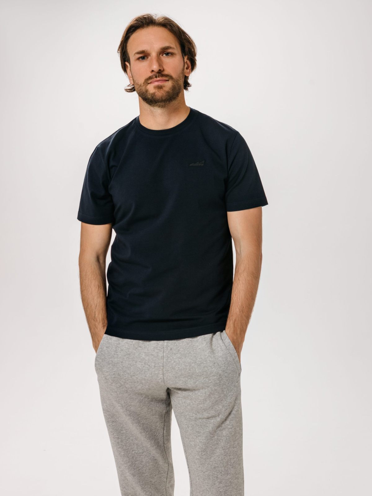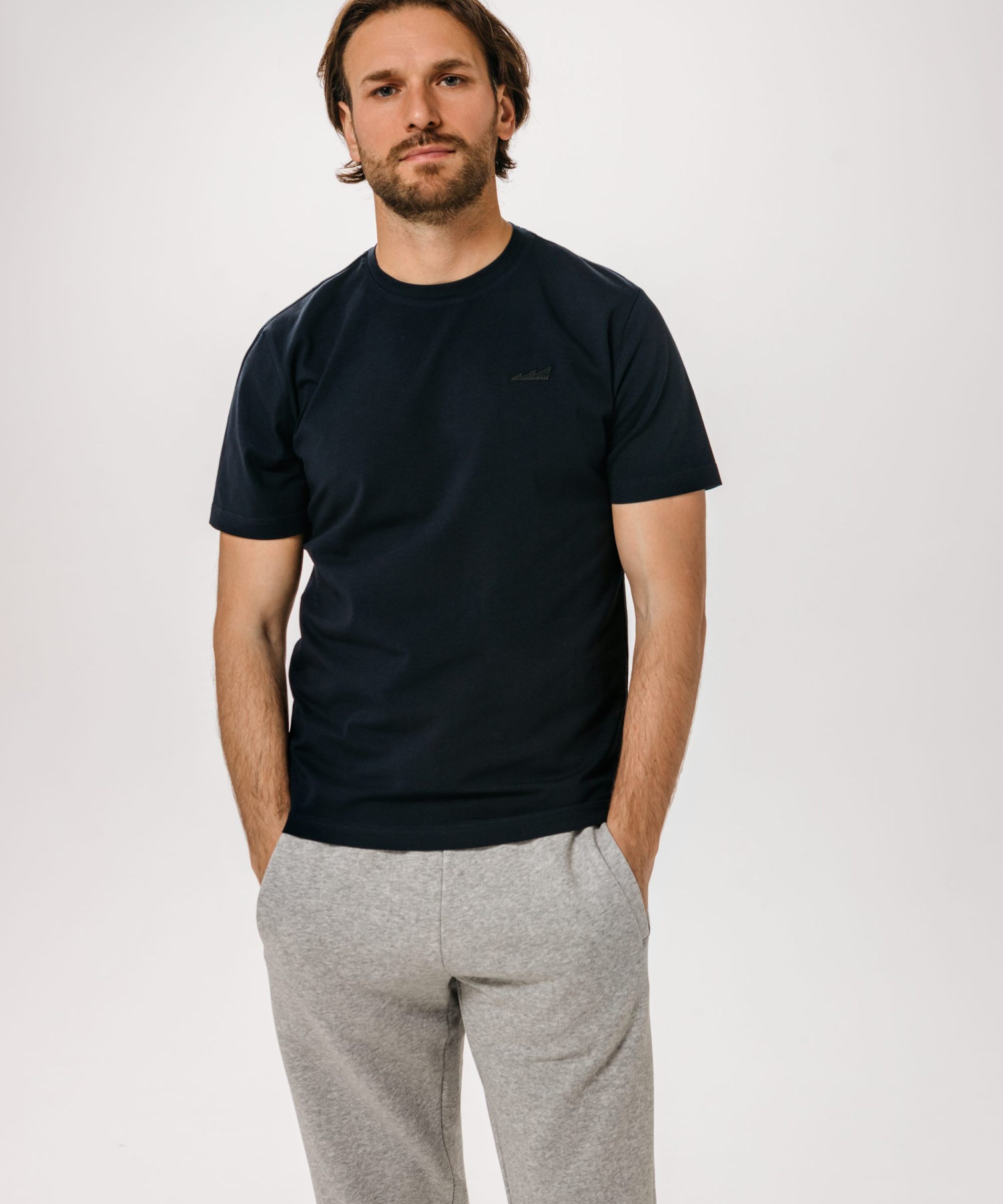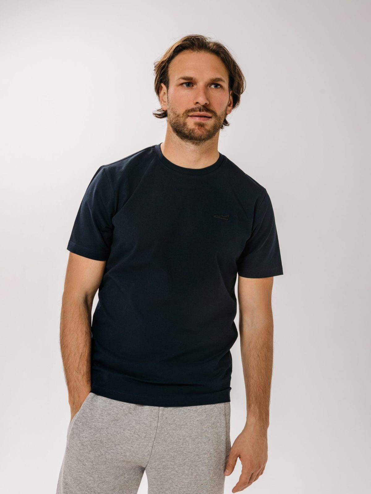 Мужская футболка классического силуэта Regular. Выполнена из материала, в составе которого 90% хлопка и 10% эластана, за счет чего футболка лучше держит форму. На груди расположена стильная вышивка-логотип. Модель представлена в 3 цветах - базовый белый, темно-синий и серый меланж. Легко сочетается как со спортивной так и с повседневной одеждой как база для ваших образов.