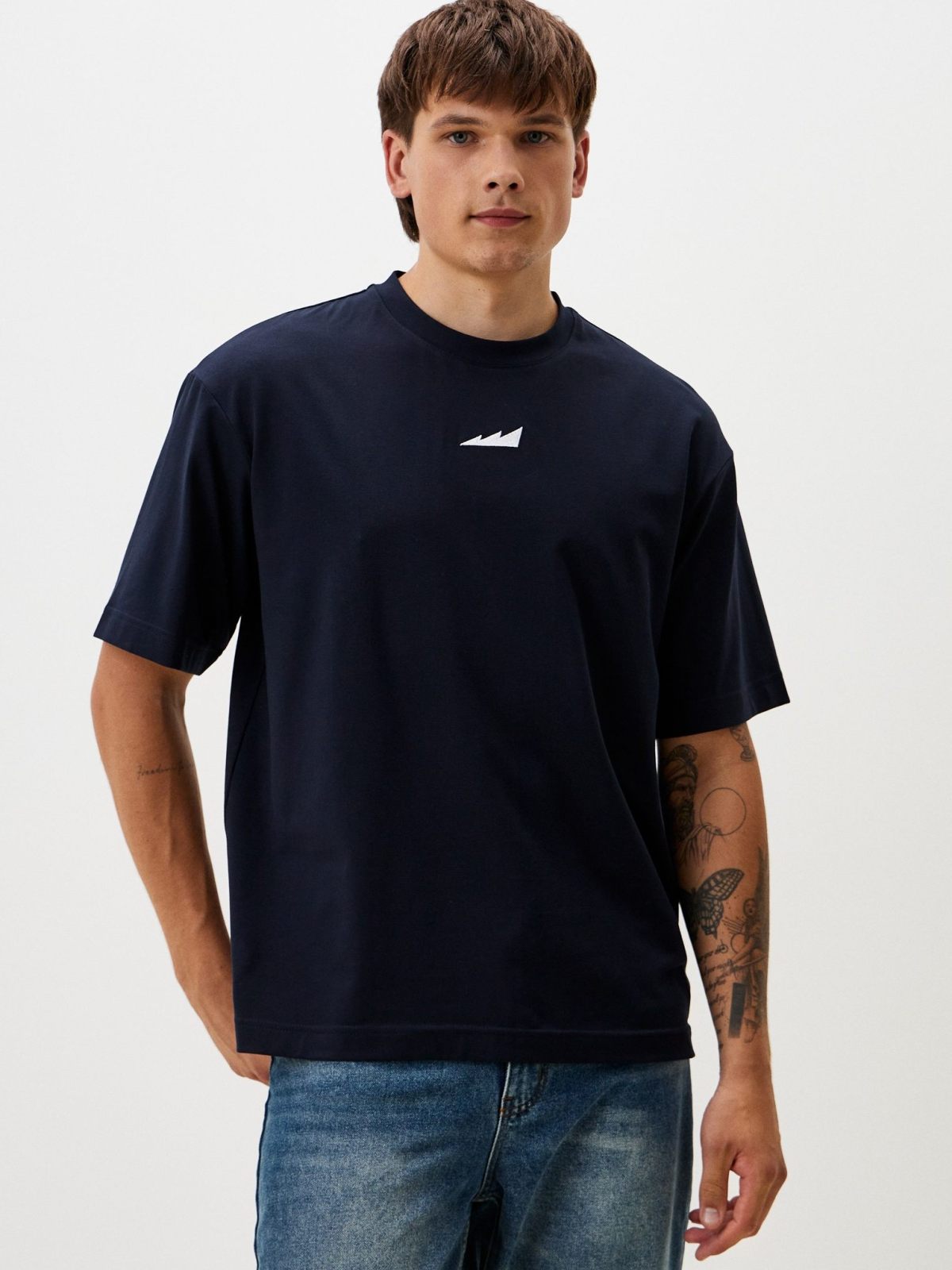 Мужская футболка oversize силуэта. Сделана из плотного хлопка, который держит форму и обеспечивает отличную посадку. У футболки прямой крой, спущенная линия плеча, широкие рукава и тональный логотип-вышивка на передней части изделия слева. Базовая вещь, которая дополнит ваш гардероб и будет прекрасно сочетаться как со спортивной одеждой, так и с классикой, джинсами и другими предметами гардероба.