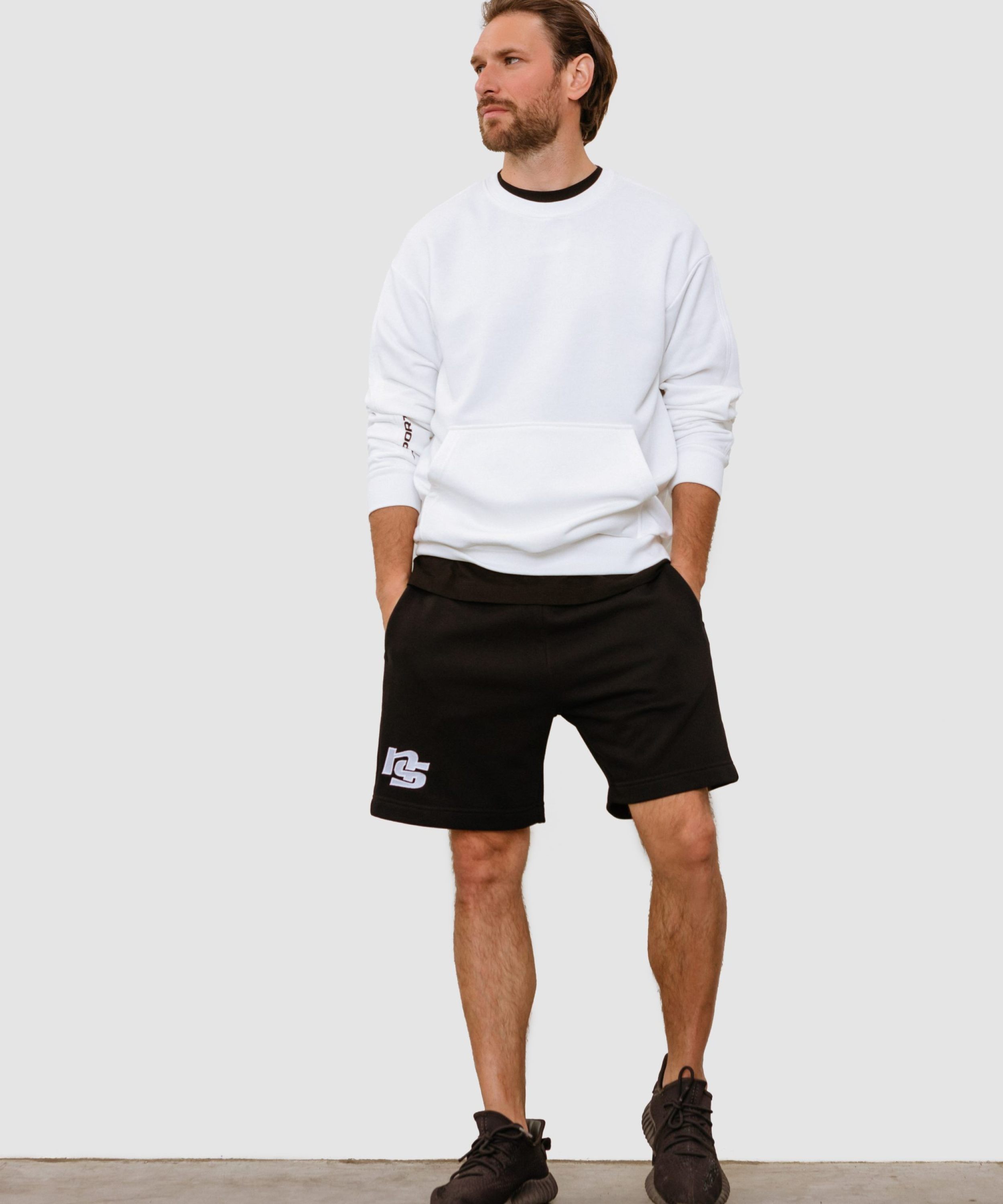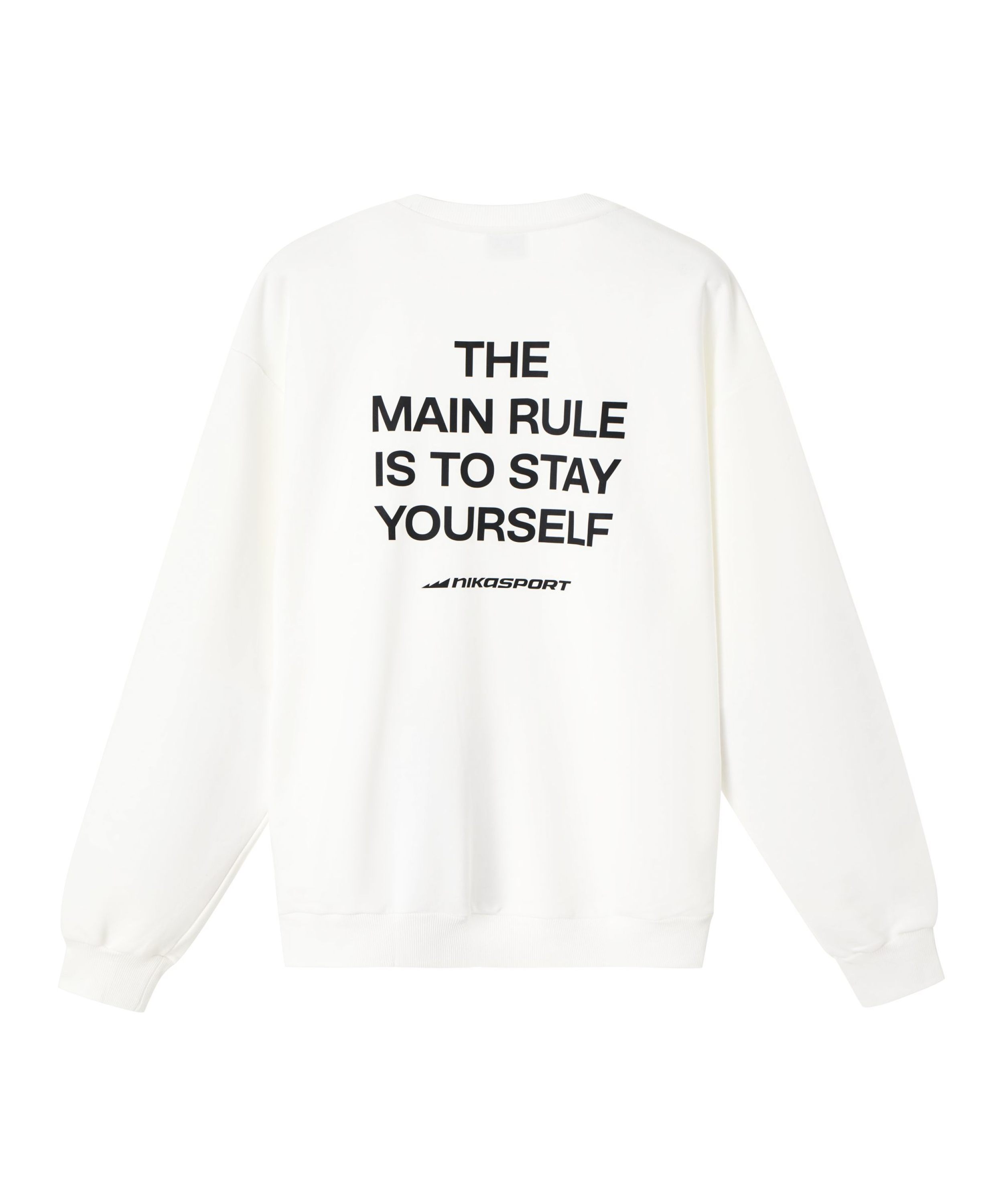 Мужской свитшот свободного силуэта. Выполнен из материала, в составе которого 70% хлопка и 30% полиэстера, что обеспечивает отличную посадку и долговечность изделия. Спущенная линия плеча и стильная надпись-принт на спине делают свитшот заметным и молодежным. Удобный карман-кенгуру не только часть дизайна, но и удобный помощник для хранения личных вещей. Представлен в классическом белом цвете. Прекрасное дополнение как к спортивному, так и к повседневному образу