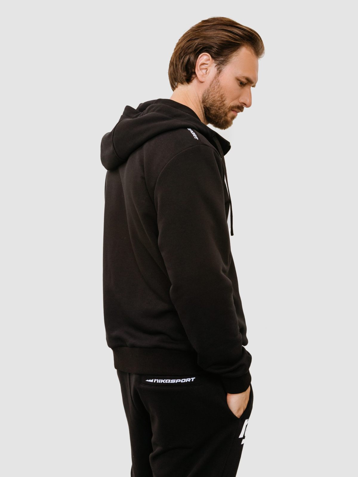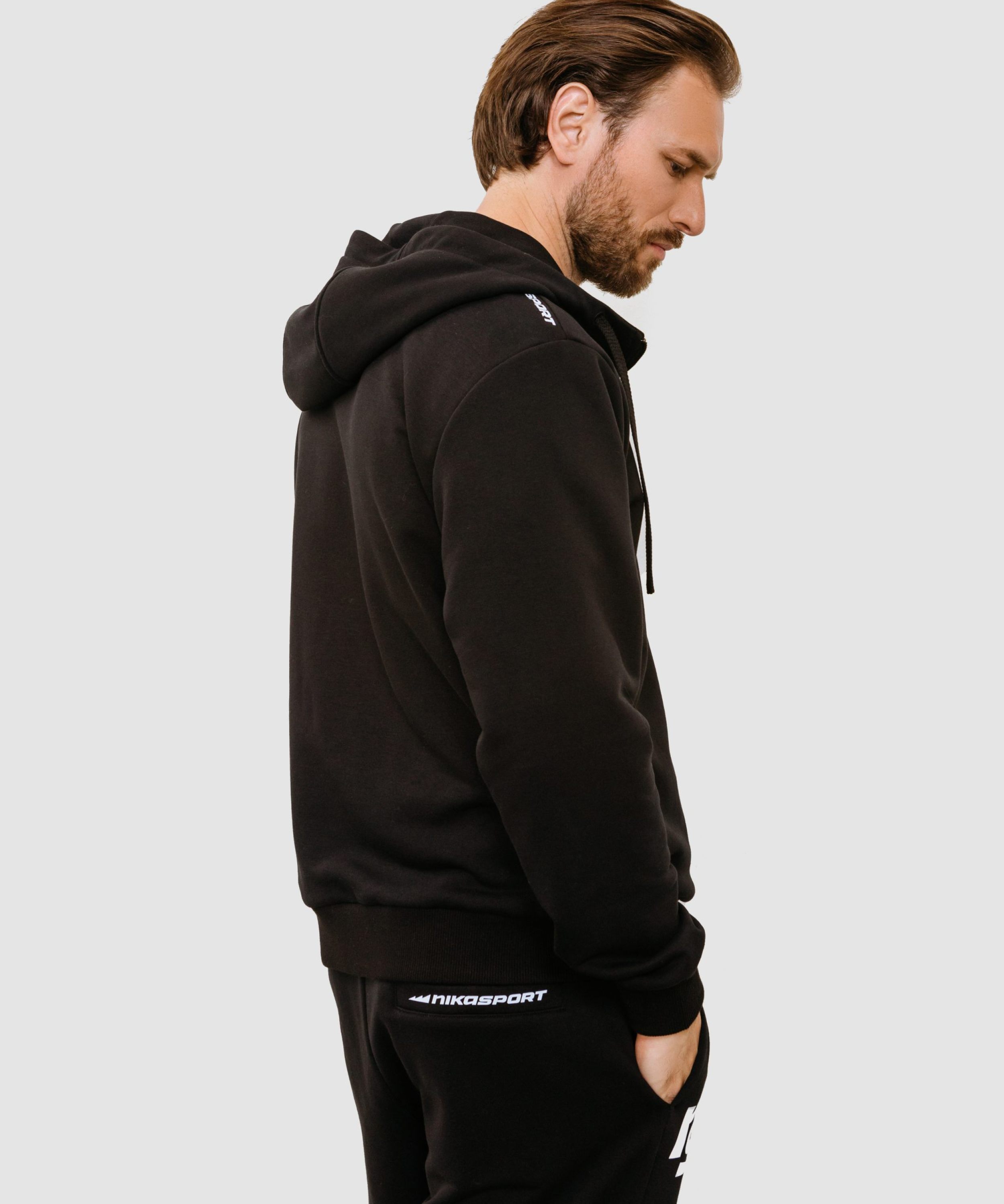Мужское худи прямого кроя выполнен из материала, в составе которого 80% хлопка и 20% полиэстера, что обеспечивает отличную посадку и долговечность изделия. На груди и на плече расположен принт с логотипом бренда. Вместительные карманы в боковых швах для хранения личных вещей. Представлен в классическом черном цвете. Прекрасное дополнение как к спортивному, так и к повседневному образу.