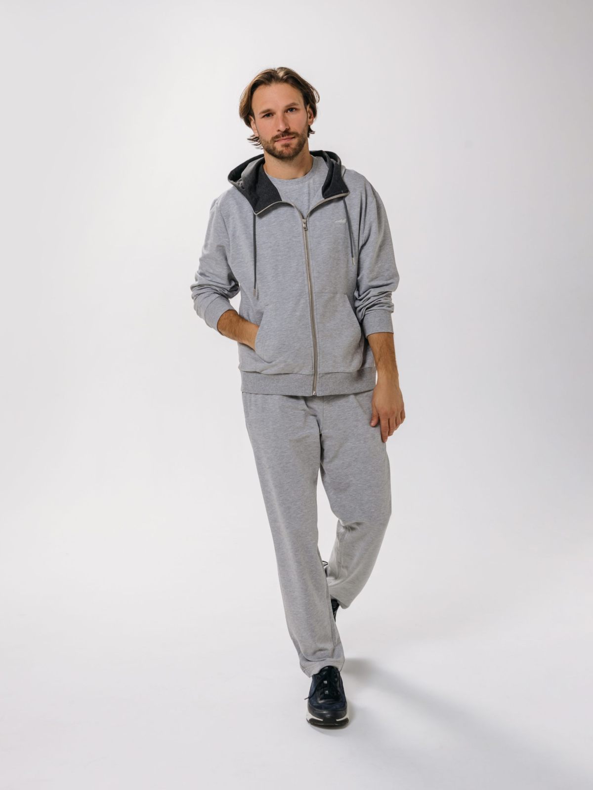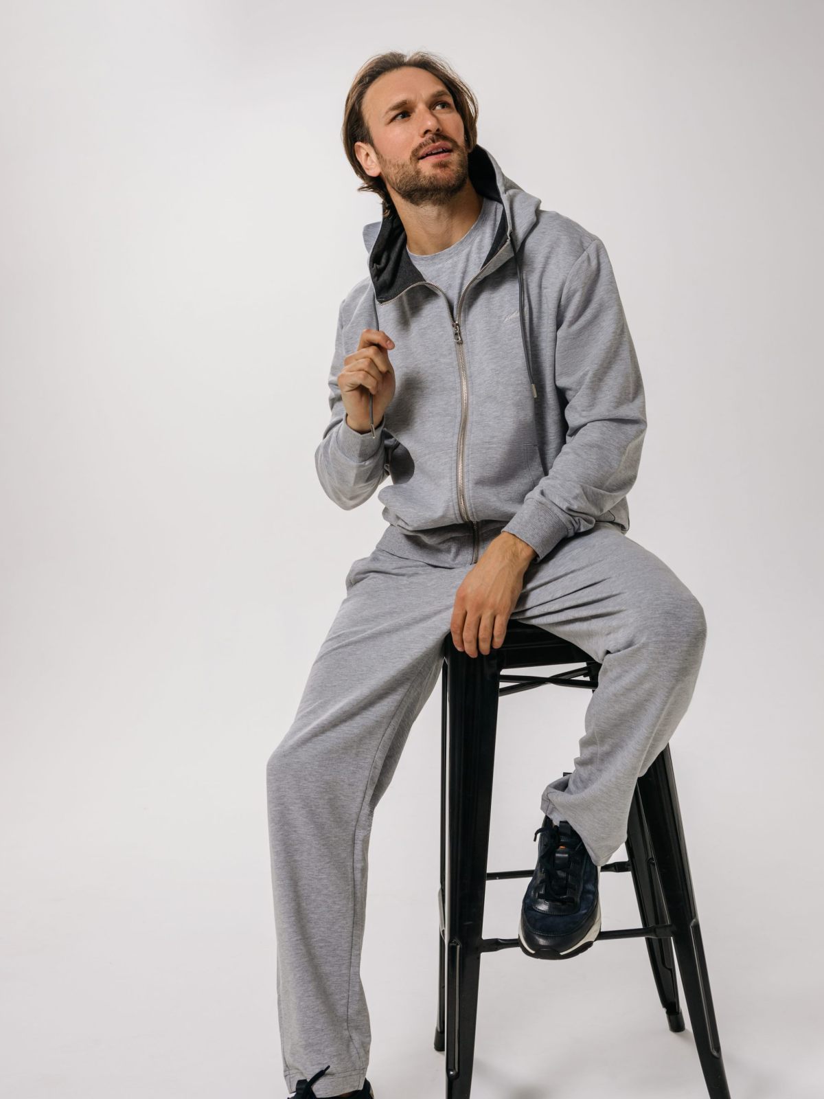 Мужские легкие классические брюки прямого силуэта. Выполнены из тонкой ткани, в составе которой 80% хлопка и 20% полиэстера, за счет чего изделие отлично держит форму. Брюки имеют два боковых кармана для хранения личных вещей. Представлены в универсальном цвете серый меланж. Эластичный шнур в поясе помогает регулировать посадку. Модель создана для занятий спортом или повседневных образов.