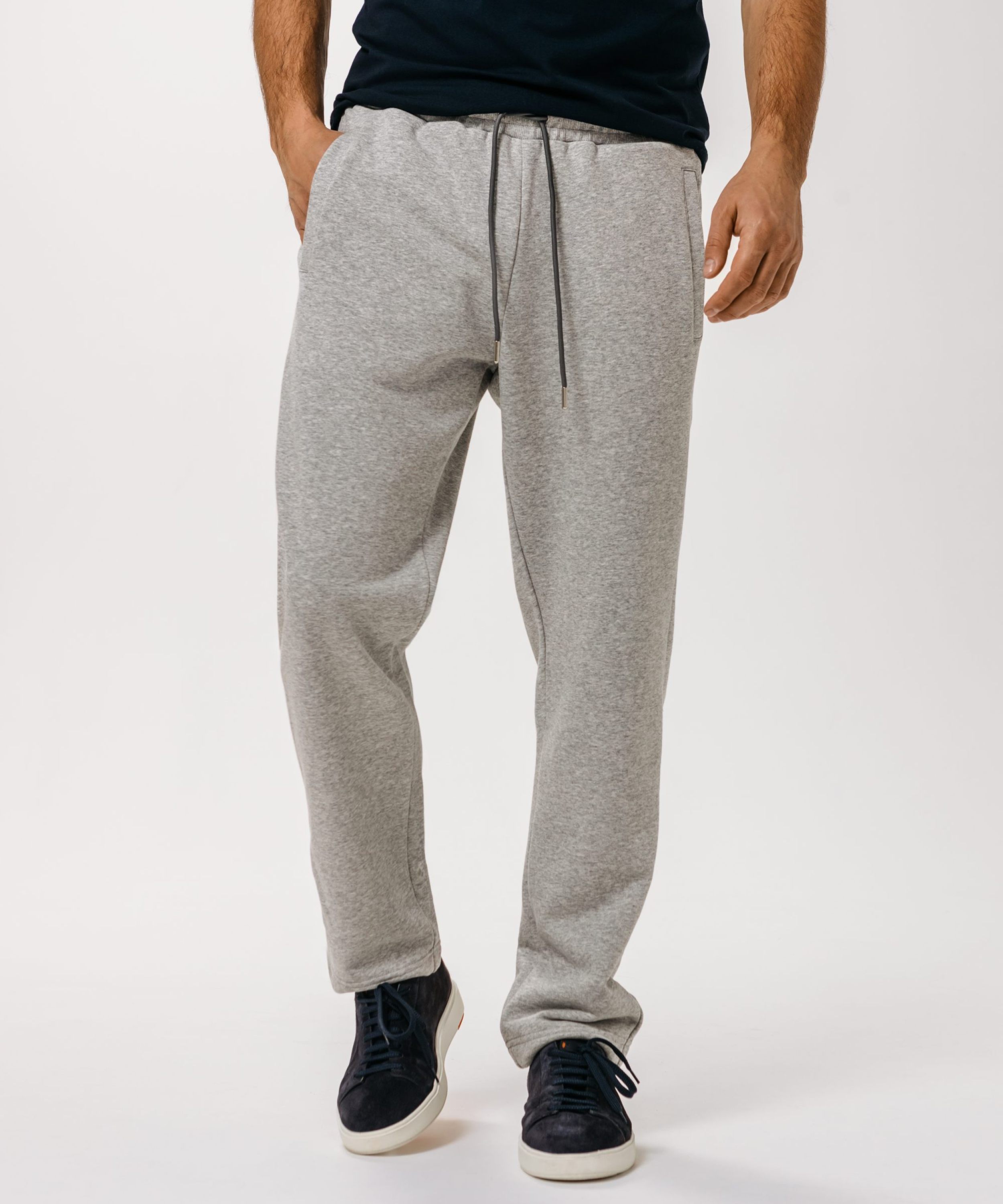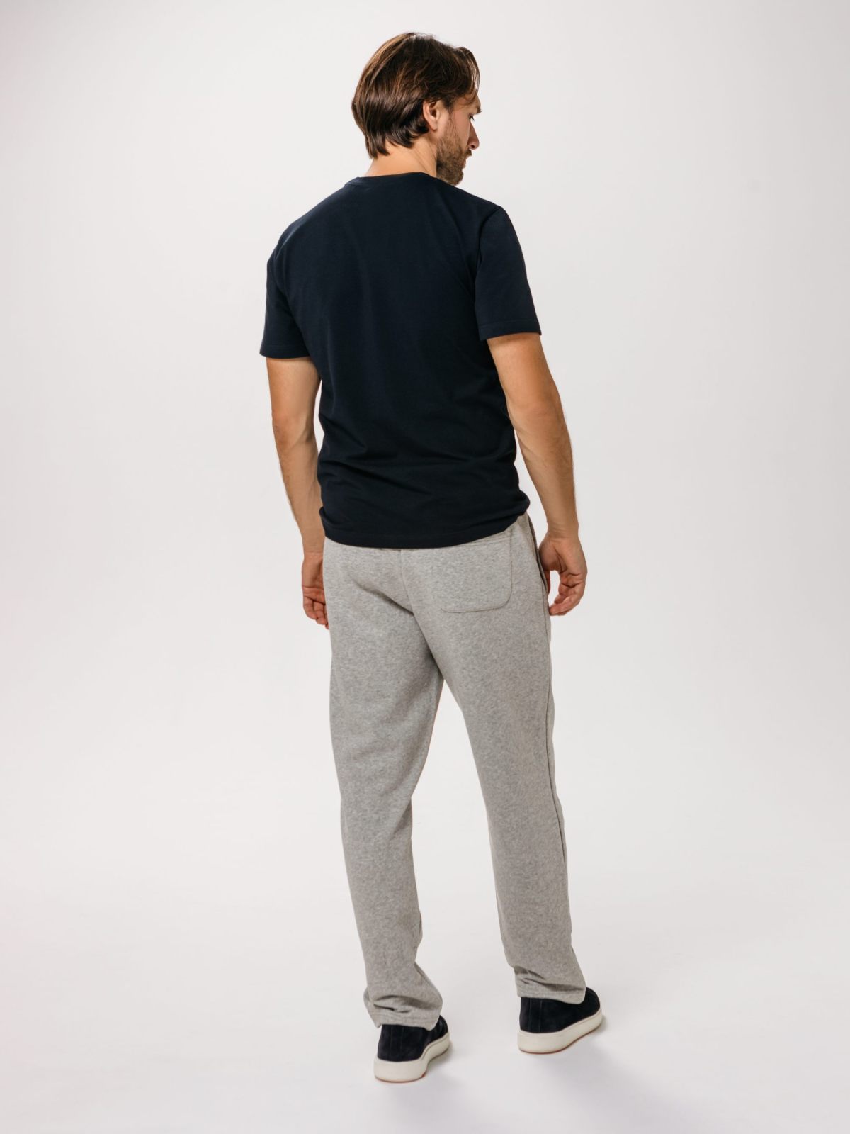Мужские классические брюки прямого силуэта. Выполнены из материала, в составе которого 80% хлопка и 20% полиэстера, что обеспечивает отличную посадку и долговечность изделия. Брюки имеют задний и два боковых кармана для хранения личных вещей. Эластичный шнур в поясе помогает регулировать посадку. Представлены в универсальном цвете серый меланж. Модель создана для занятий спортом или повседневных образов.