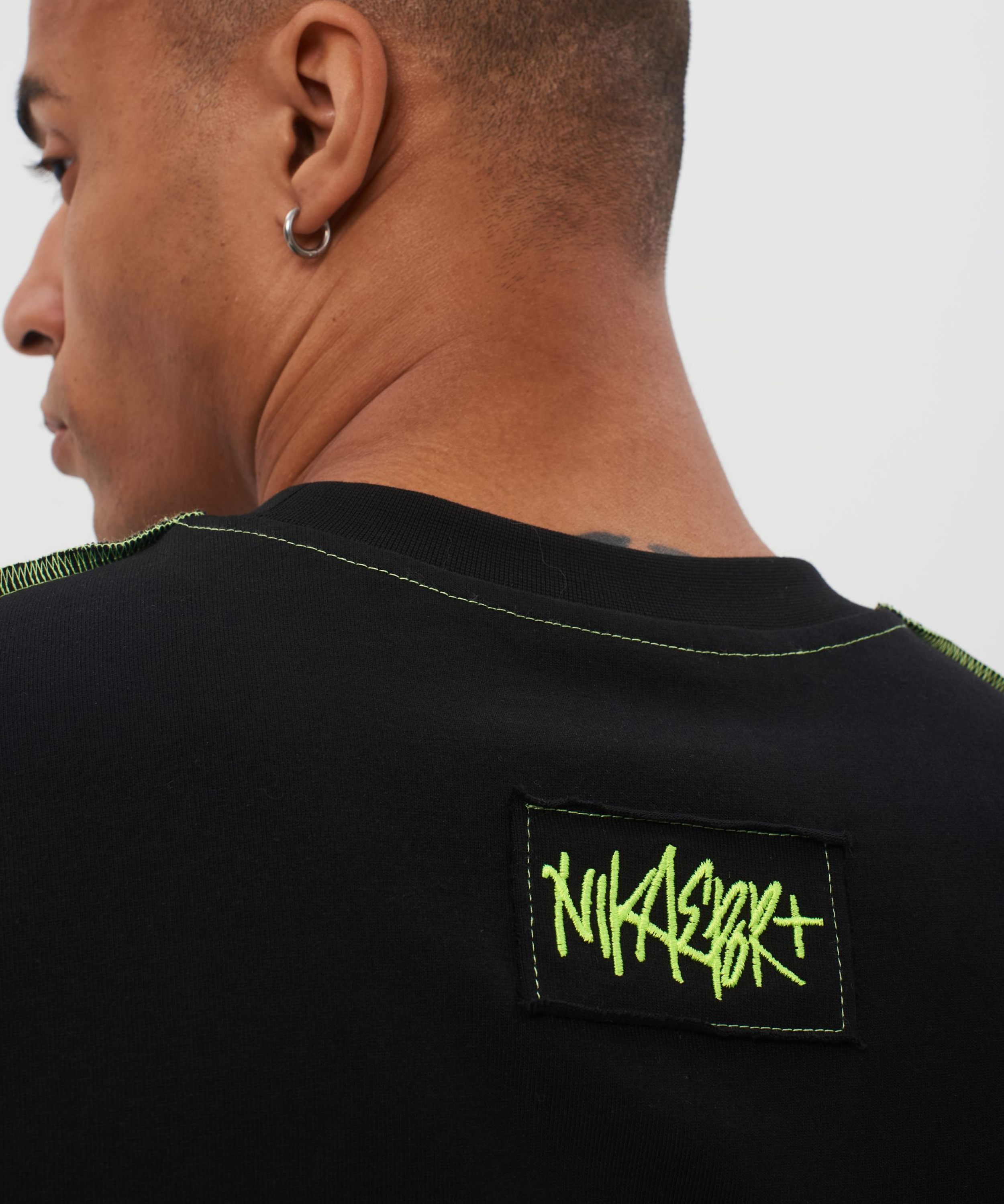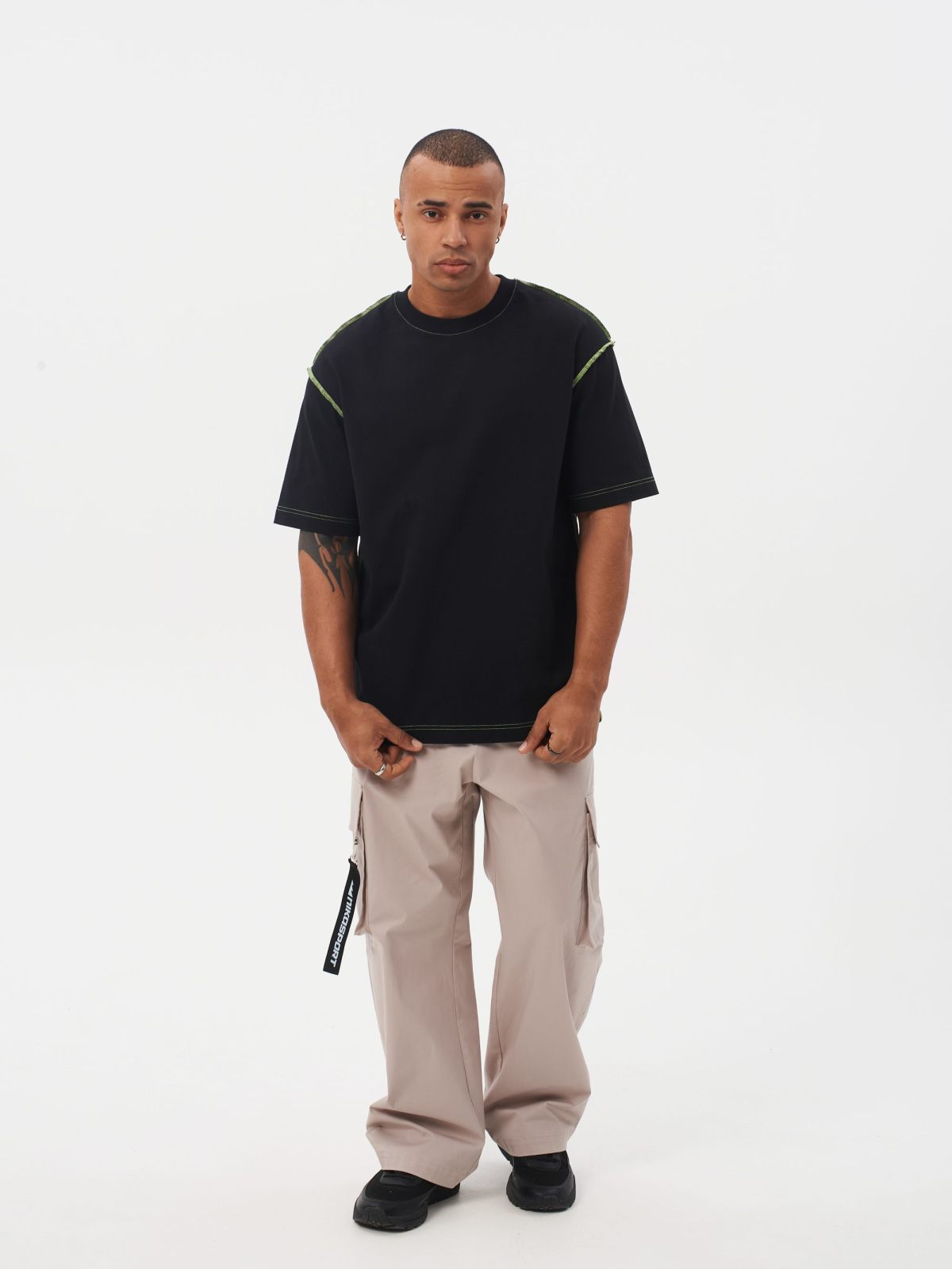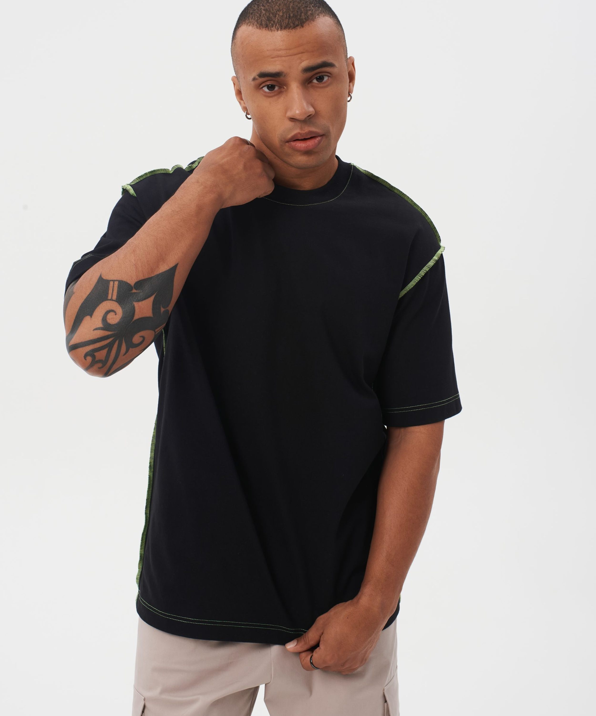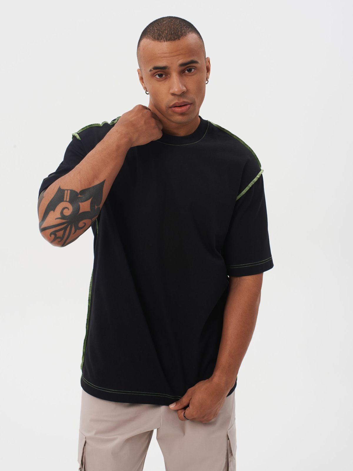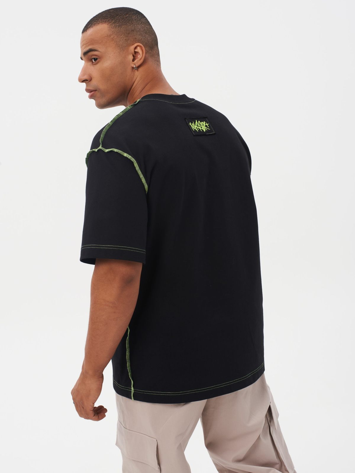 Футболка oversize силуэта. Сделана из 100% плотного хлопка - гипоаллергенного материала, отлично пропускающего воздух. Спущенная линия плеча, яркие контрастные швы и граффити-вышивка на спине создают дерзкий и молодежный образ. Прекрасный выбор как для спортивного, так и для повседневного стиля