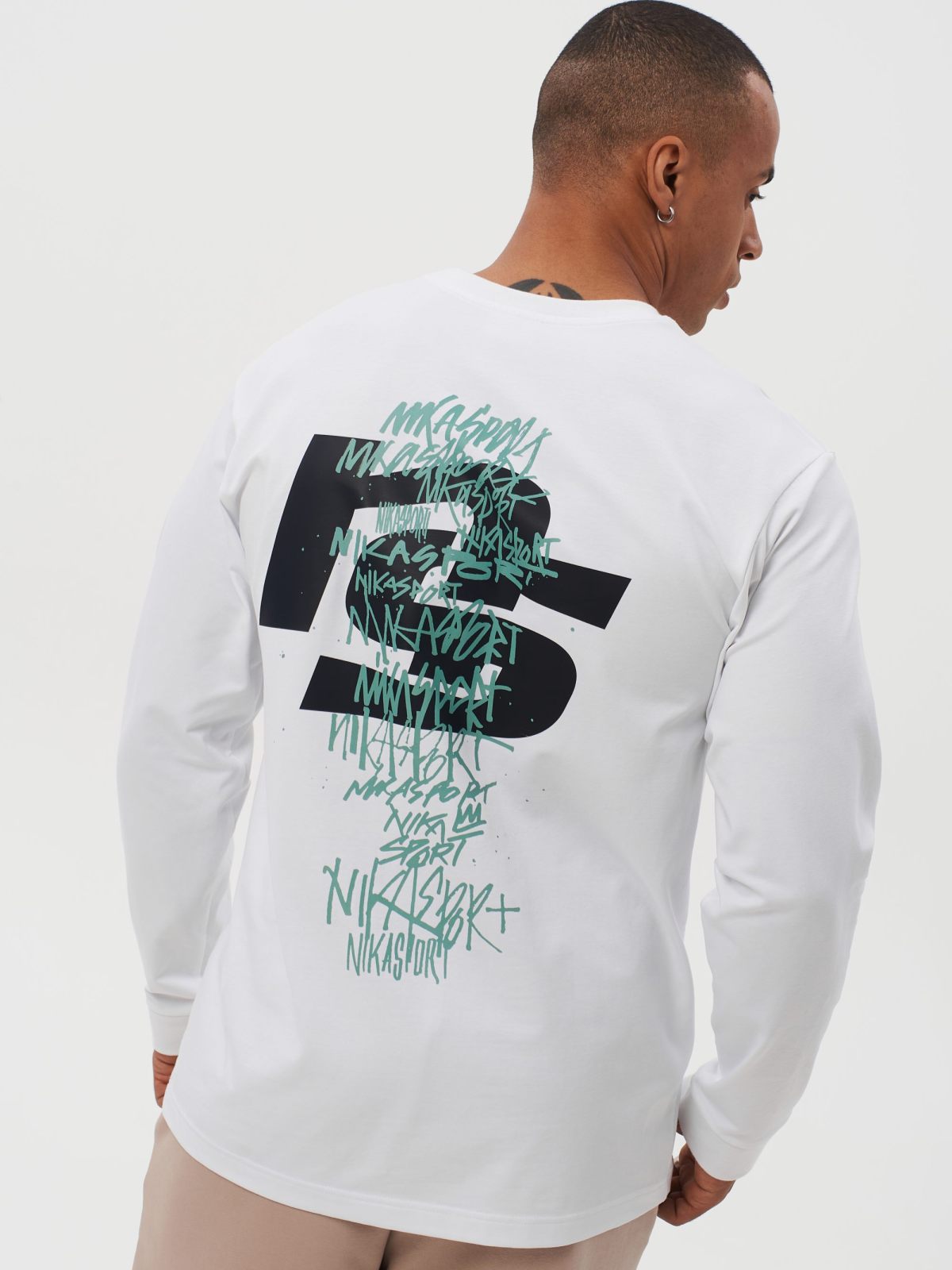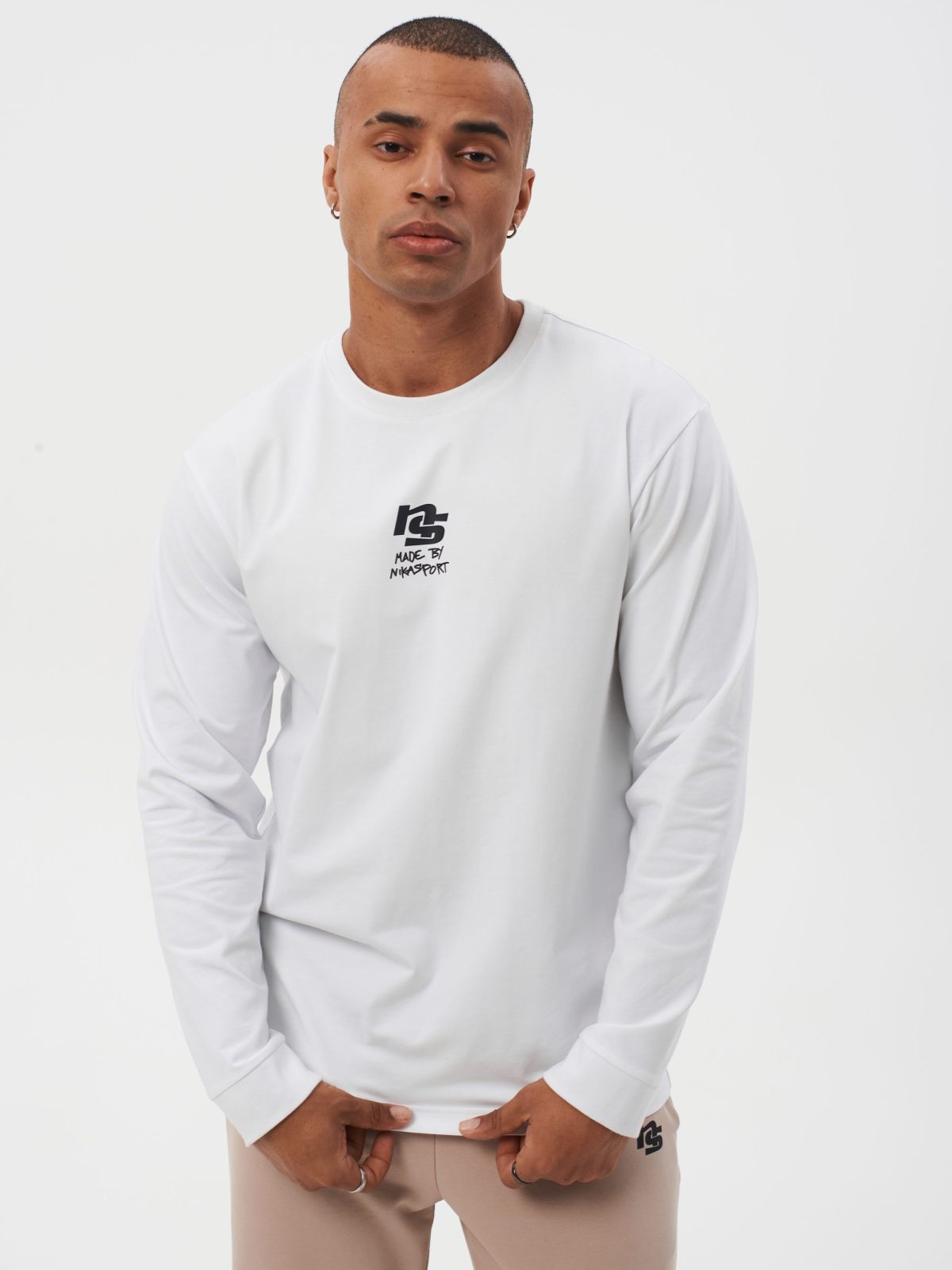 Лонгслив мужской свободного силуэта. В составе 92% хлопка и 8% эластана, что обеспечивает отличную посадку и долговечность изделия. Прямой крой, на спине расположен стильный графити-принт. Представлен в классических цветах - черном и белом. Лонгслив прекрасно дополнит ваш спортивный образ, легко может сочетаться с джинсами и брюками.