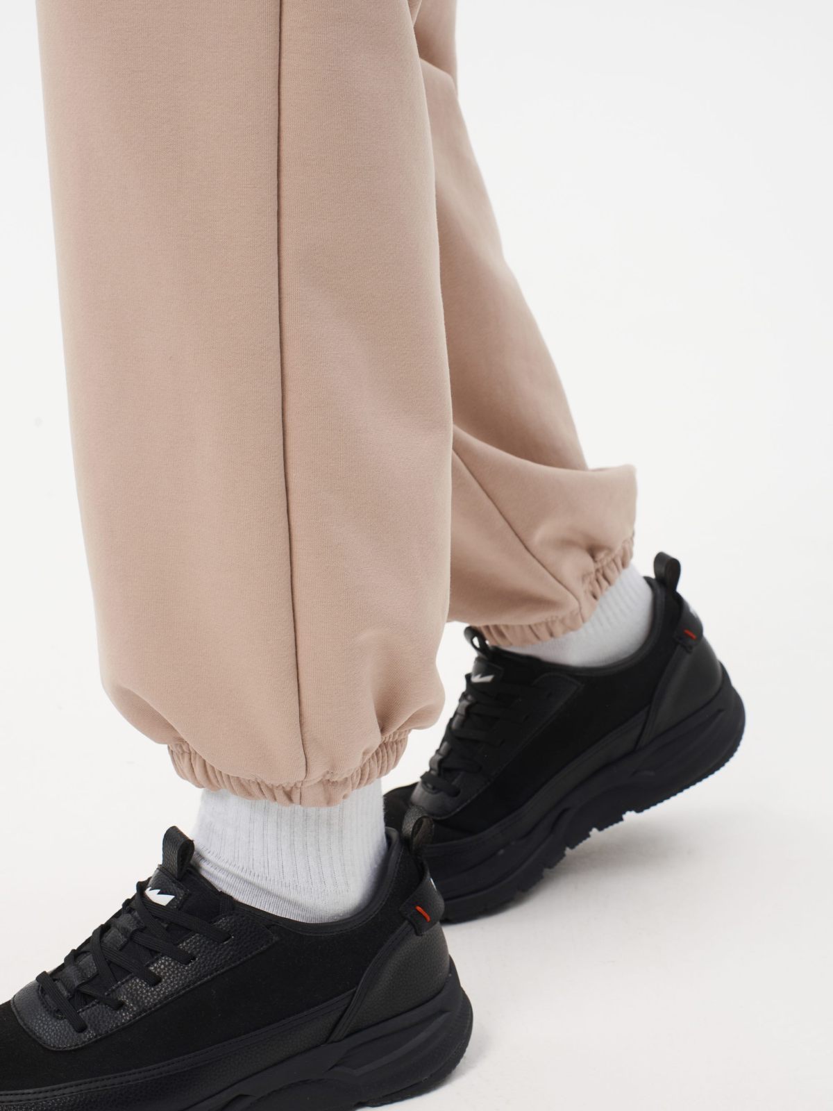 Мужские брюки-джоггеры свободного силуэта. Выполнены из материала, в составе которого 90% хлопка и 10% полиэстера, что обеспечивает отличную посадку и долговечность изделия. Брюки имеют два боковых кармана для хранения личных вещей и лаконичный фирменный лого-принт на левой ноге. Эластичный шнур в поясе помогает регулировать посадку. Представлены в универсальных цветах - черный и капучино. Модель создана для повседневных образов в спортивном стиле.