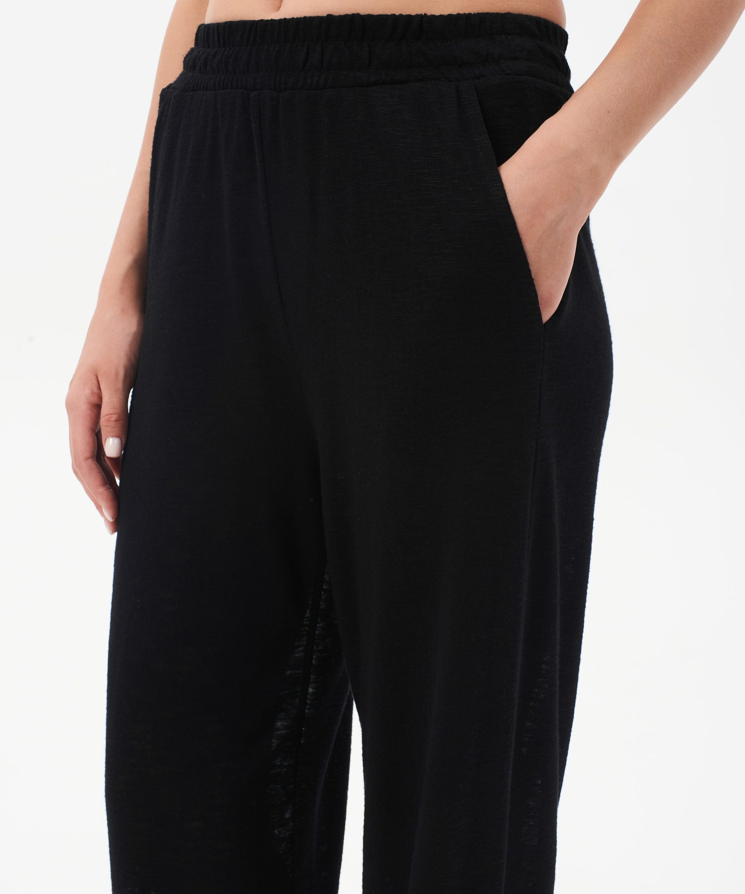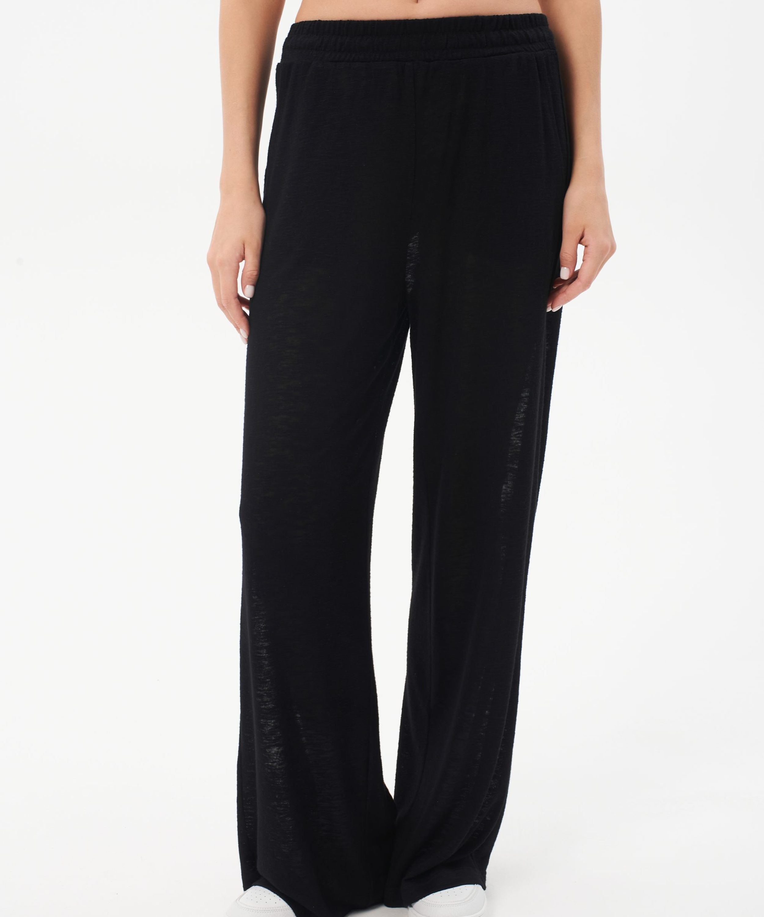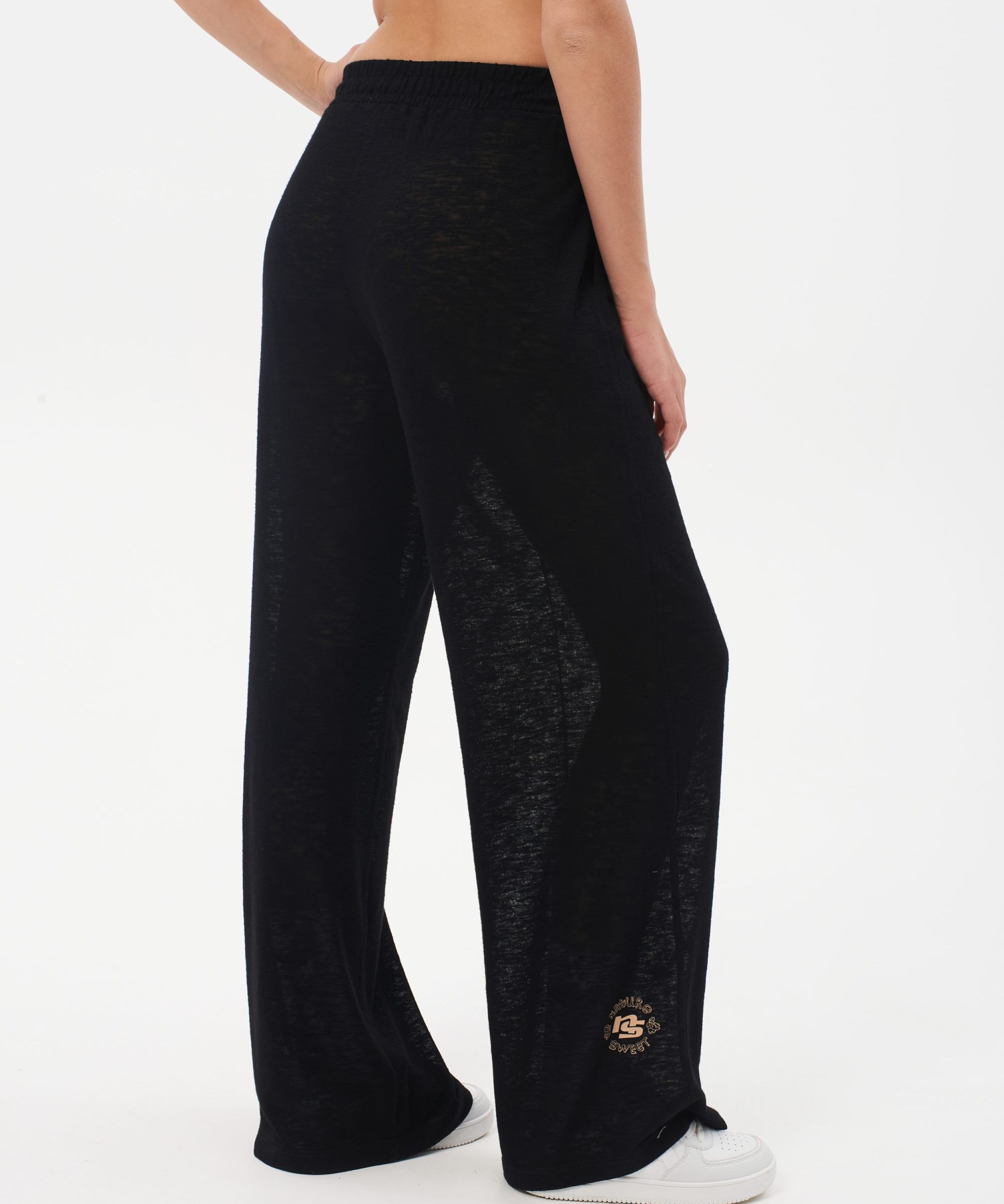 Женские прямые широкие брюки oversize силуэта. В составе 65% вискозы и 35% полиэстера. Материал является главным преимуществом этой модели - брюки легкие, мягкие, практически не ощущаются на теле. Выполнены в классическом черном цвете и отлично подходят для летних образов.