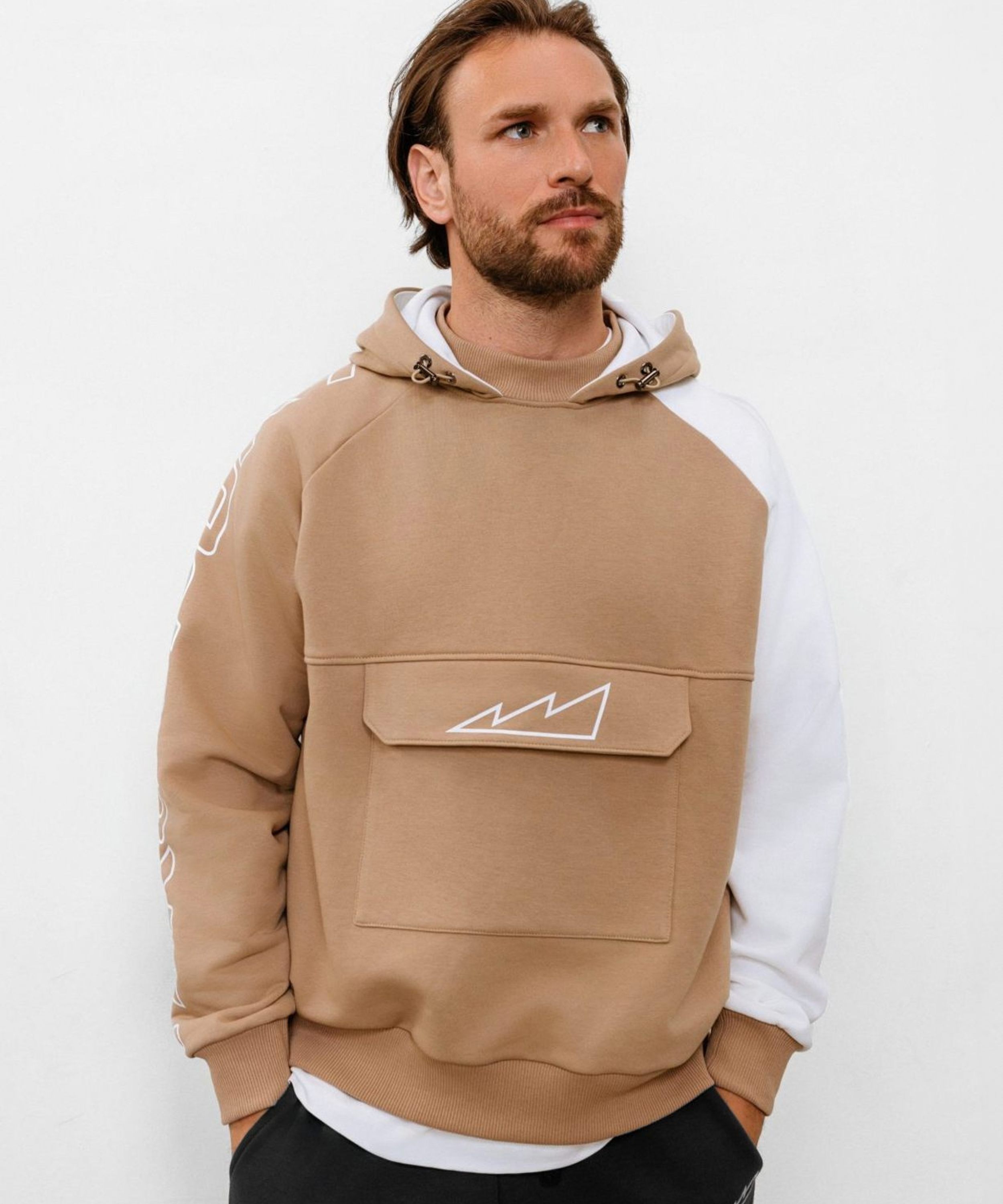 Мужское худи свободного силуэта Loose из лимитированной коллекции B&G. В составе 80% хлопка и 20% полиэстера, что обеспечивает отличную посадку и долговечность изделия. Контрастные рукав и подкладка, стильные дизайнерские лого-принты на правом рукаве и нагрудном кармане, удобный крой капюшона с воротником-стойкой делают худи незаменимой вещью вашего гардероба на каждый день и создают запоминающийся спортивный образ.
