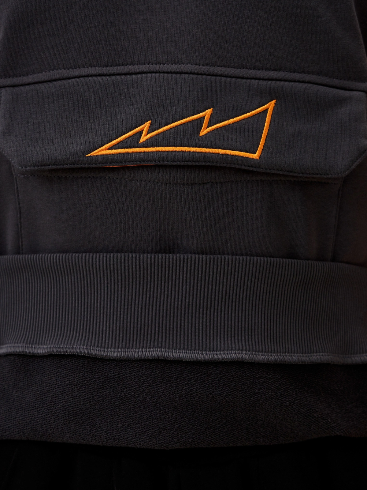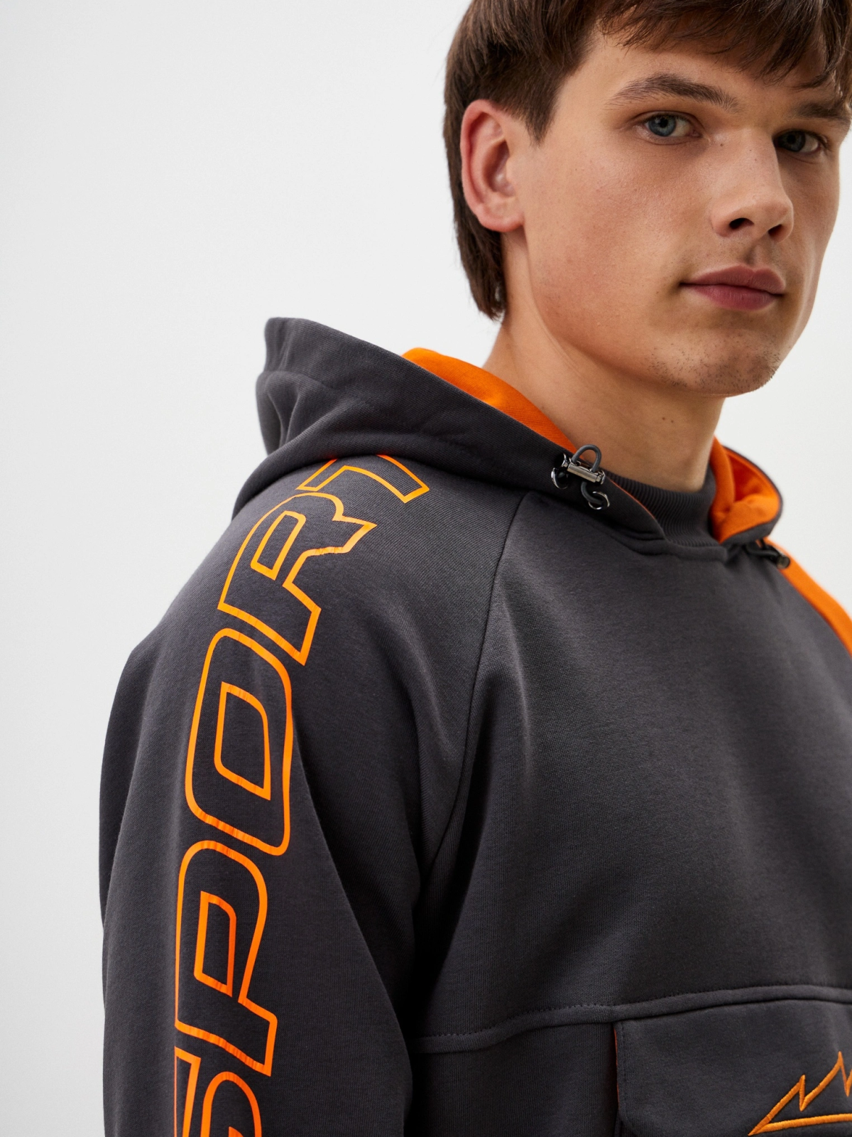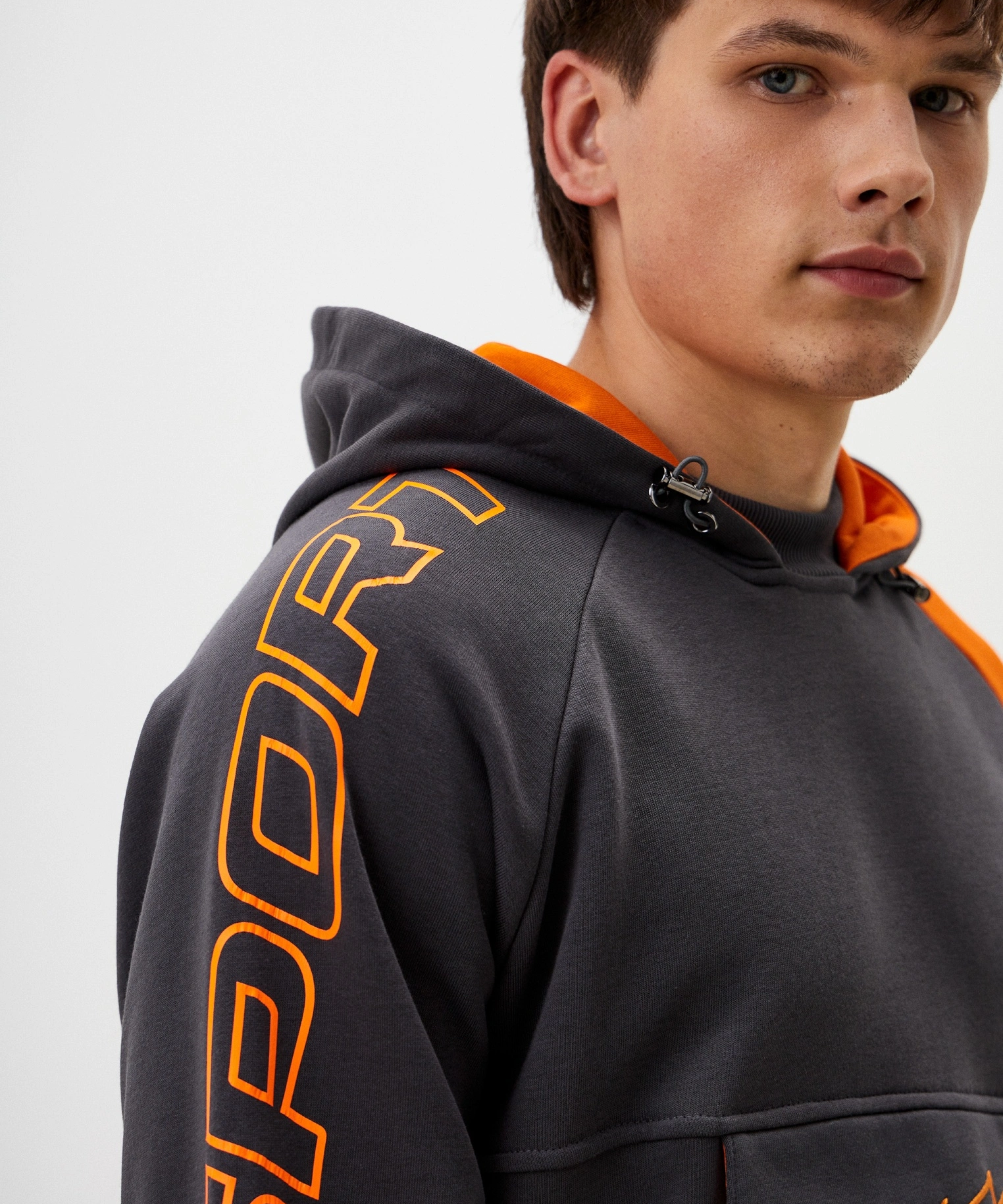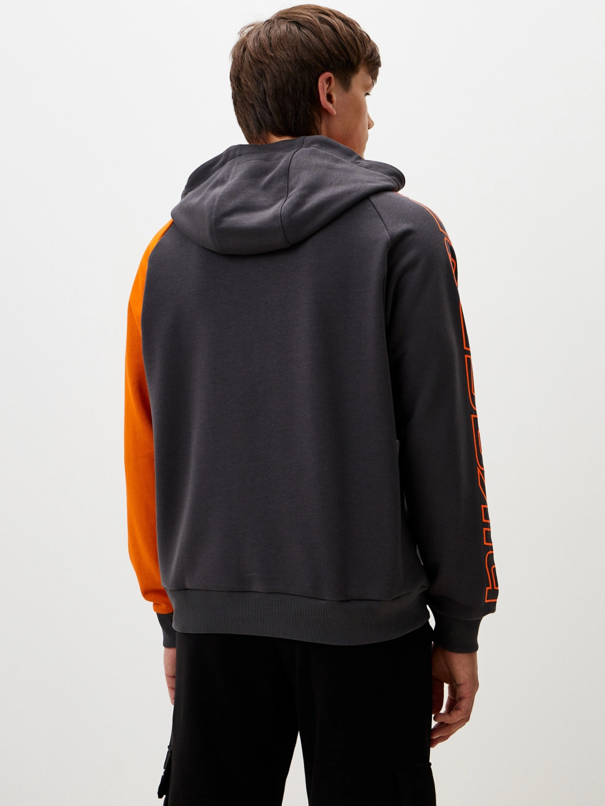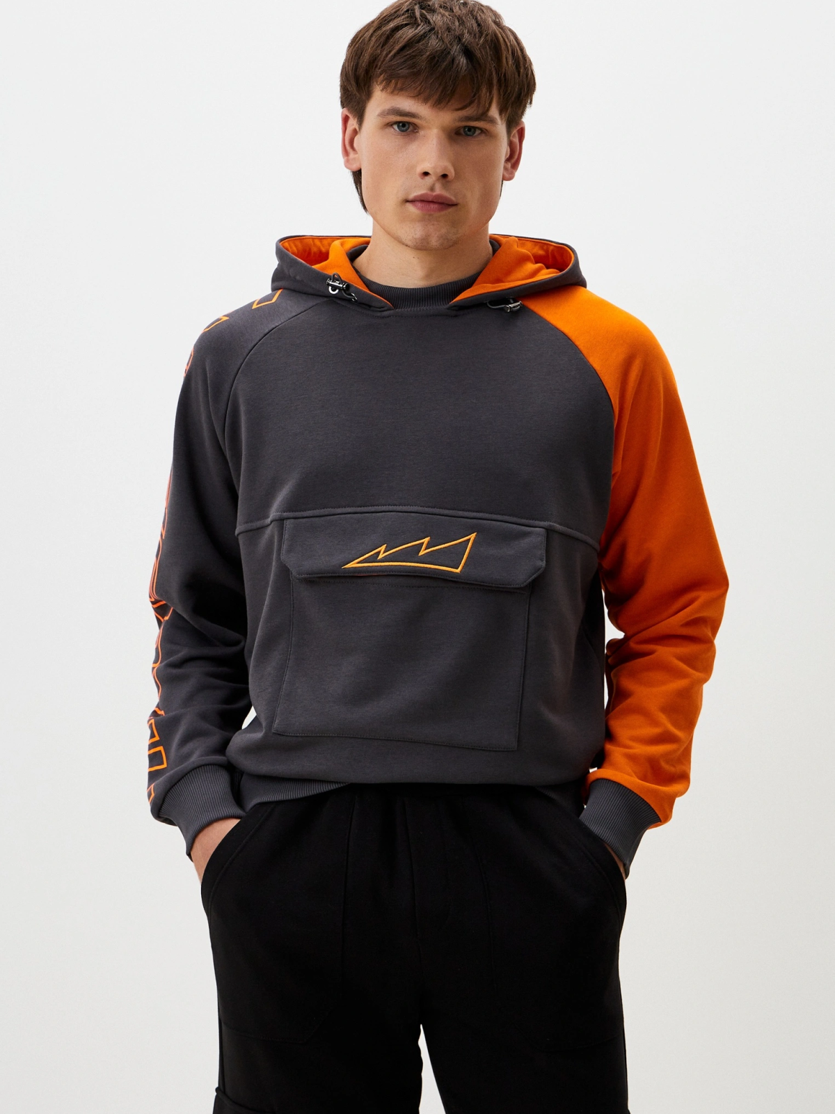 Мужское худи свободного силуэта Loose из лимитированной коллекции B&G. В составе 80% хлопка и 20% полиэстера, что обеспечивает отличную посадку и долговечность изделия. Контрастные рукав и подкладка, стильные дизайнерские лого-принты на правом рукаве и нагрудном кармане, удобный крой капюшона с воротником-стойкой делают худи незаменимой вещью вашего гардероба на каждый день и создают запоминающийся спортивный образ.