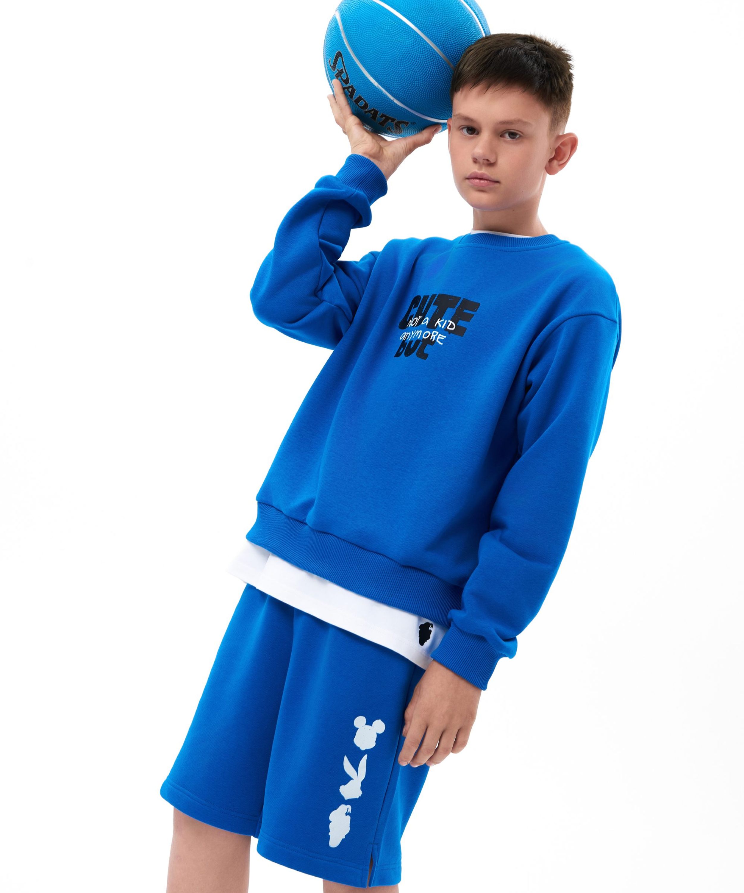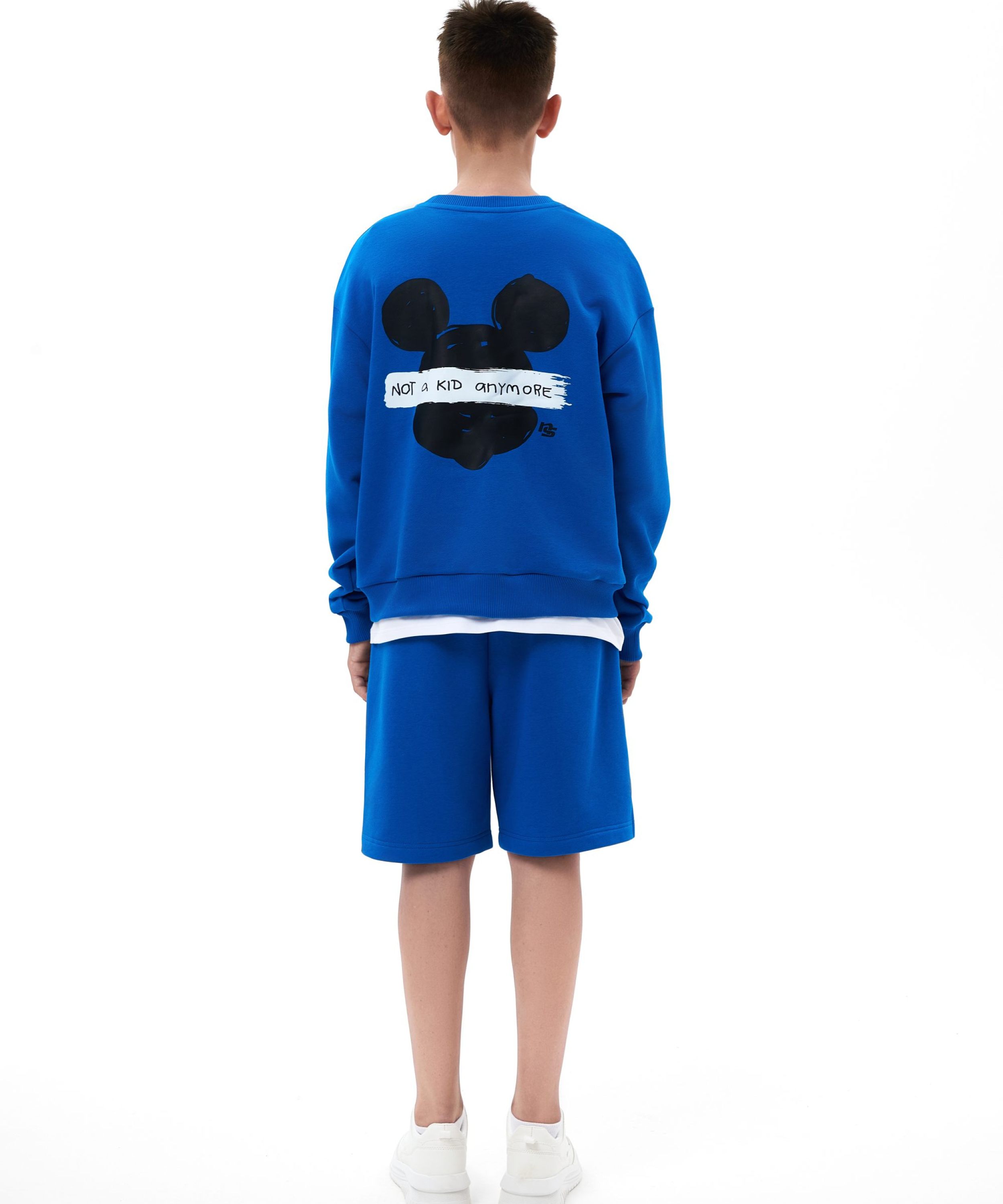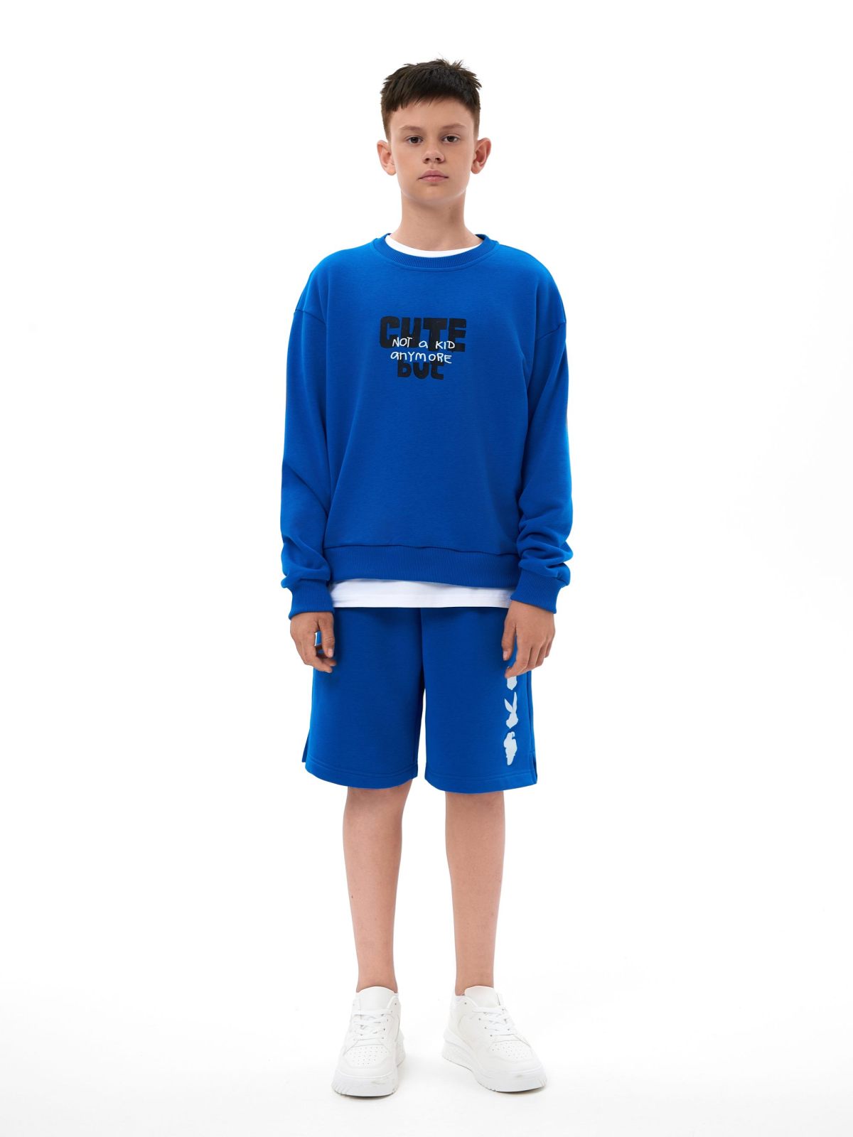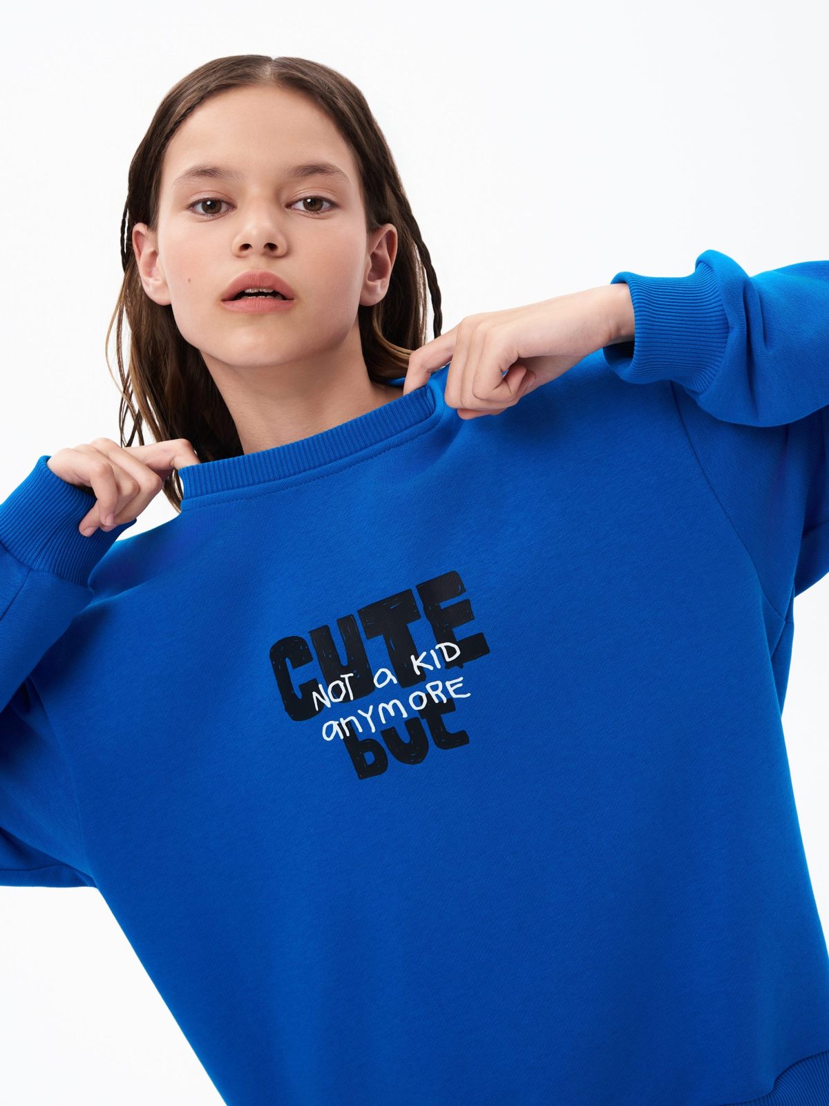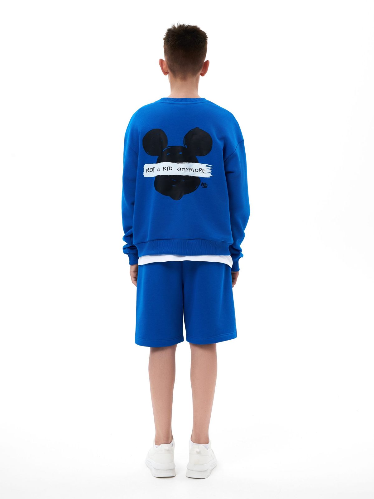 Детский свишот прямого силуэта из коллекции Naka. Выполнен из футера 3х-нитки, в составе которого 90% хлопка и 10% полиэстера - гипоаллергенного, пропускающего воздух, мягкого и плотного материала. На груди и спине расположены большие принты с дизайнерскими слоганами и символами капсулы "Not A Kid Anymore" - любимыми детскими персонажами для тех, кто уже не ребенок! Создай свой стильный образ в ярком синем или глубоком графитовом цвете!