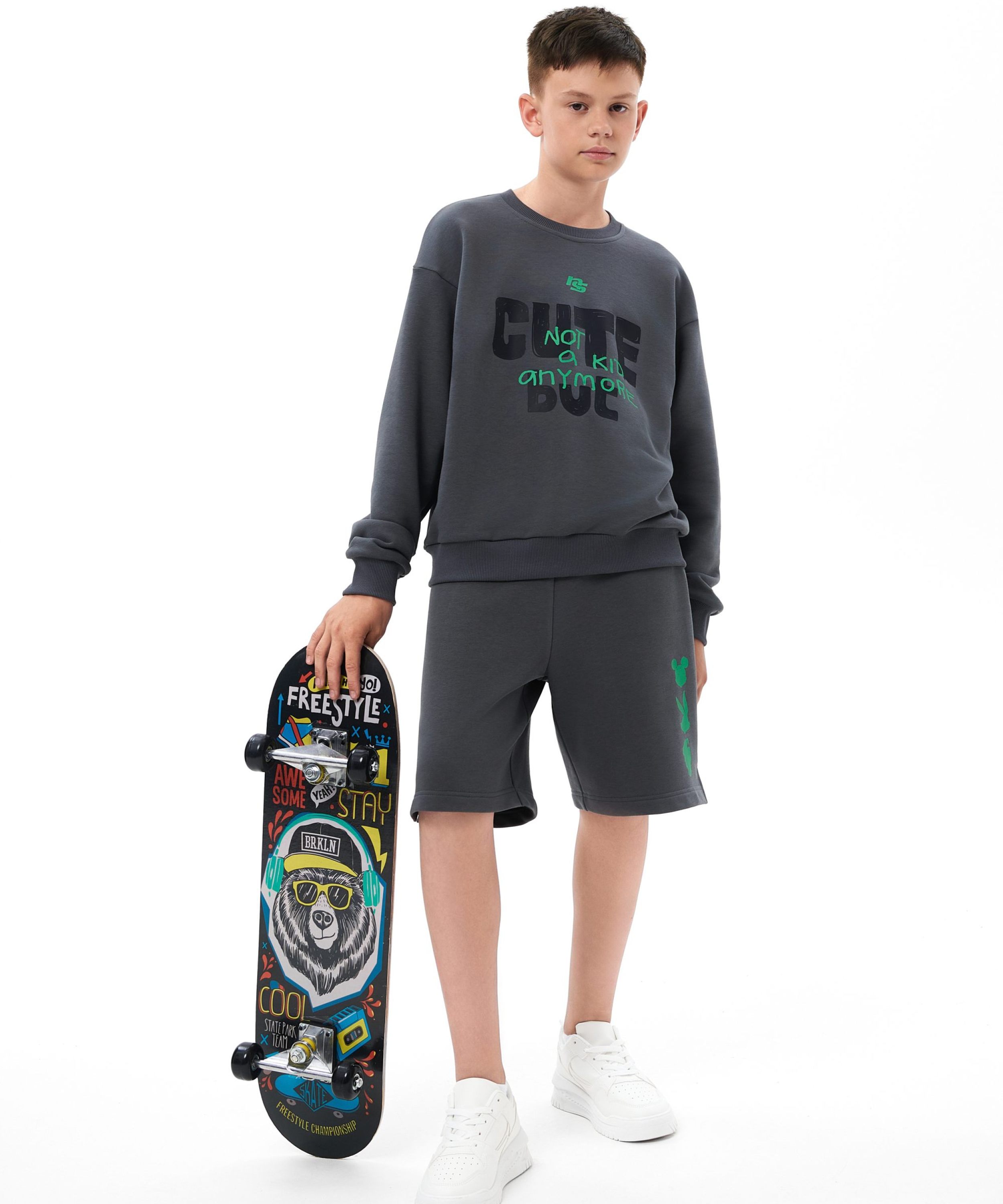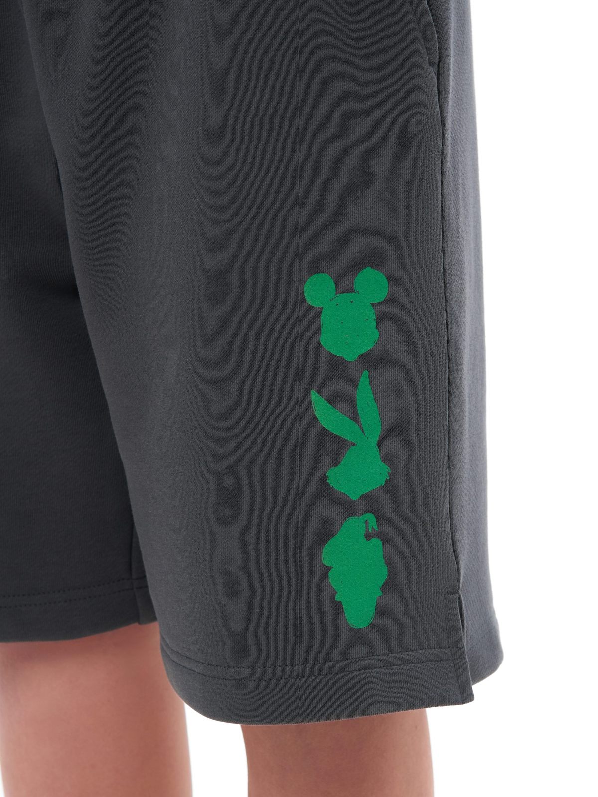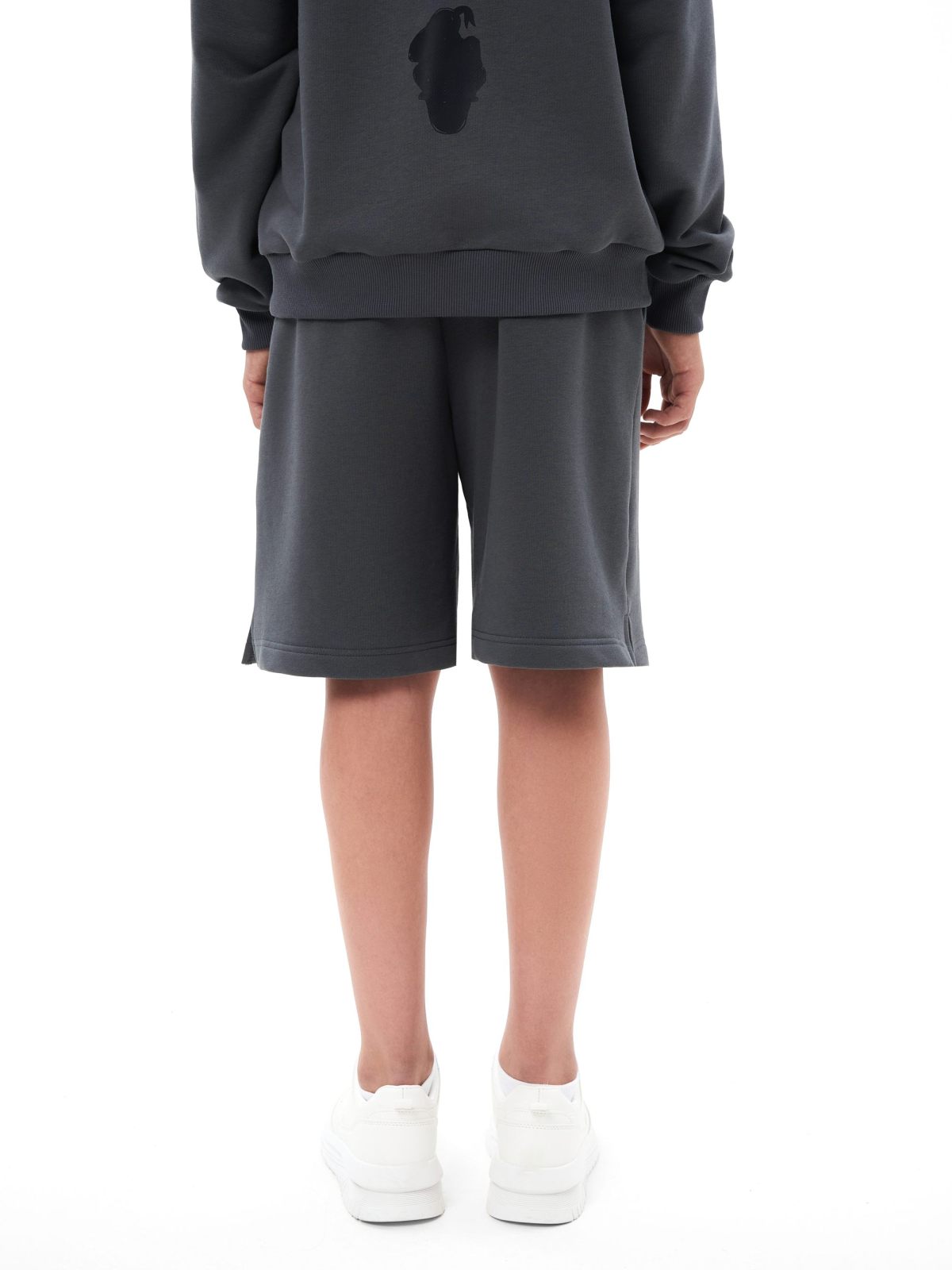 Детские шорты прямого силуэта из коллекции Naka. Выполнены из футера 3х-нитки, в составе которого 92% хлопка и 8% эластана - гипоаллергенного, пропускающего воздух, мягкого и плотного материала. На левой ноге расположен принт с дизайнерскими символами капсулы "Not A Kid Anymore" - любимыми детскими персонажами для тех, кто уже не ребенок! Представлены в 2 цветах: ярком синем и глубоком графитовом. Модель создана для комфортного и запоминающегося образа на каждый день.